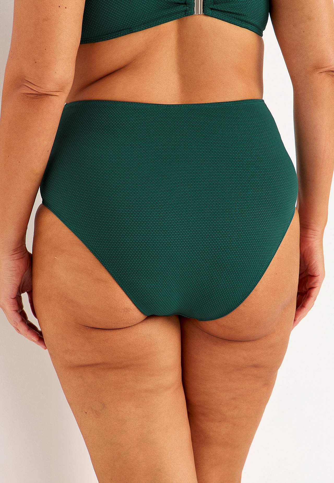 Strukturmönstrad bikinitrosa i återvunnen polyester. Hög midja med mjuk resår. Helfodrad insida.