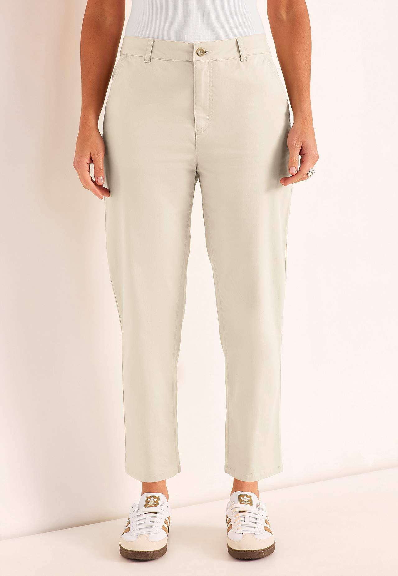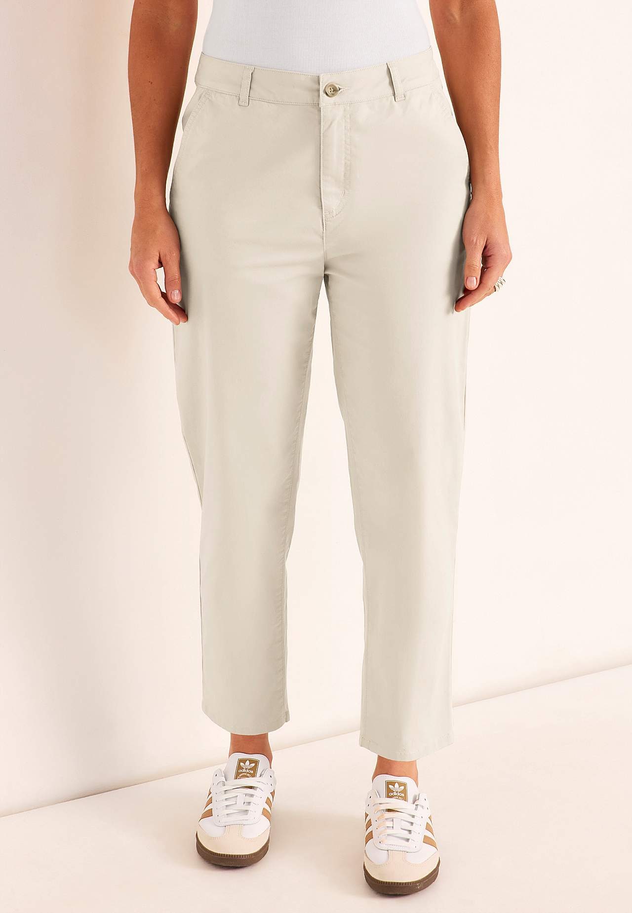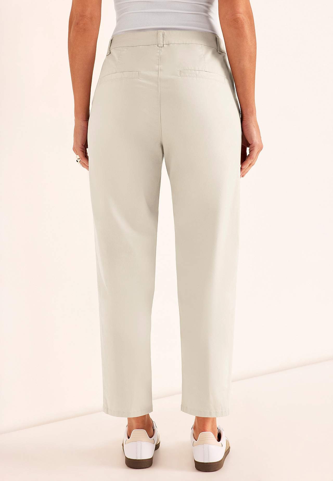 Bekväma byxor i vävd bomull med stretch. Stilren design, avslappnat men ändå uppklätt. Matcha gärna med en t-shirt, blus eller kavaj. Ledig passform med raka lätt avsmalnande ben. Normalhög midja med hällor. Gylf med dragkedja. Snedställda sidofickor. Falska stolpfickor bak. Innerbenslängd: ca 66 cm. Grenhöjden följer storl... Läs mer