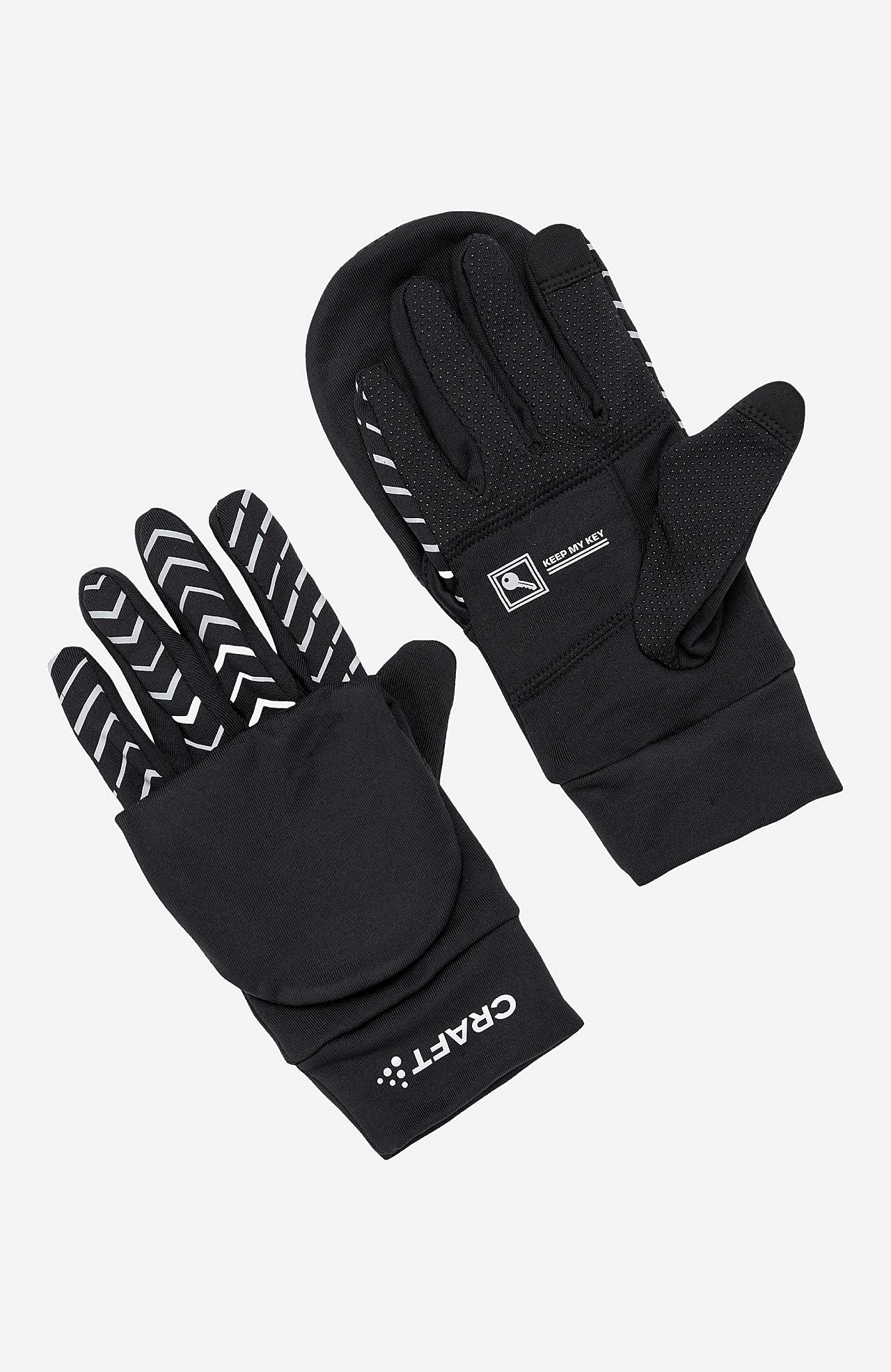 Handskar med reflekterande detaljer. Funktionell, mjuk trikå. Smart nyckelficka. 2 i 1 design med handske och överdragsvante.