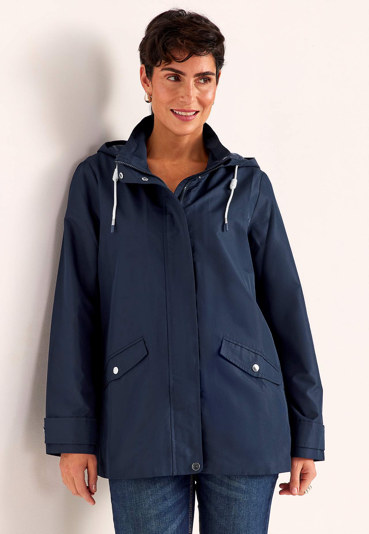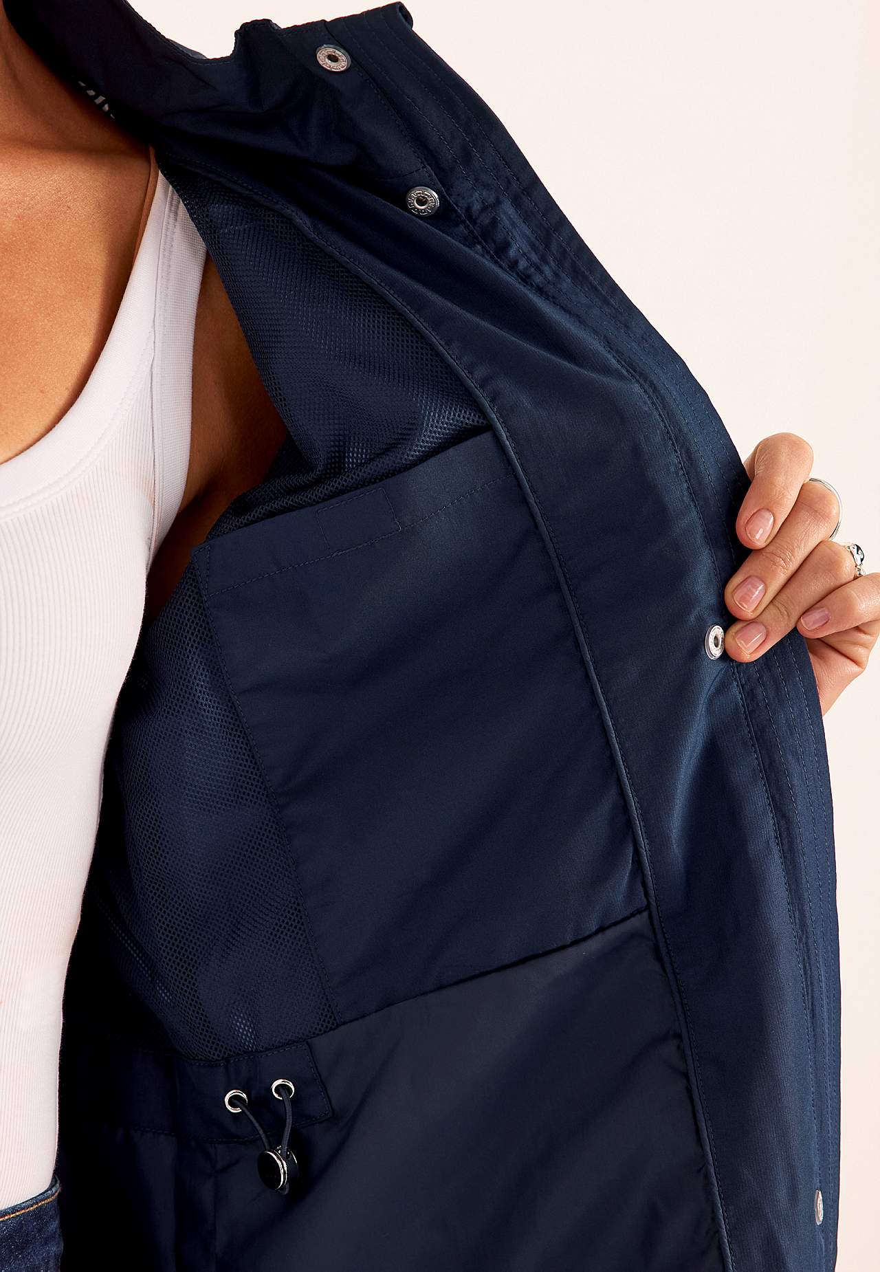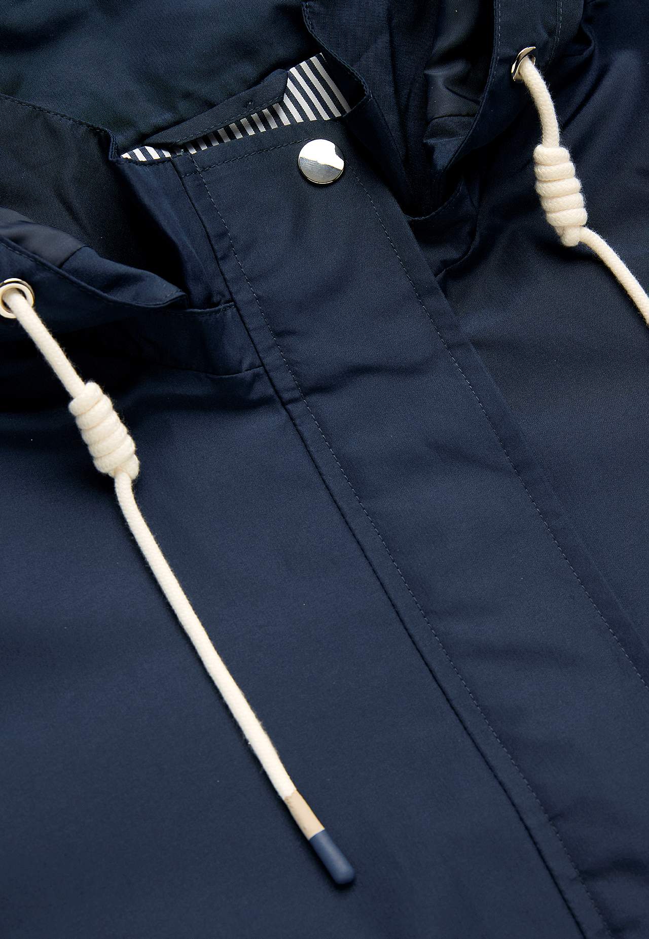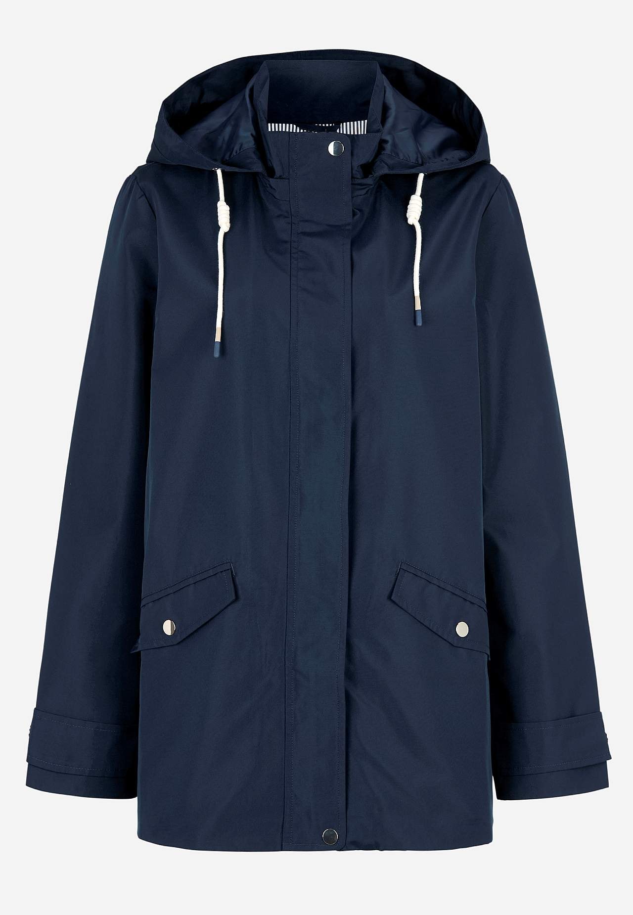 Stilren jacka. Normal passform. Vind- och vattenavvisande yttermaterial i något blankare micro poplin. Matchande foder i följsam polyester med meshtyg på överkroppen. Avtagbar huva med dold dragkedja och nedvikbar skärm med tryckknapp och reglerbar dragsko med tvinnad detalj. Praktisk tvåvägsdragkedja med vindslå. Knappslå... Läs mer