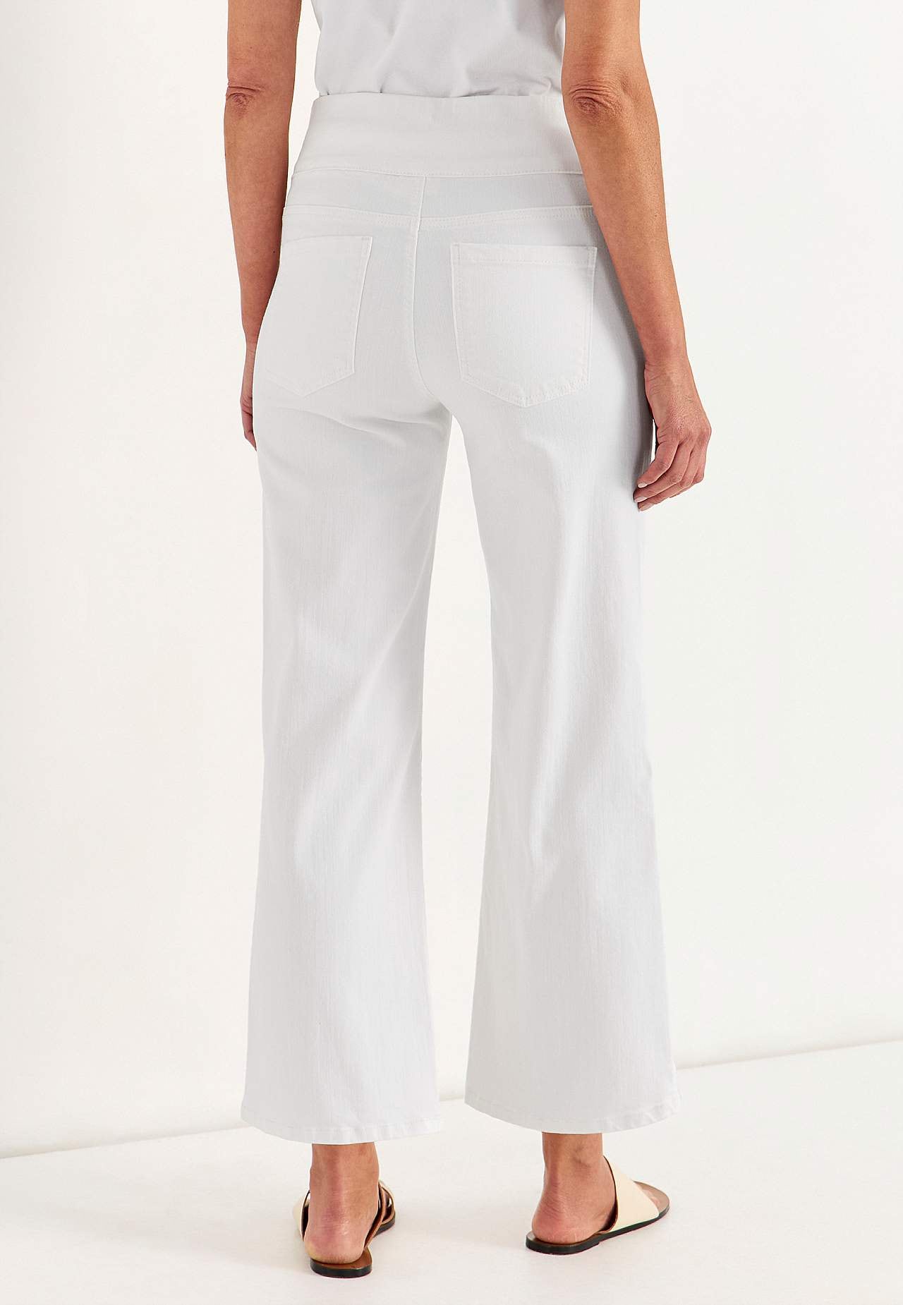 Bekväma, superstretchiga jeans. Ledig passform med vida ben. Hög midja med bred, mjuk resårlinning. Sydd dekorgylf. Dekorfickor fram. Riktiga fickor bak. Innerbenslängd ca 66 cm i alla storlekar. Grenhöjden följer storleken ca 25-36 cm.