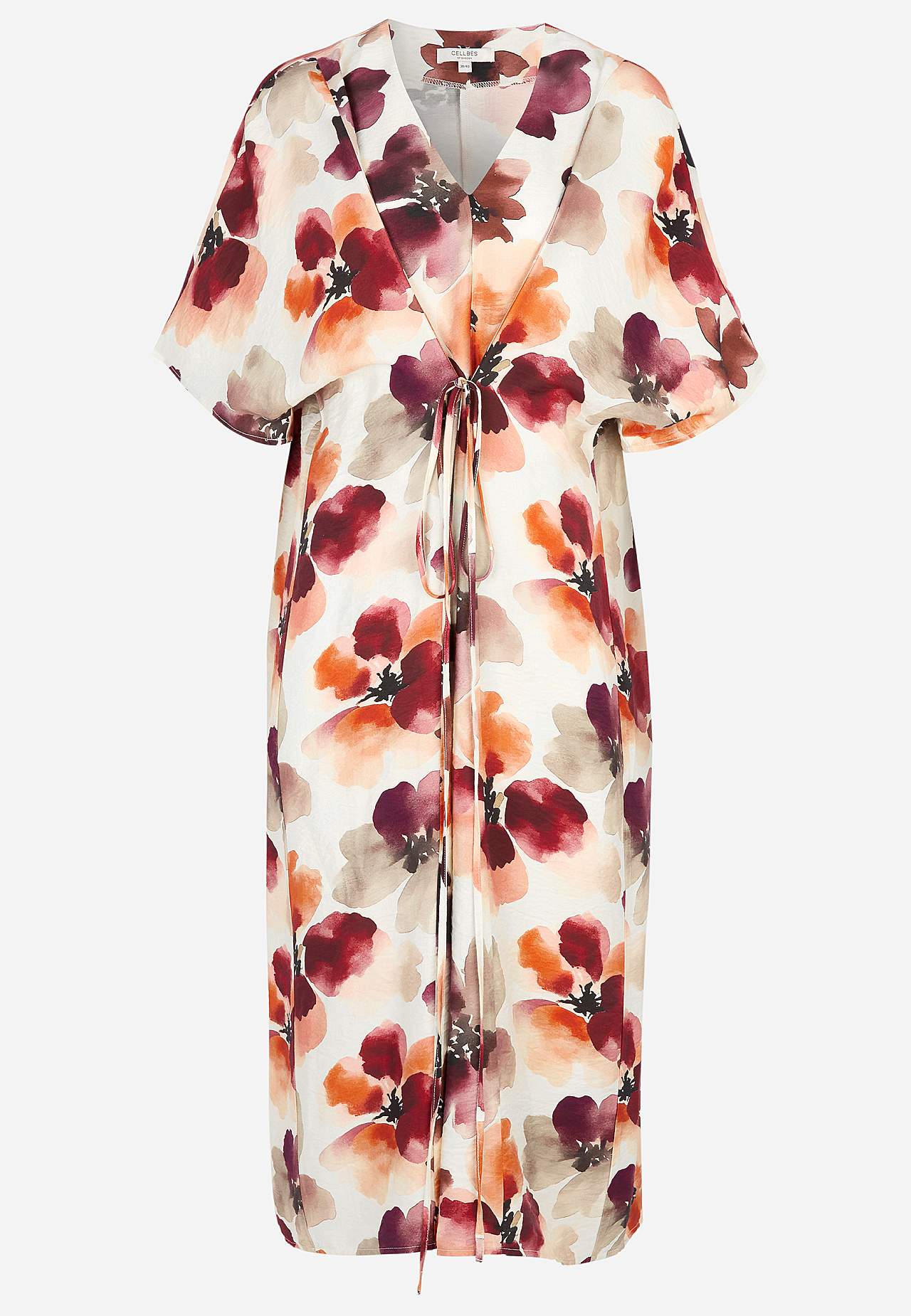 Rak, avslappnad kimonoklänning i härligt luftig viskos. Perfekt för sommarfesten. Material med något blankare strukturväv. Vid, rak passform. V-ringad hals. Korta, vida ärmar. Fastsydda knytband i midjan som knyts fram eller bak. Rak nederkant. Längd från axel ca. 131 cm i alla storlekar.
