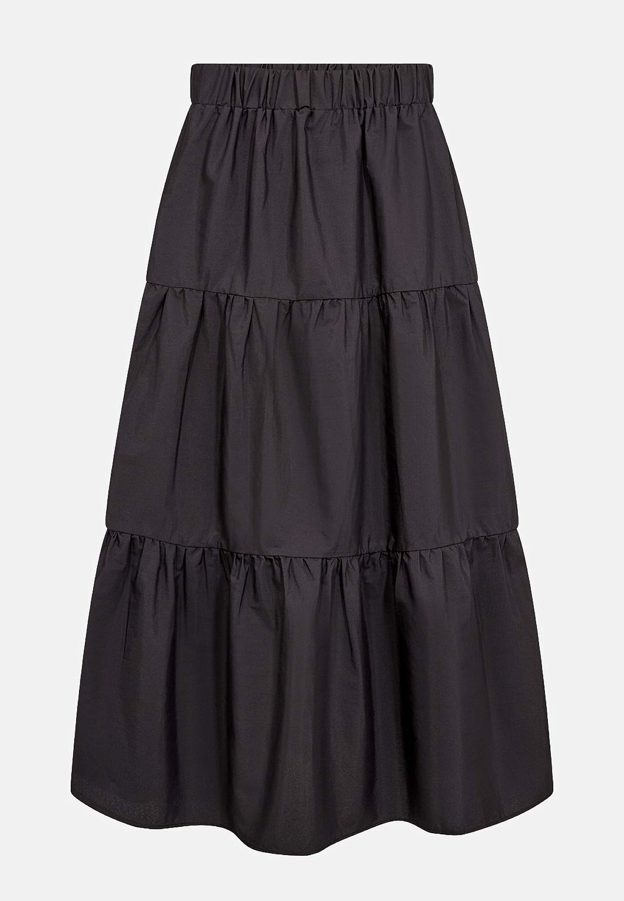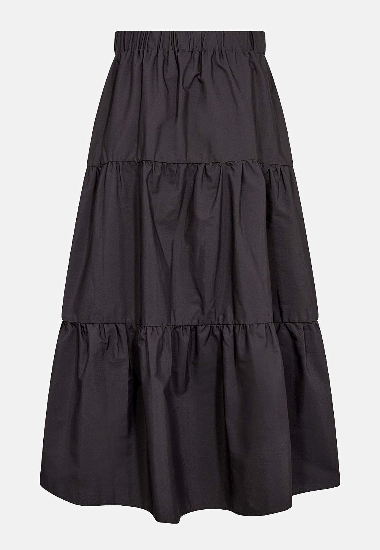 Vävd, ofodrad kjol med volanger och härlig volym. Slätt material med fin lyster. A-linjeformad passform med vidd nedtill. Bekväm, bred resårmidja. Rak nederkant. Längd ca 92 cm i storlek S (38).