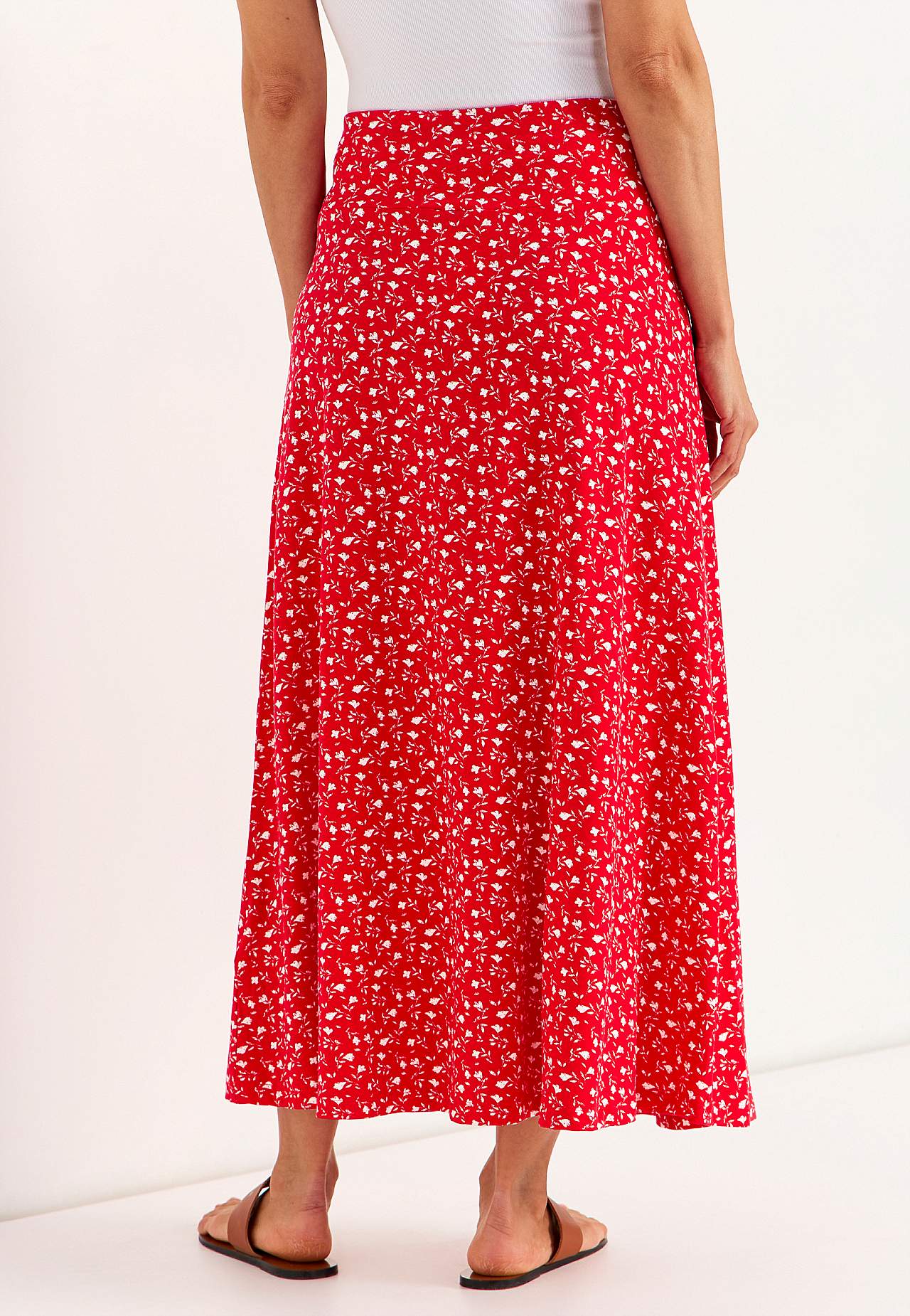 Lång, utsvängd trikåkjol