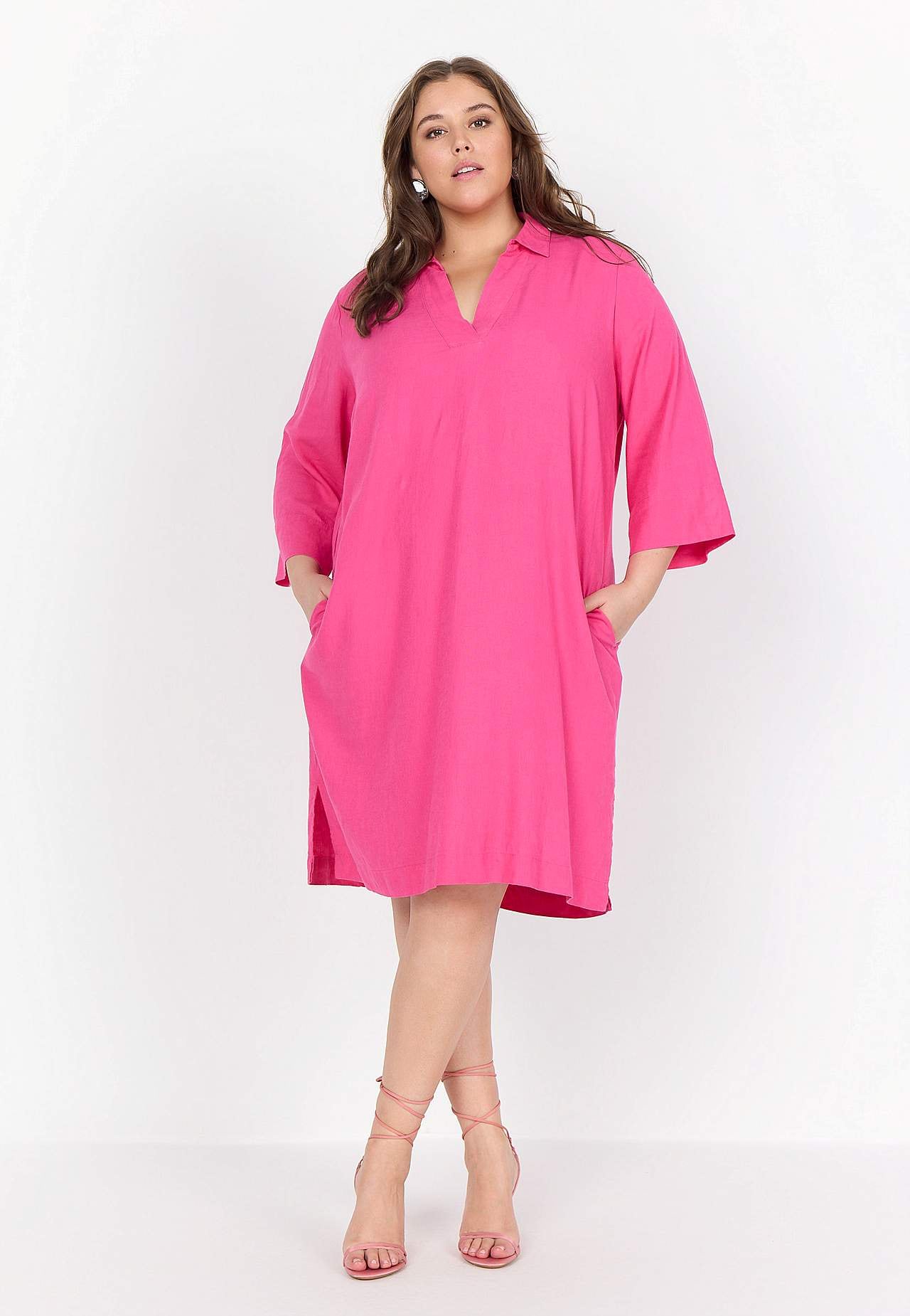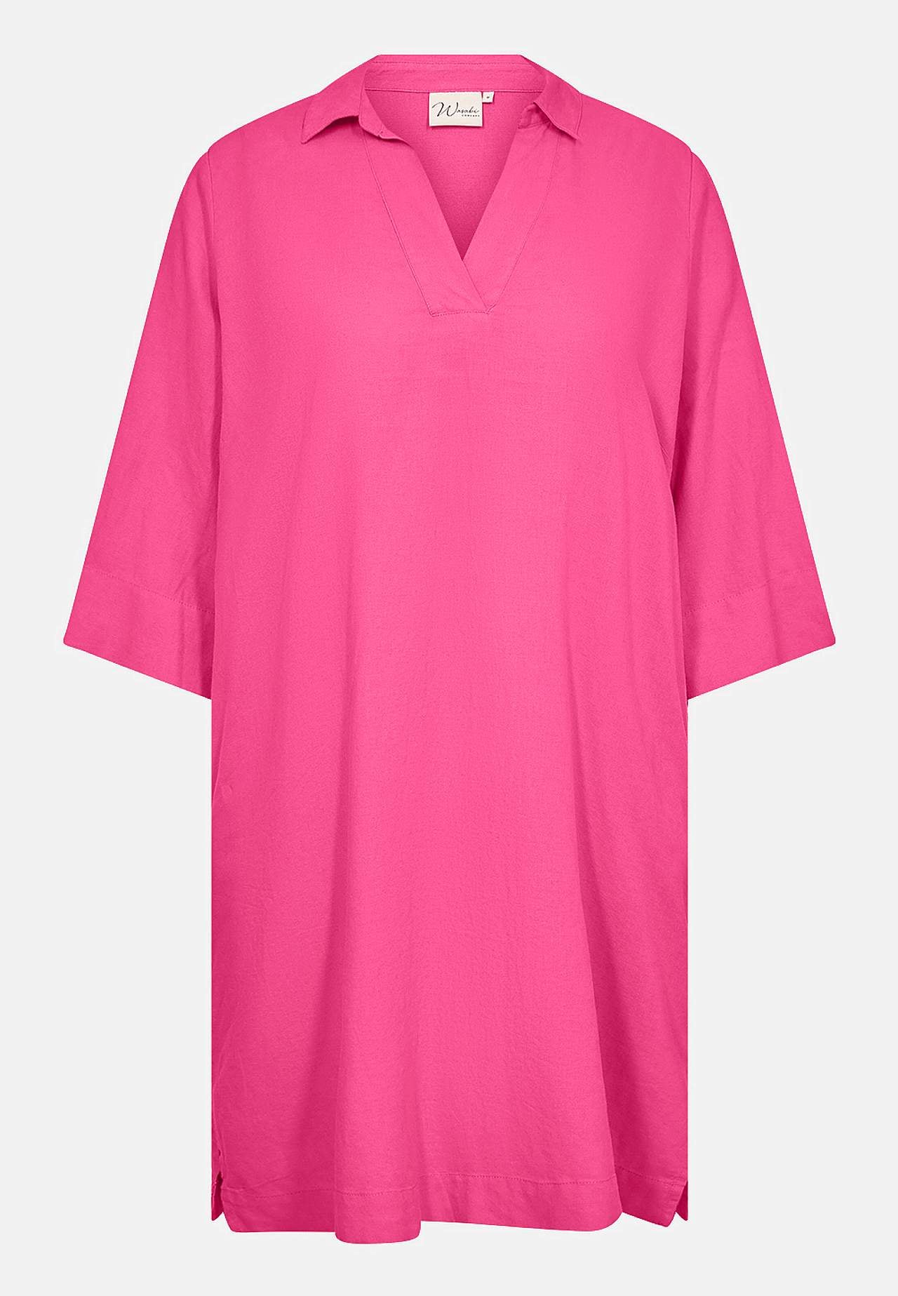 V-ringad tunikaklänning i härlig linnemix med bomull. Rak passform. V-ringning med krage. Bystinsnitt. Trekvartsärmar. Snedställda sidofickor. Rak nederkant med slits i sidorna. Längd från axeln ca 102 cm i storlek 42/44 (S).