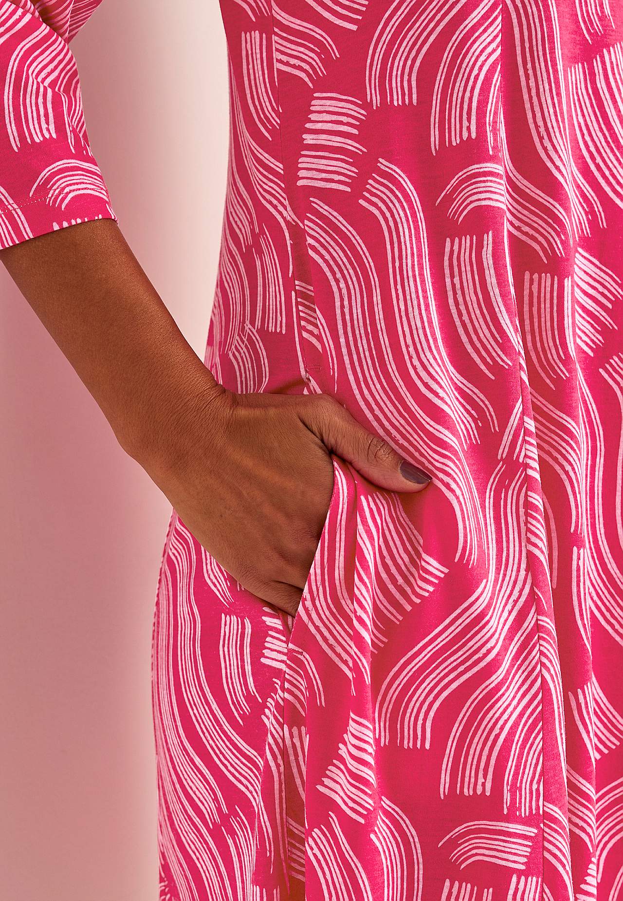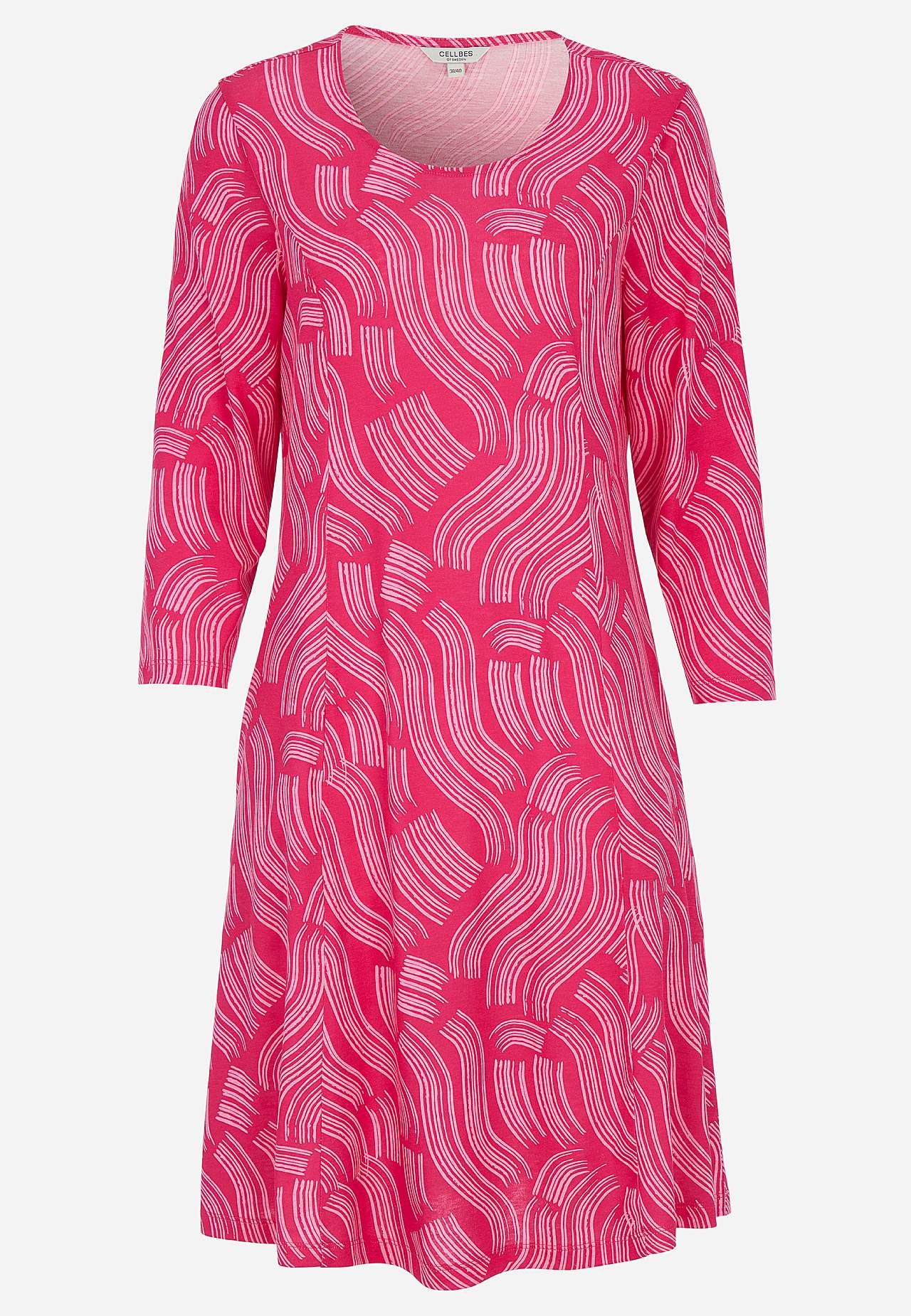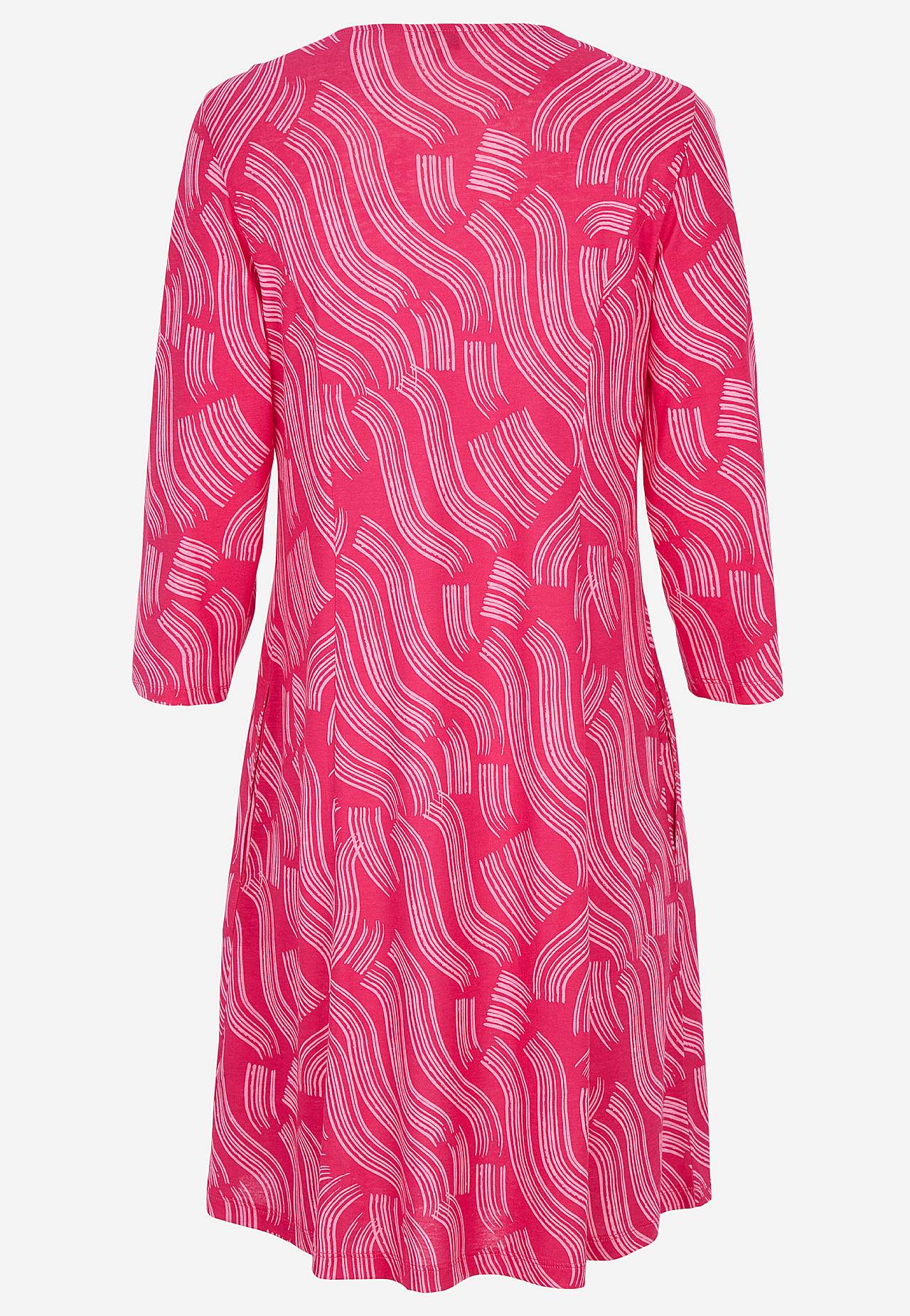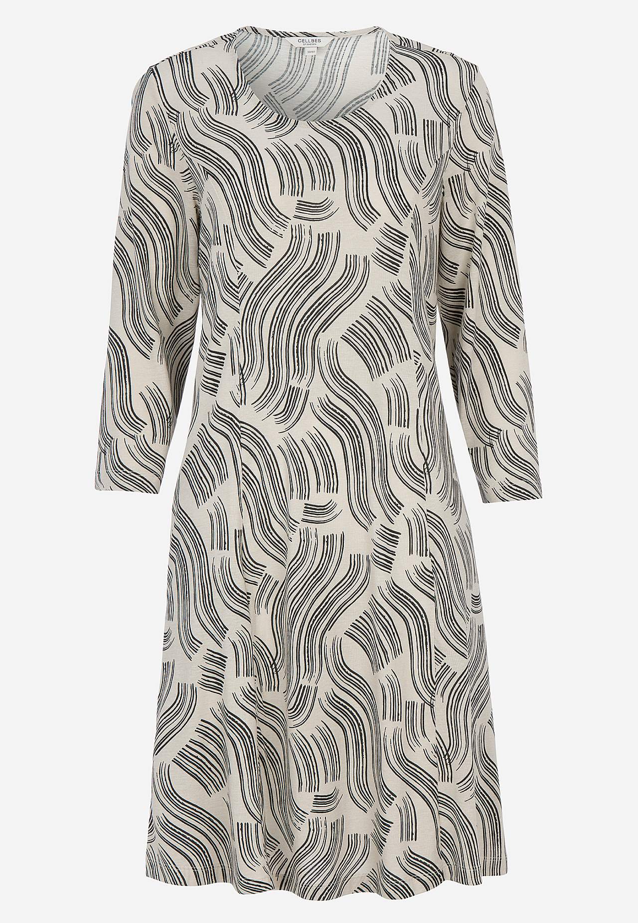 Mjuk, skön klänning i bomull- och viskosblandning. Tight passform över bysten. Utsvängd modell med panelsömmar både fram och bak. Rundad halsringning. Bekväma sidofickor. 3/4-långa, raka ärmar. Längden följer storleken ca 96-108 cm från axeln.
