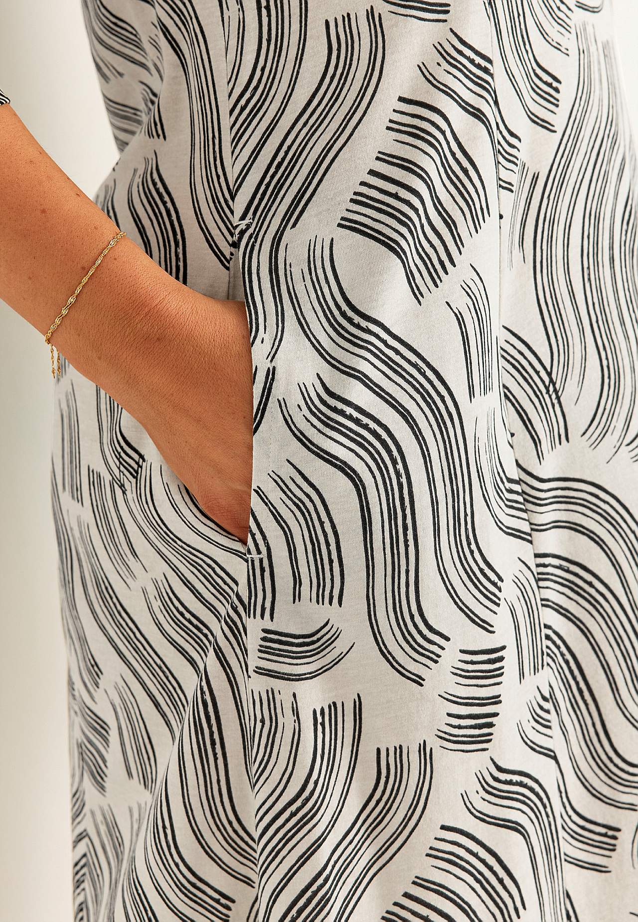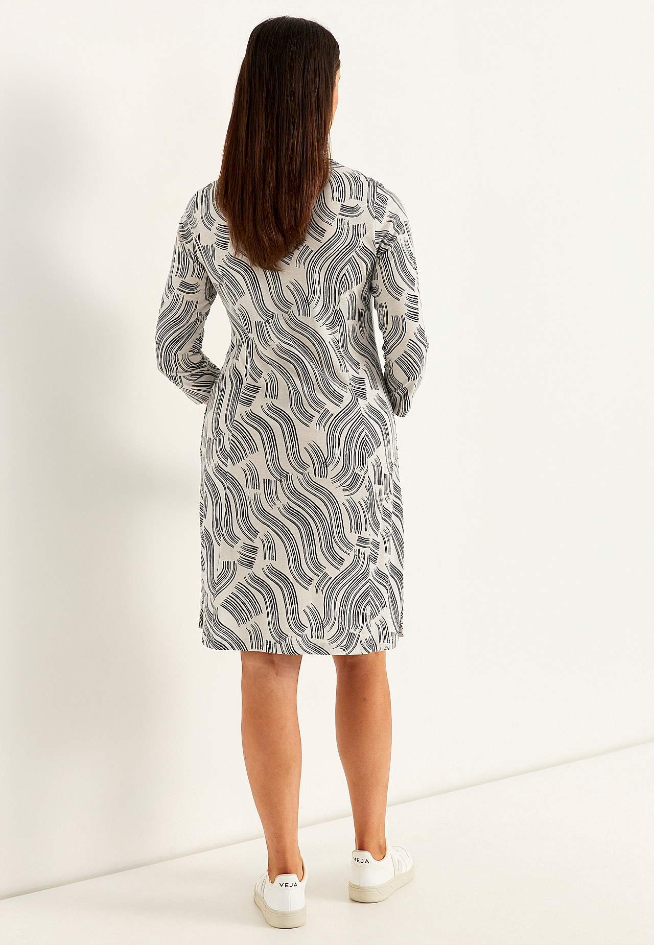 Mönstrad trikåklänning med fickor