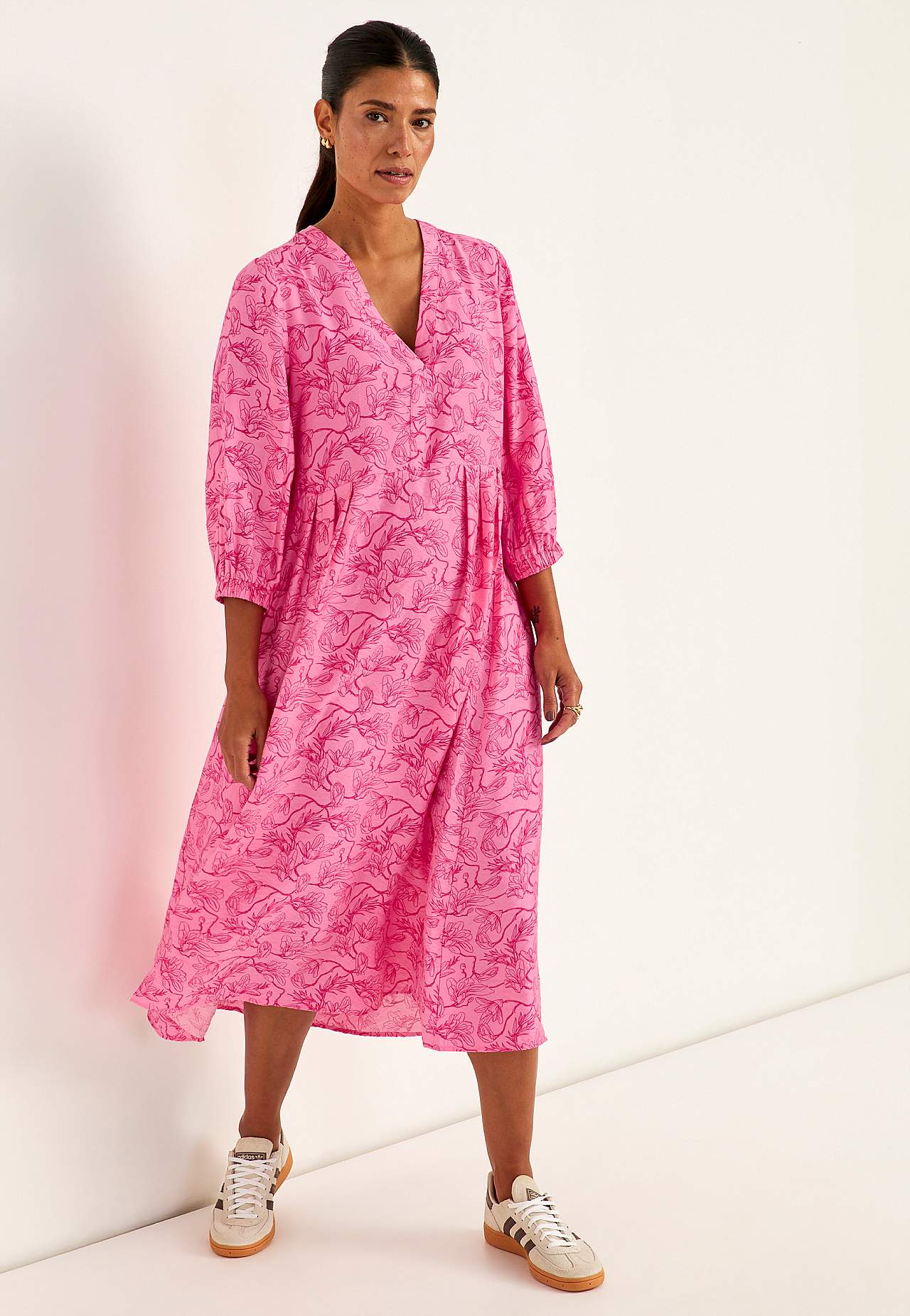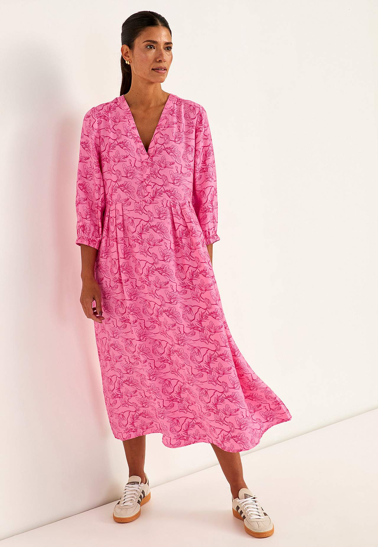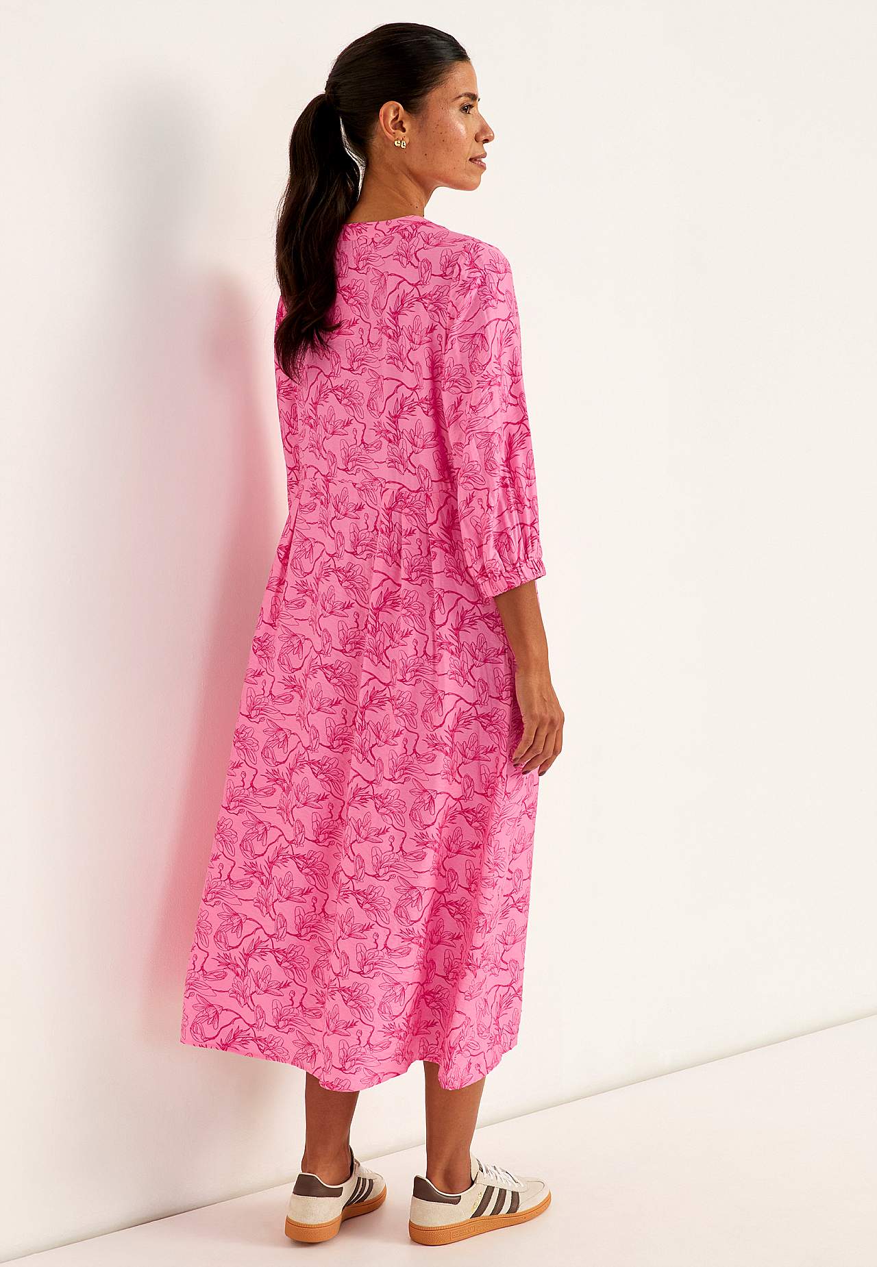 Klänning i viskos med lätt struktur och något blankare yta. Fint fall och sval känsla. Något snävare passform med nätt midja och nederdel med vidd. Rygglängd ca 125 cm i alla storlekar.