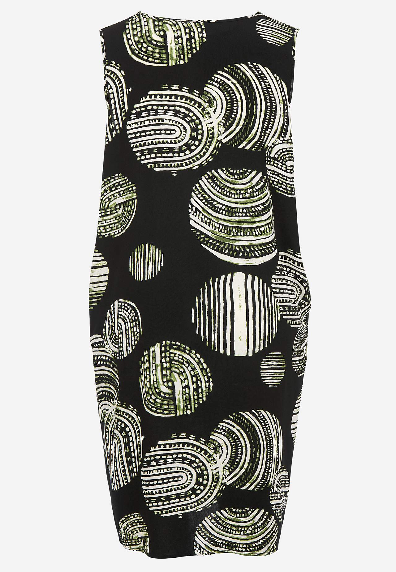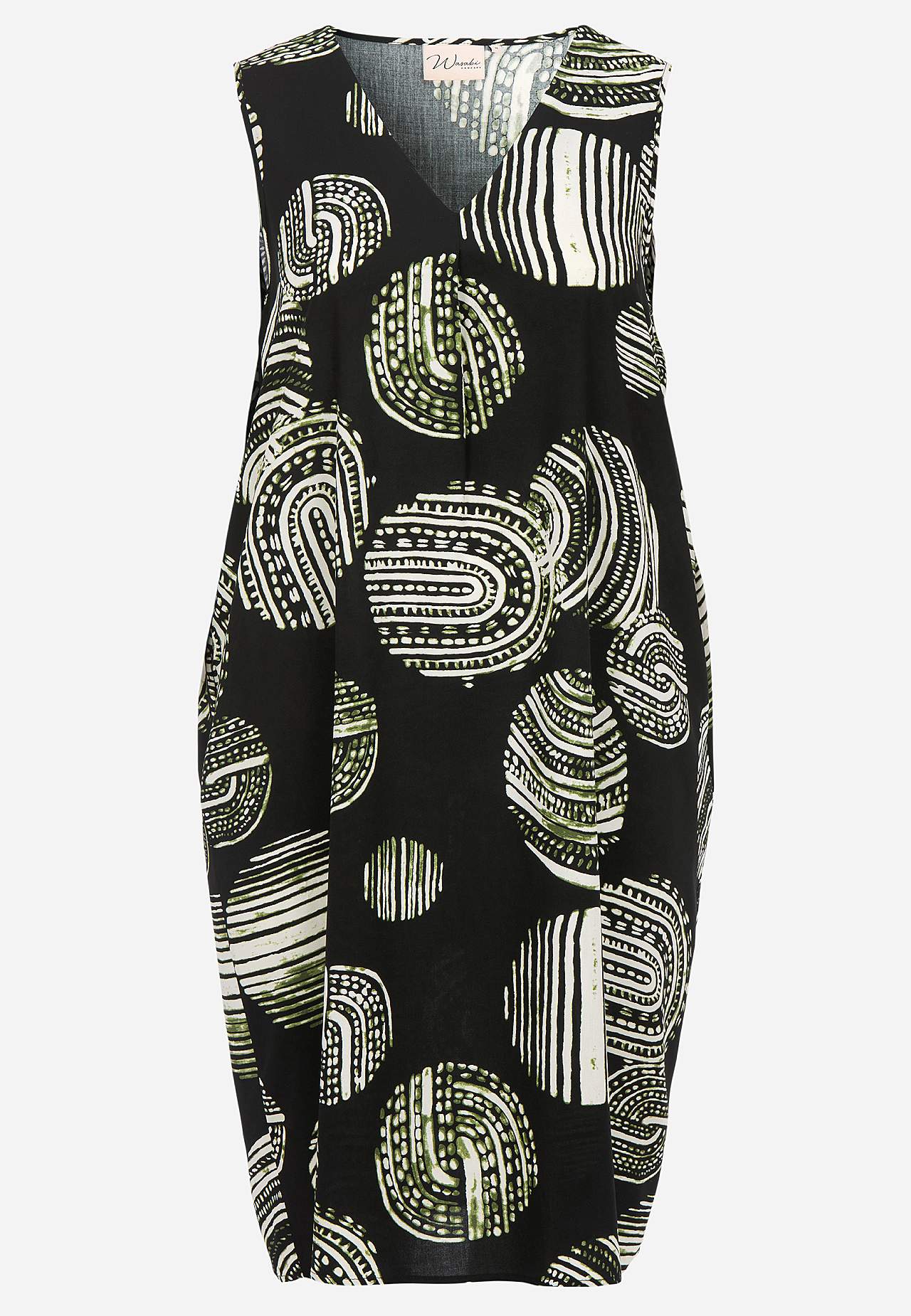 Vävd, ärmlös klänning i följsam, mjuk viskos. Lös passform. V-ringad modell med dekorativt veck fram. Bystinsnitt. Ärmlös modell med bekväm resår under armen. Dolda fickor i sidorna. Rak nederkant. Längd från axeln ca 114 cm i storlek M (46/48).