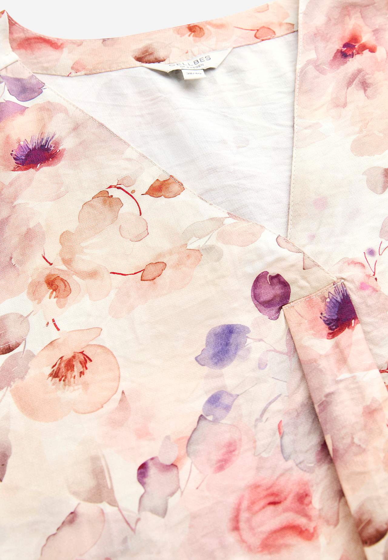 Elegant festblus i sval viskosmix med fint fall. Material med lätt struktur. Snygg att matcha med både jeans och kjol. Normal passform. Hals med en överlappad v-ringning och fint veck framtill. Lätt rundad nederkant. Rygglängden följer storleken ca 63-71 cm.