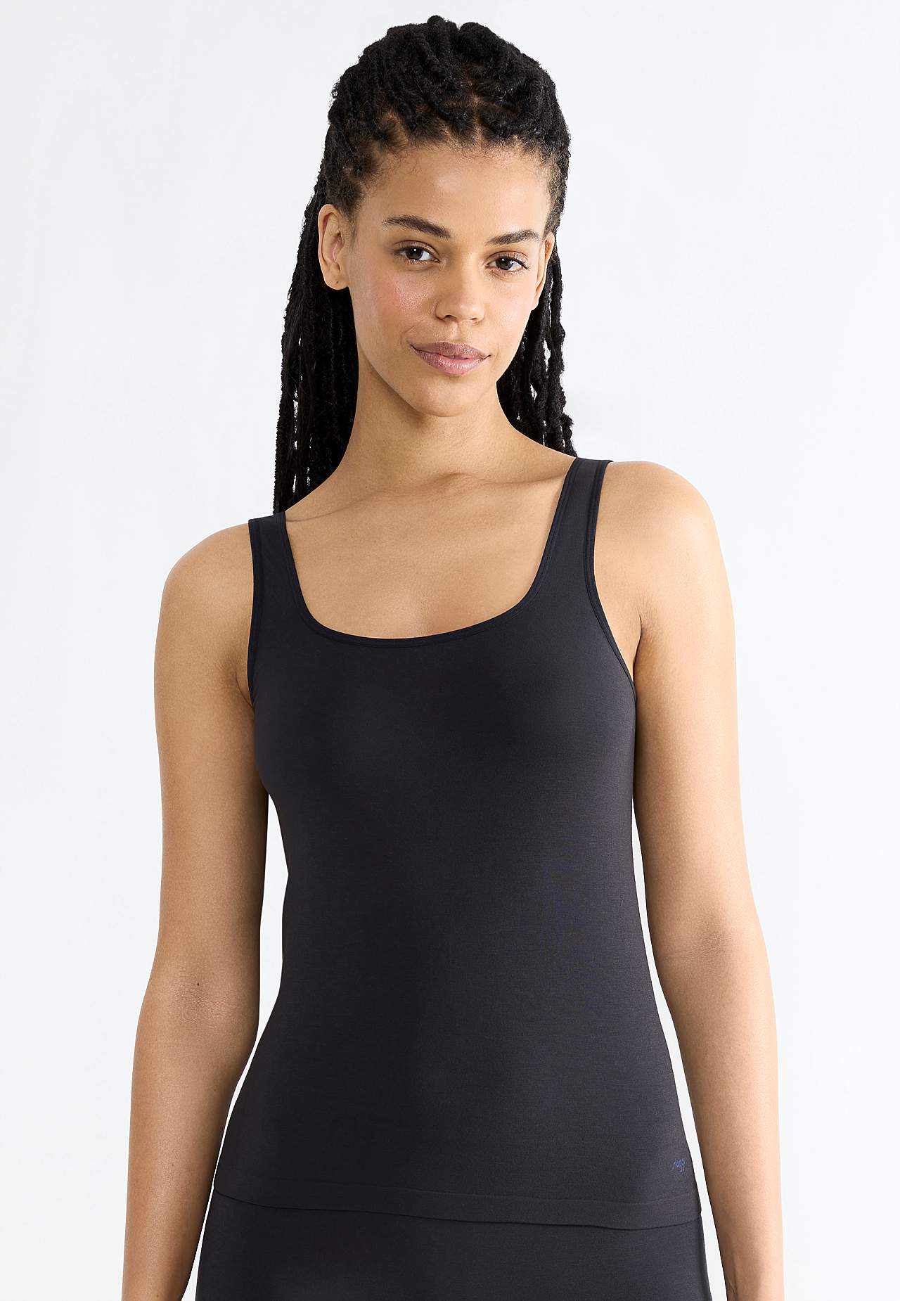 Bekvämt linne i sval modal för alla tillfällen. Silkesmjukt, fuktreglerande material med god andningsförmåga och stretch. Figurnära passform. Breda axelband. Nederkant med platta sömmar. Längd från axeln ca cm i storlek .