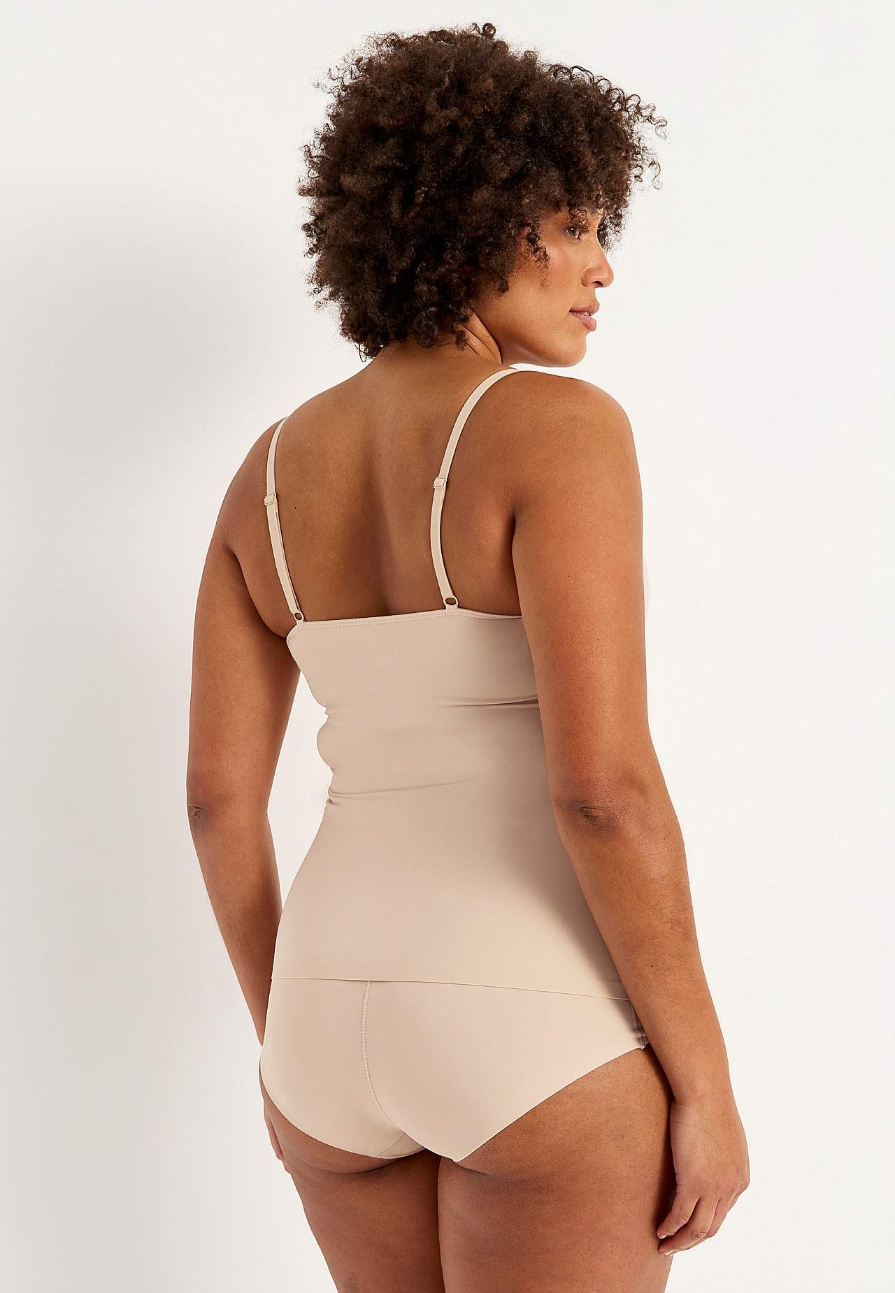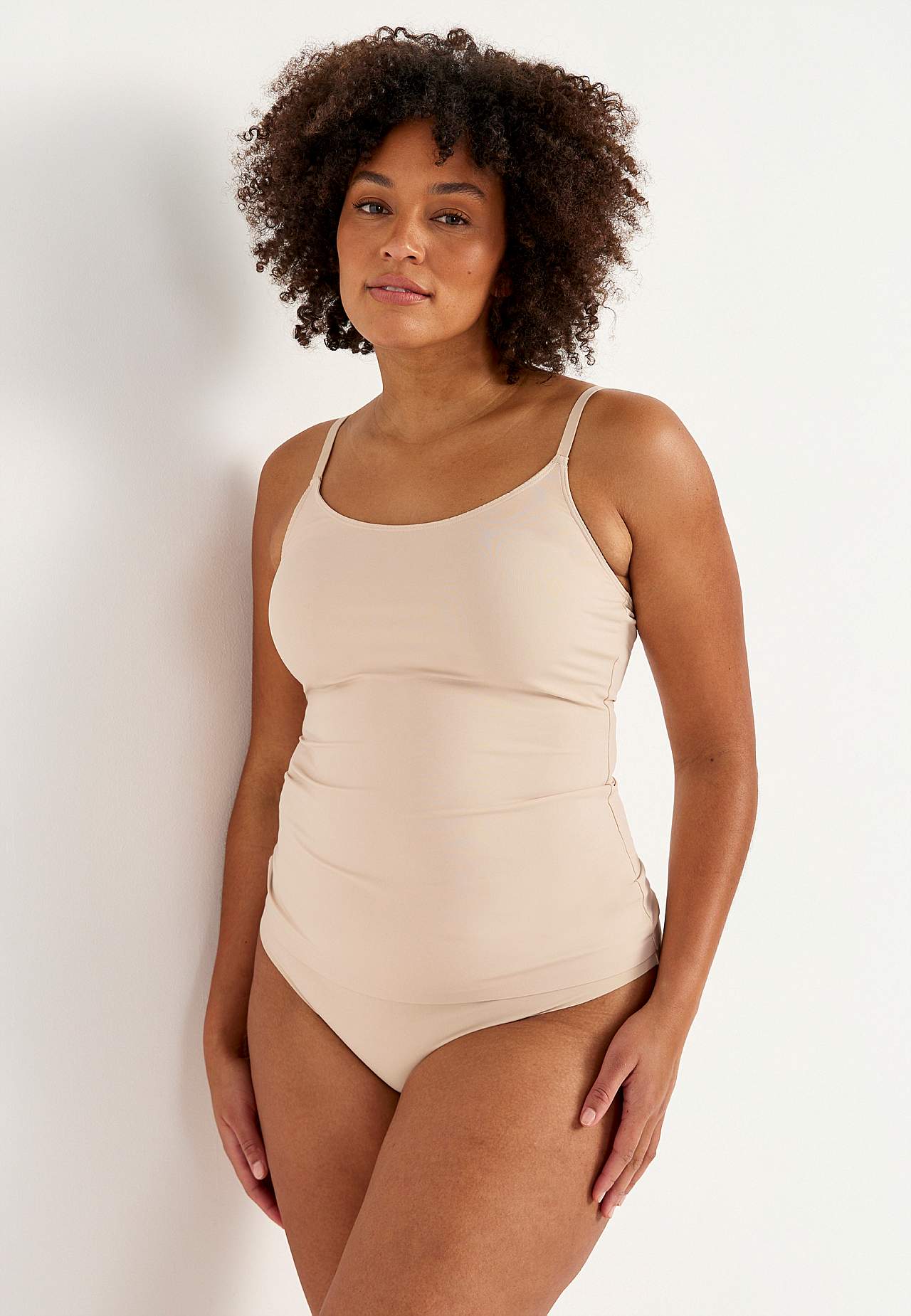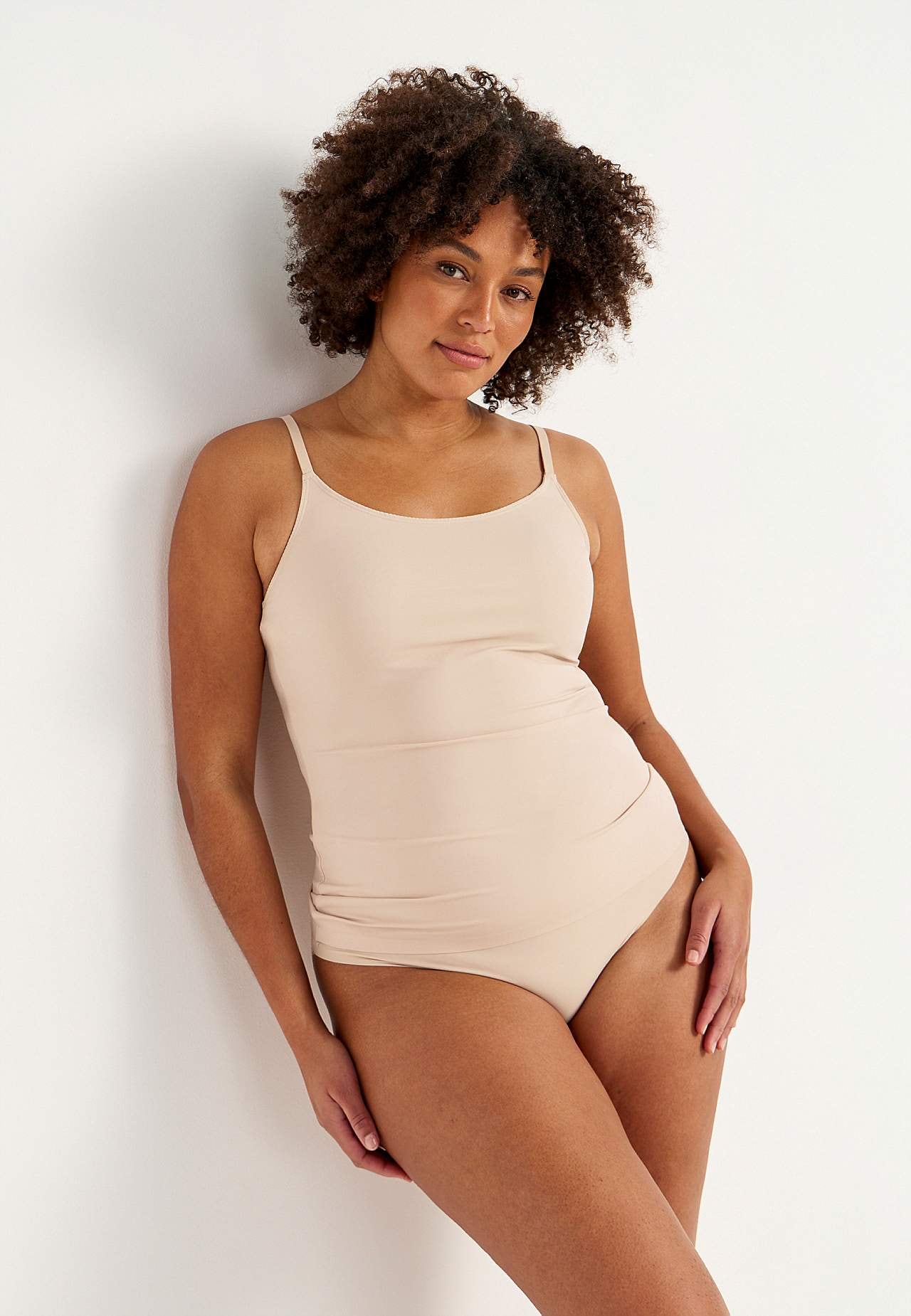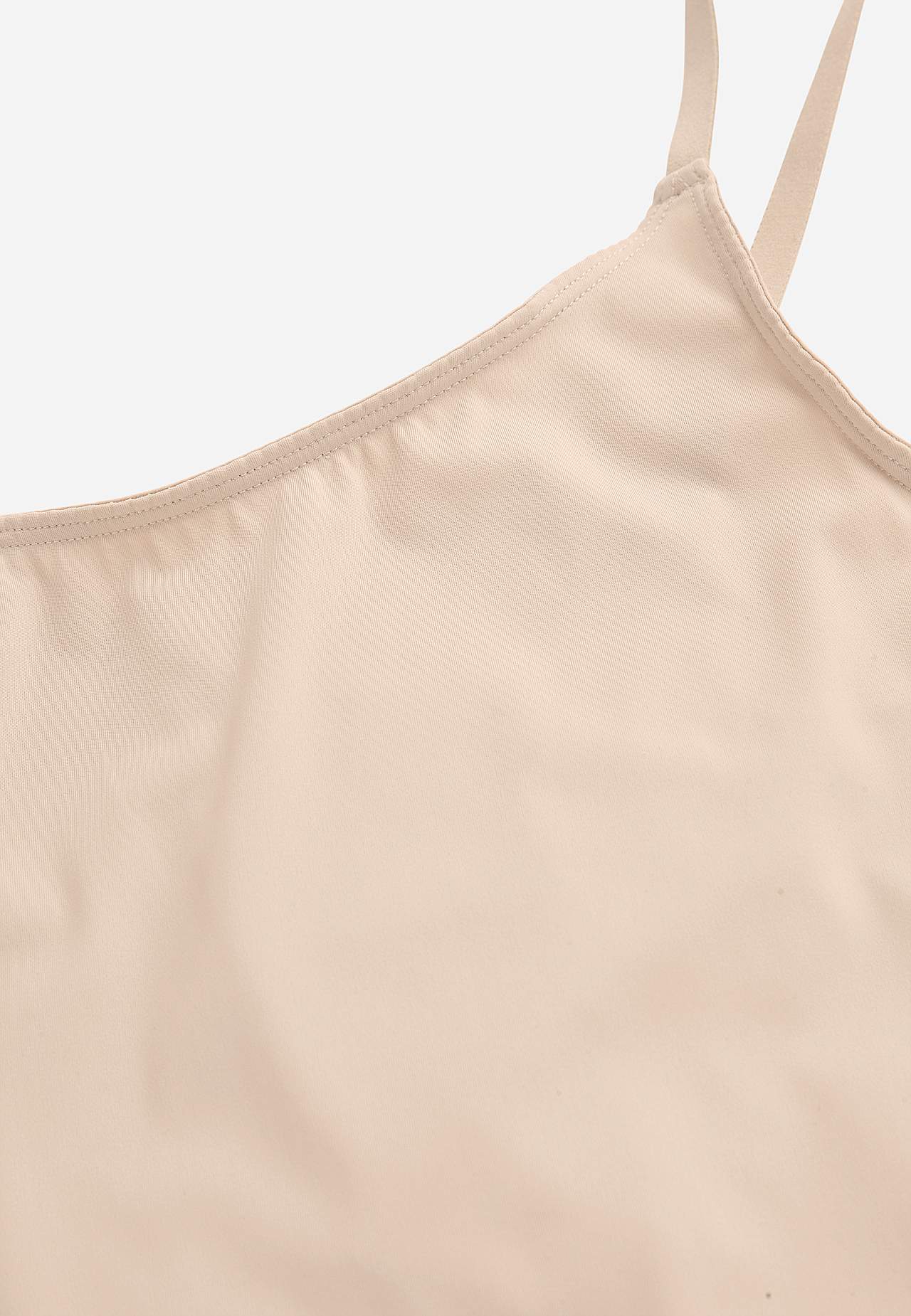 Figurnära passform med lätt shaping-effekt. Mjuk, stretchig microfiber. Snabbtorkande material perfekt för varma dagar. Reglerbara axelband. U-ringning. Sömlös, laserskuren nederkant. Rygglängden följer storleken ca 35-47,5 cm.