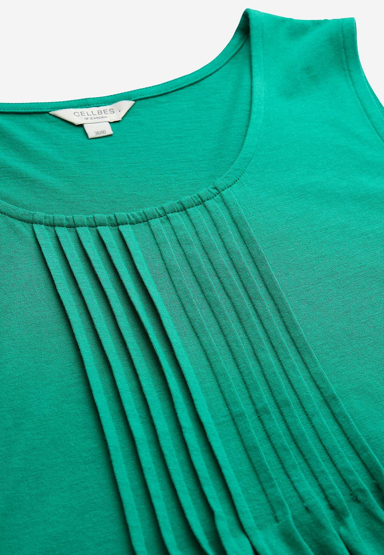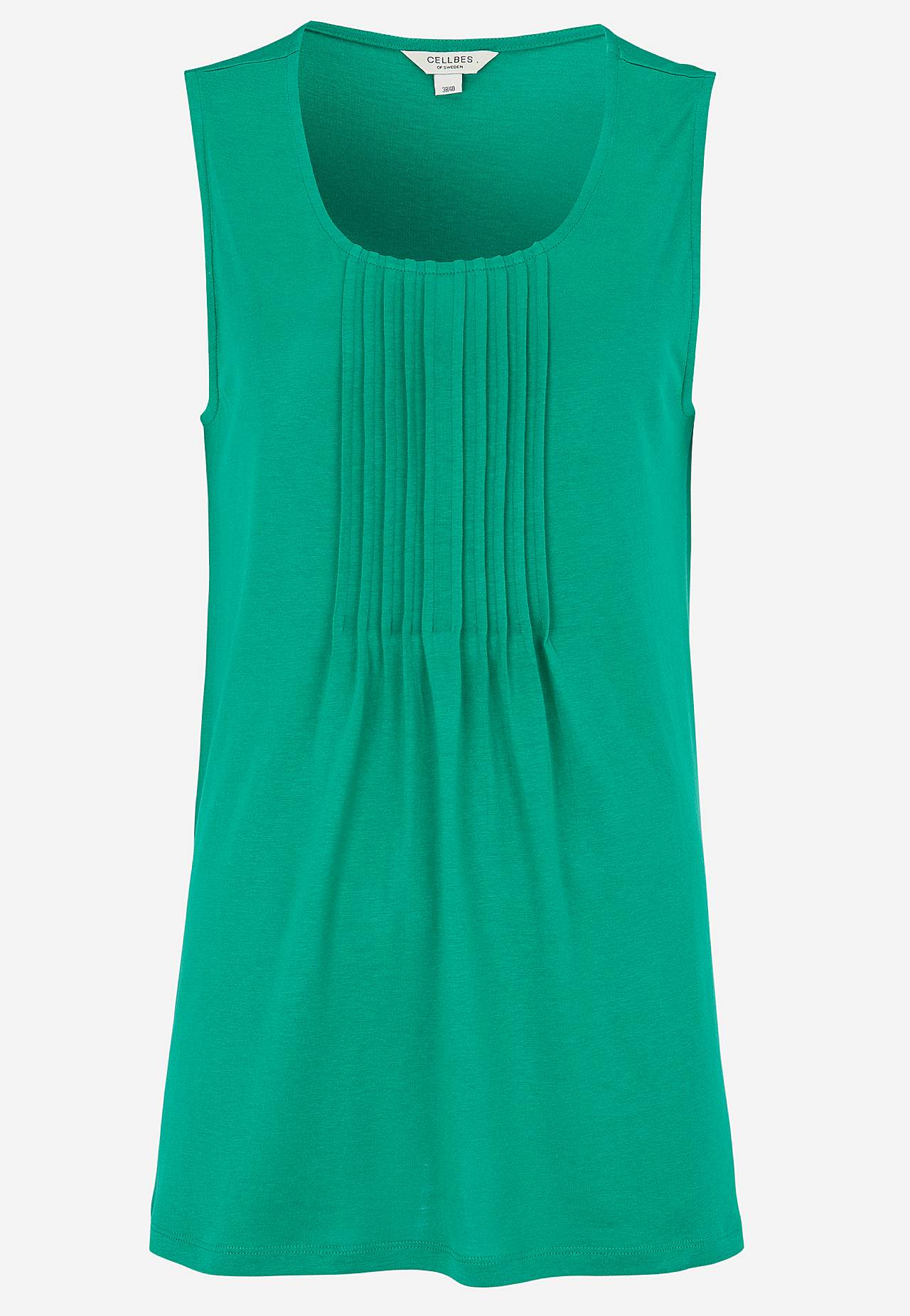 A-linjeformat linne i mjuk, ekologisk bomull med modal. Perfekt för varma härliga dagar! Design med dekorativa veck framtill. Rund hals. Rak nederkant. Längden följer storleken ca 66-78 cm från axeln.