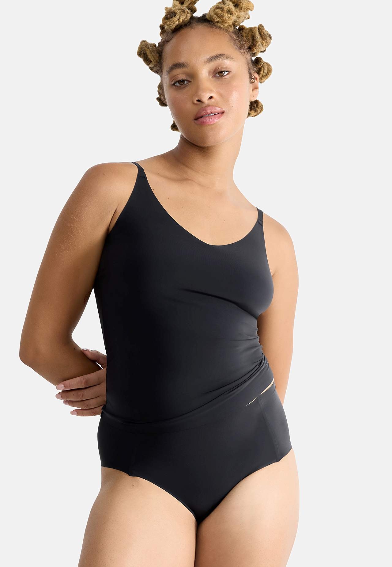 Linne i mjuk, stretchig microfiber. Lätt, tunt, snabbtorkande material med god andningsförmåga. Osynligt och bekvämt under dina kläder. Perfekt för alla tillfällen. Figurnära passform. Reglerbara, smala axelband. Sömlös, laserskuren, rak nederkant. Längd 34 cm fram(storlek S 36/38) + reglerbara axelbandet.