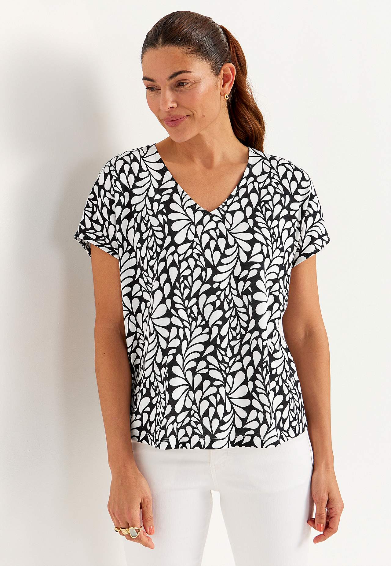 Topp i härligt mjuk viskosblandning. Lös passform. Holkärmar. Rak nederkant. Matcha gärna med 702587. Rygglängden följer storleken ca 61-71 cm.