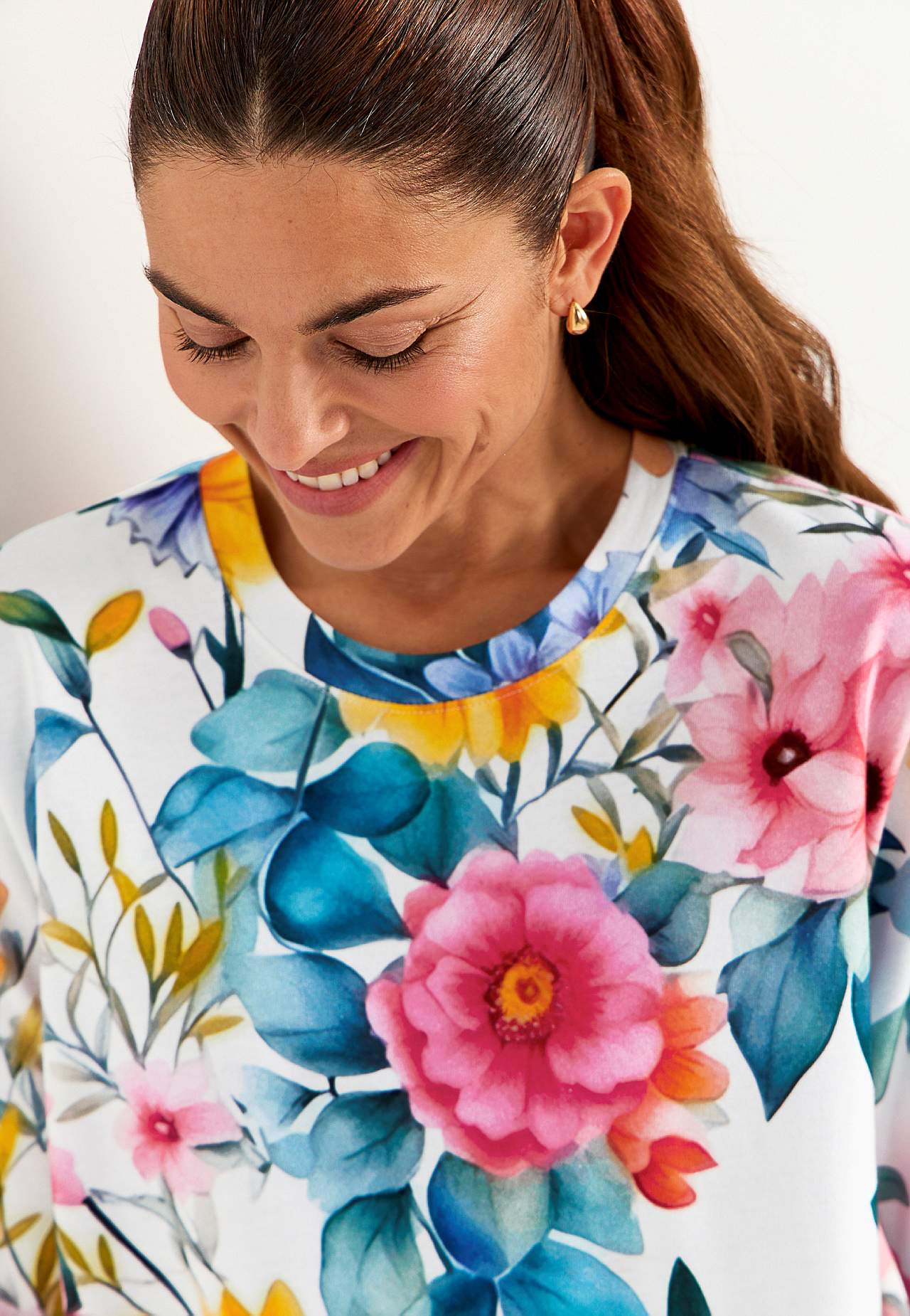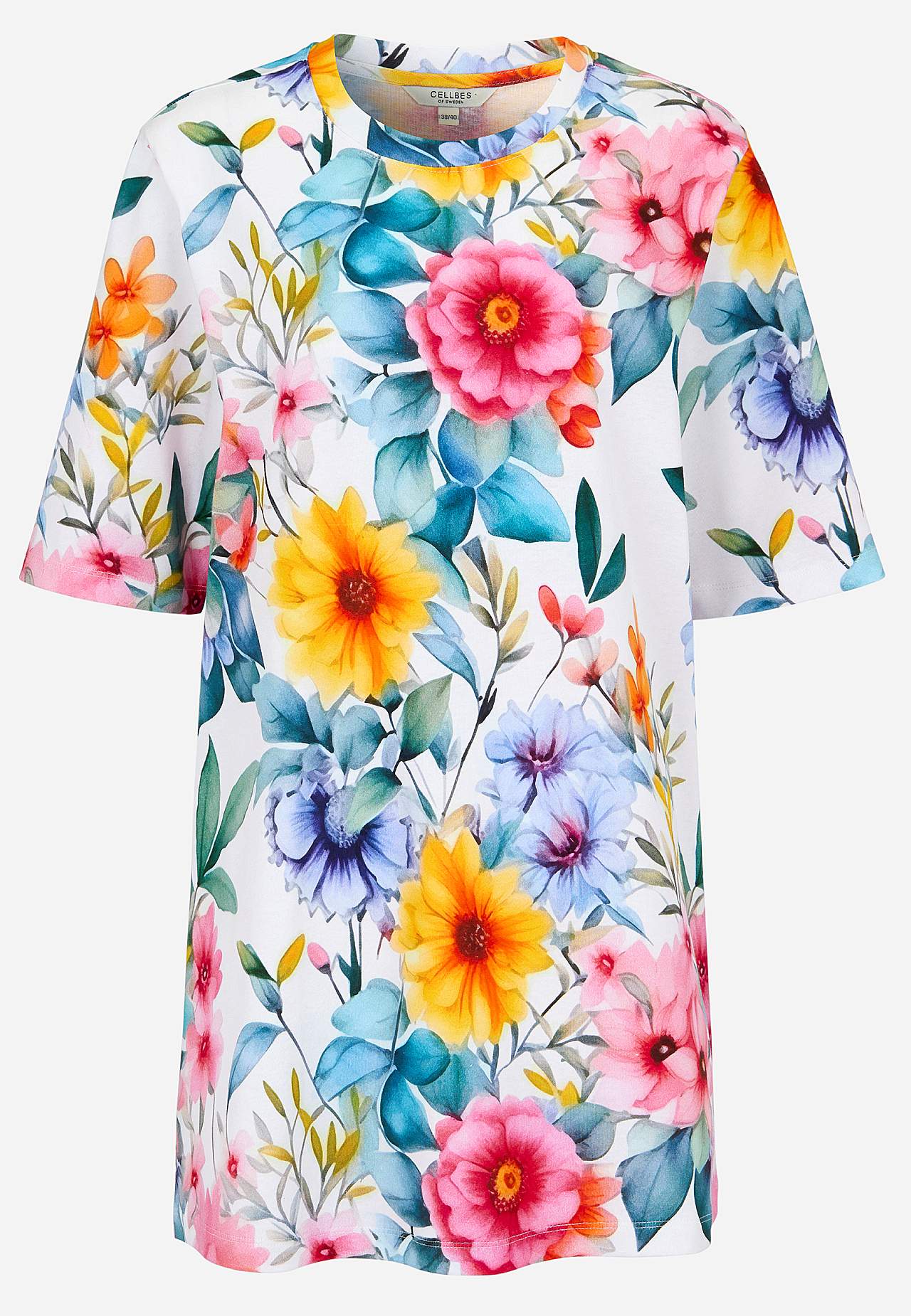 Tunika i ekologisk bomull. Mjuk, stadig, lite grövre kvalitet. Oversized, rak passform. Rund, ribbad halsringning. Nedhasad axel. Korta ärmar. Rak nederkant. Matcha gärna med 700011. Längden följer storleken ca 79-86 cm från axeln bak.
