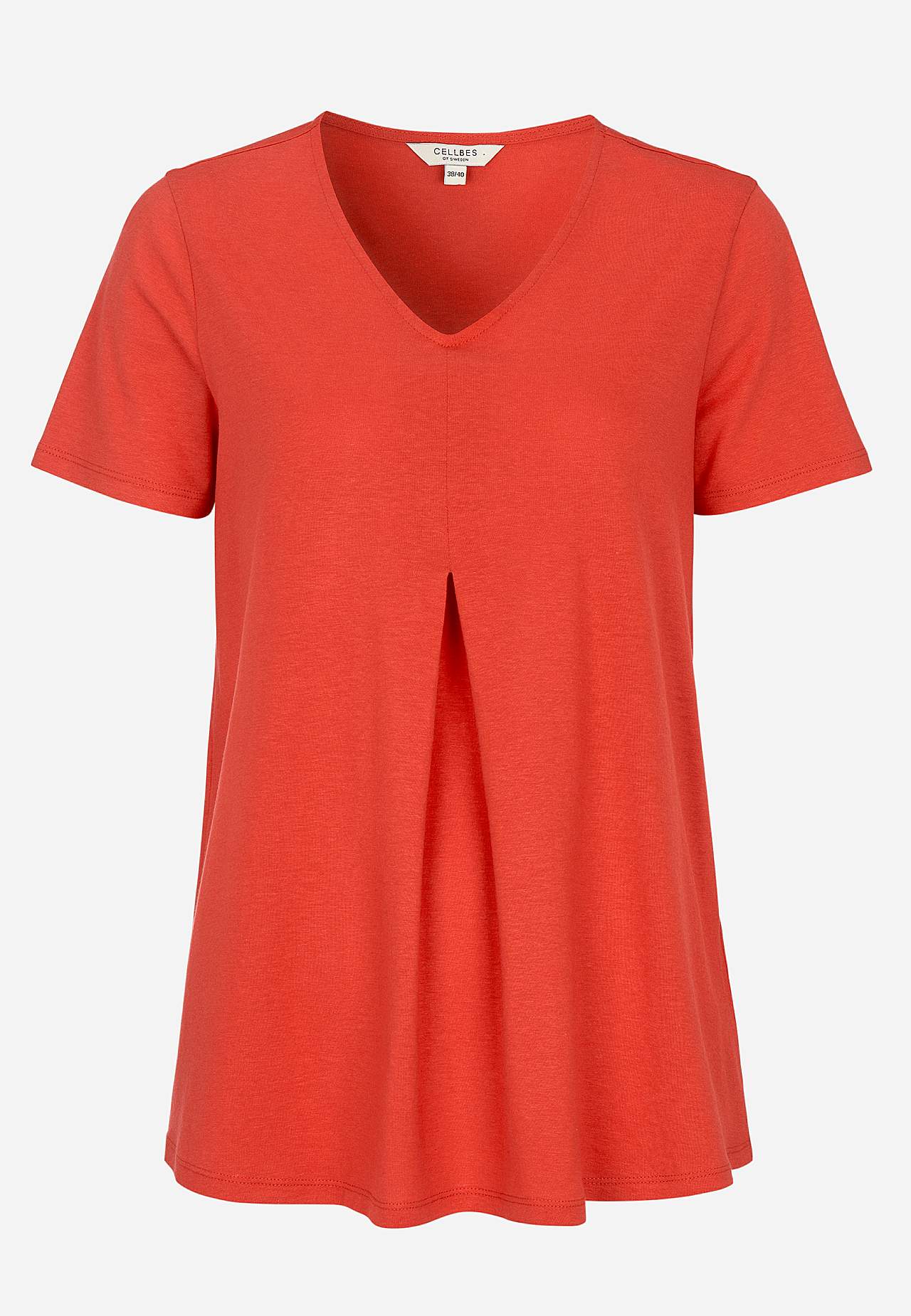 Trikåtopp i härligt mjuk bomulls- och modalblandning. A-linjeformad lös passform med rundad nederkant. V-ringad. Smickrande motveck över bysten. Korta ärmar. Längden följer storleken ca 69-84 cm från axeln.