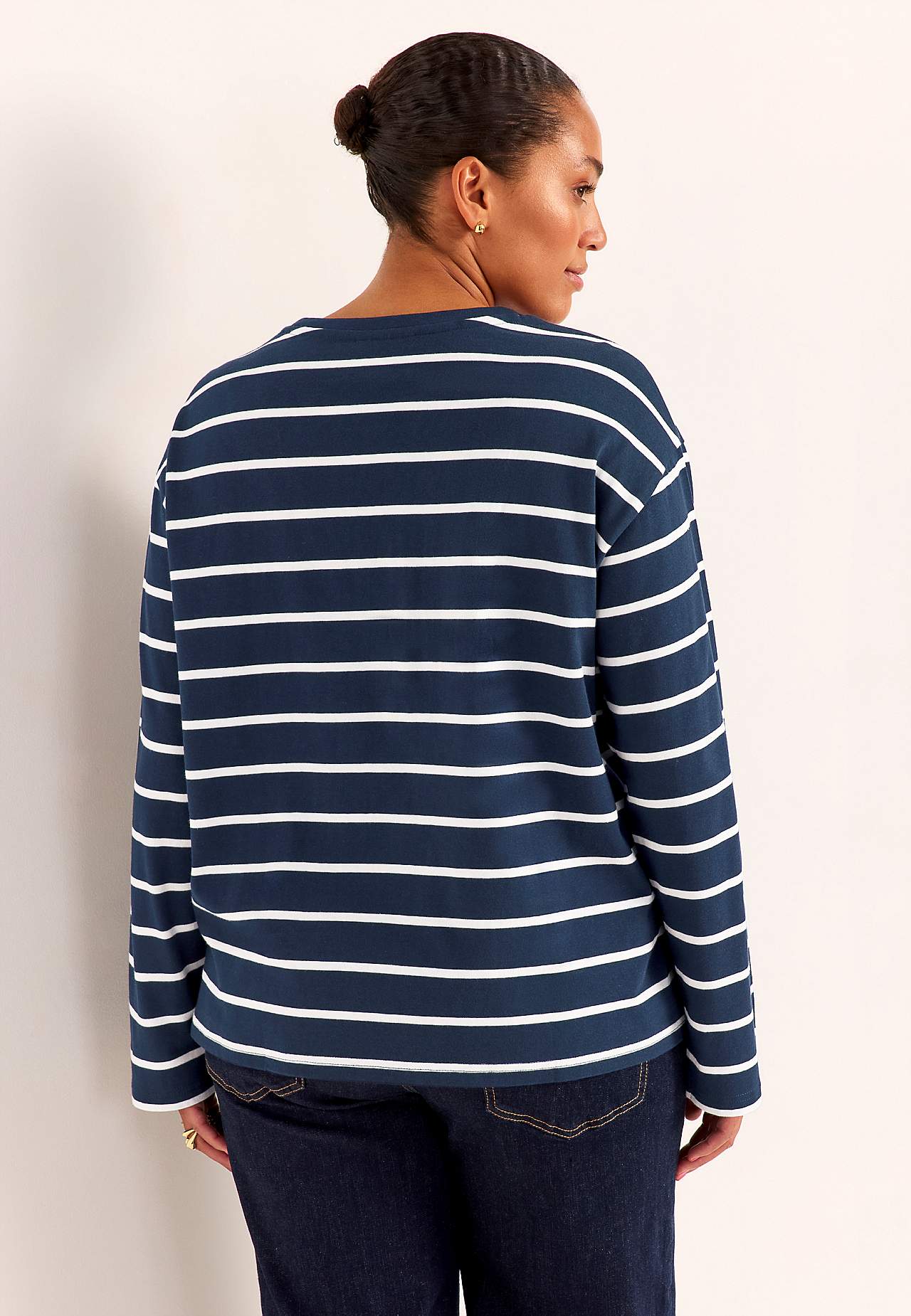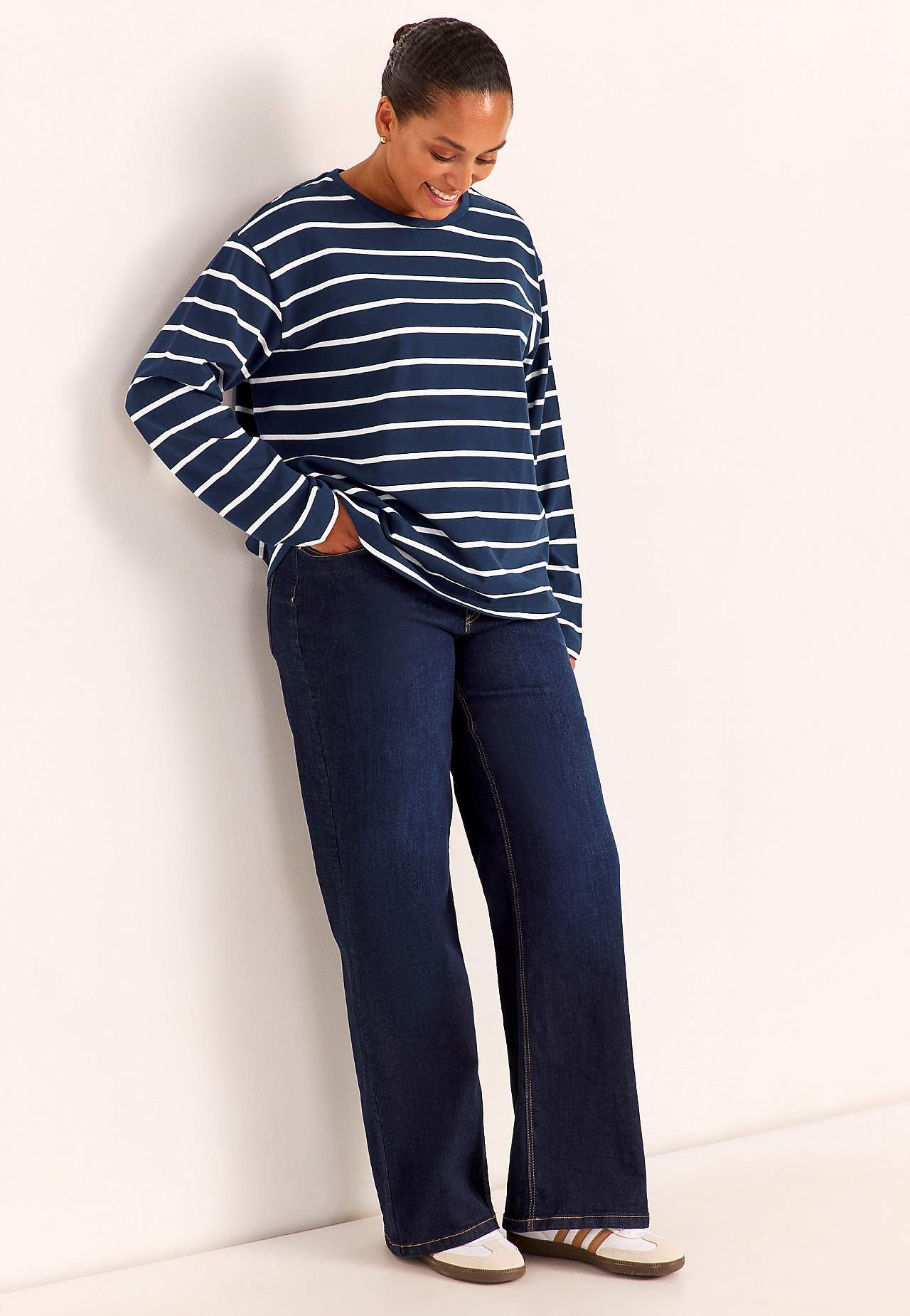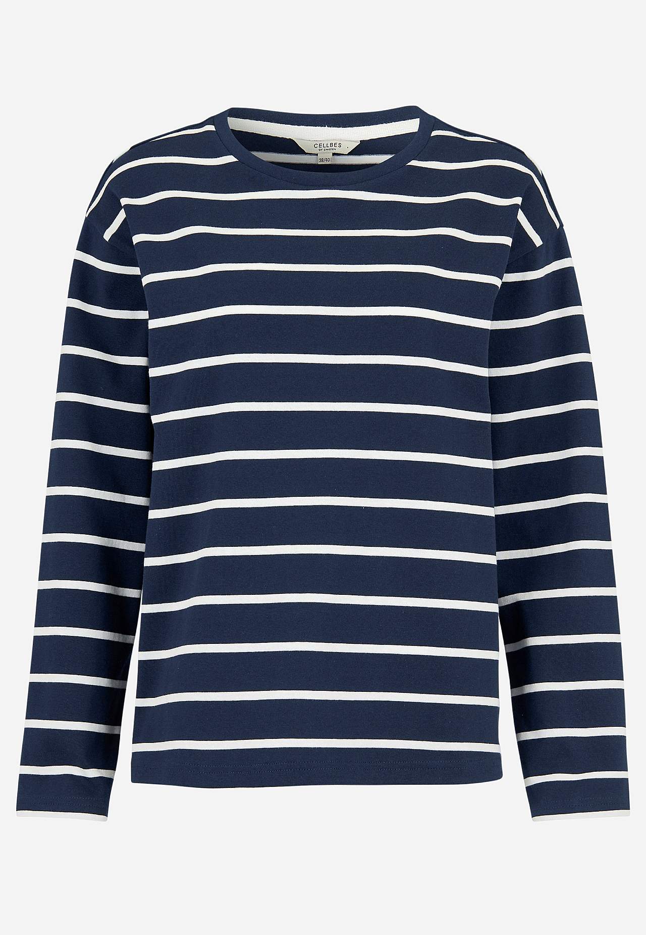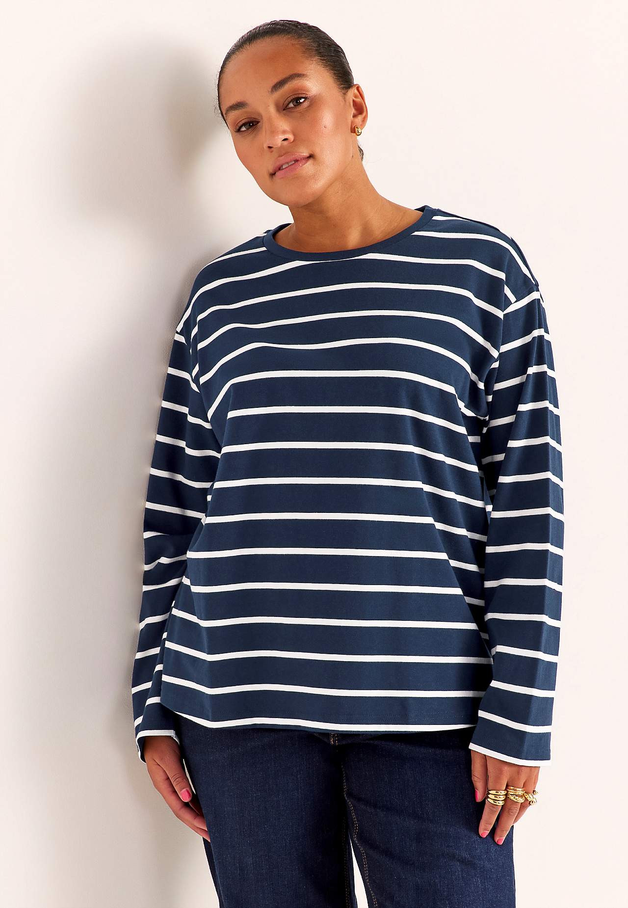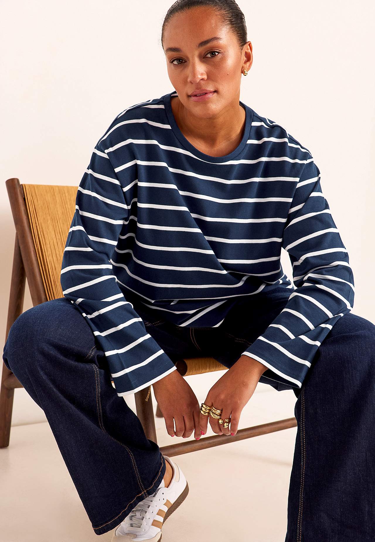 Topp med garnfärgade ränder. Mjuk, stadig, lite kraftigare kvalitet. Rak, ledig passform. Rund, ribbad halsringning. Nedhasad axel. Långa, något vidare ärmar. Rak nederkant. Ett perfekt plagg att ha i den vardagliga garderoben. Längden följer storleken ca 61-75 cm från axeln.