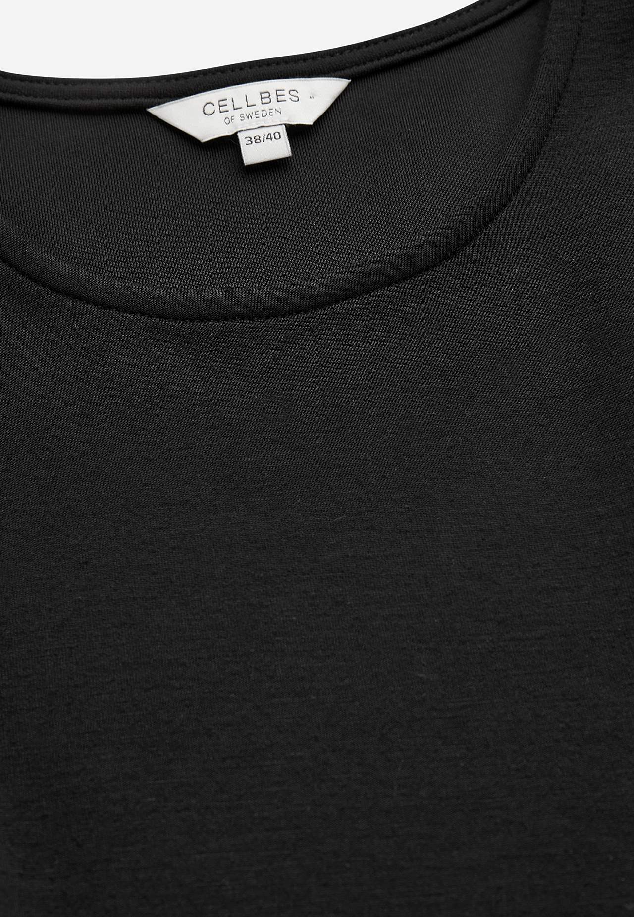 Silkesmjuk topp i lite kraftigare modalmix. Normal passform med smickrande insnitt både fram och bak. Rund halsringning. Vida, halvlånga ärmar. Rak nederkant. Längden följer storleken ca 62-77 cm från axeln.