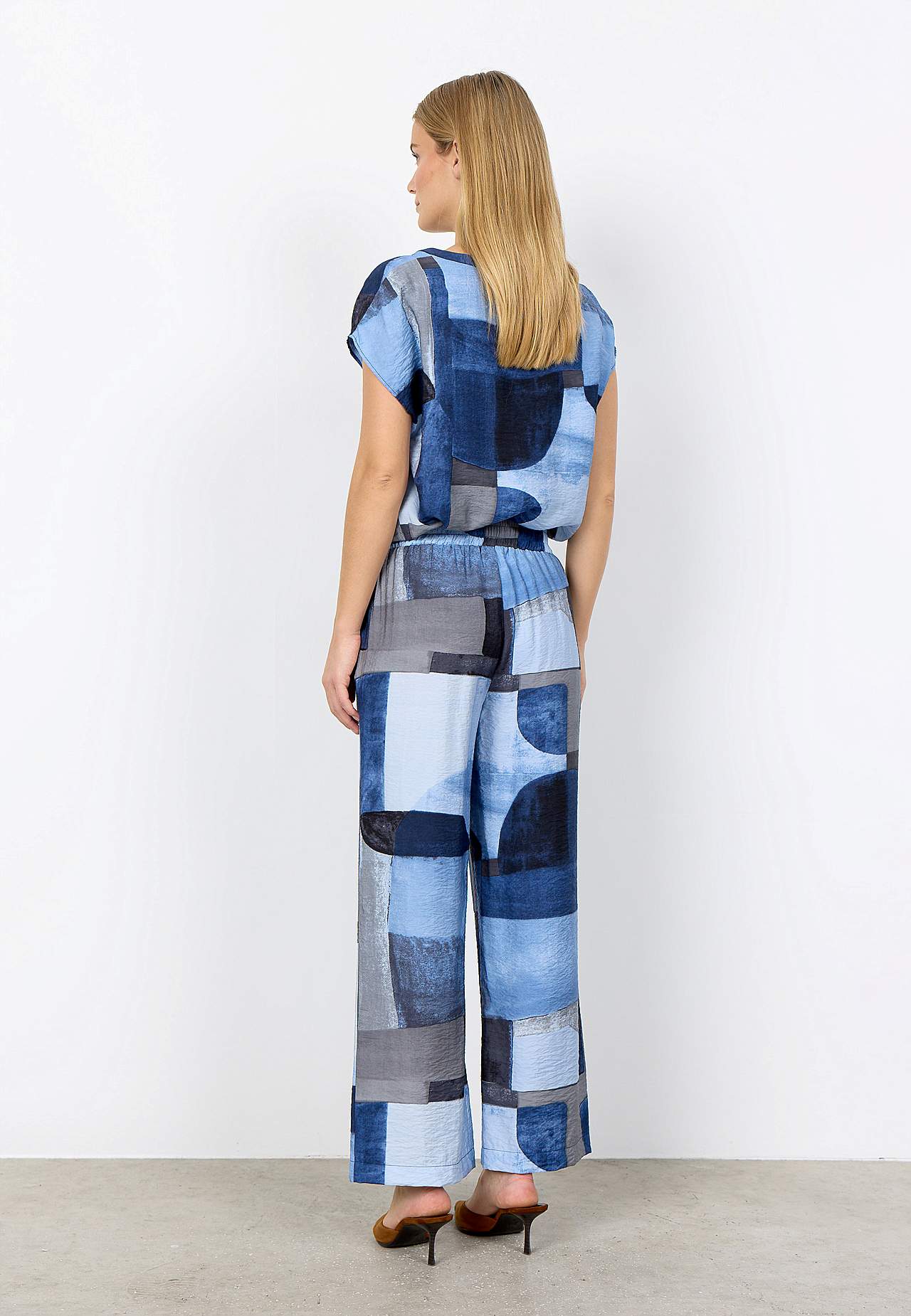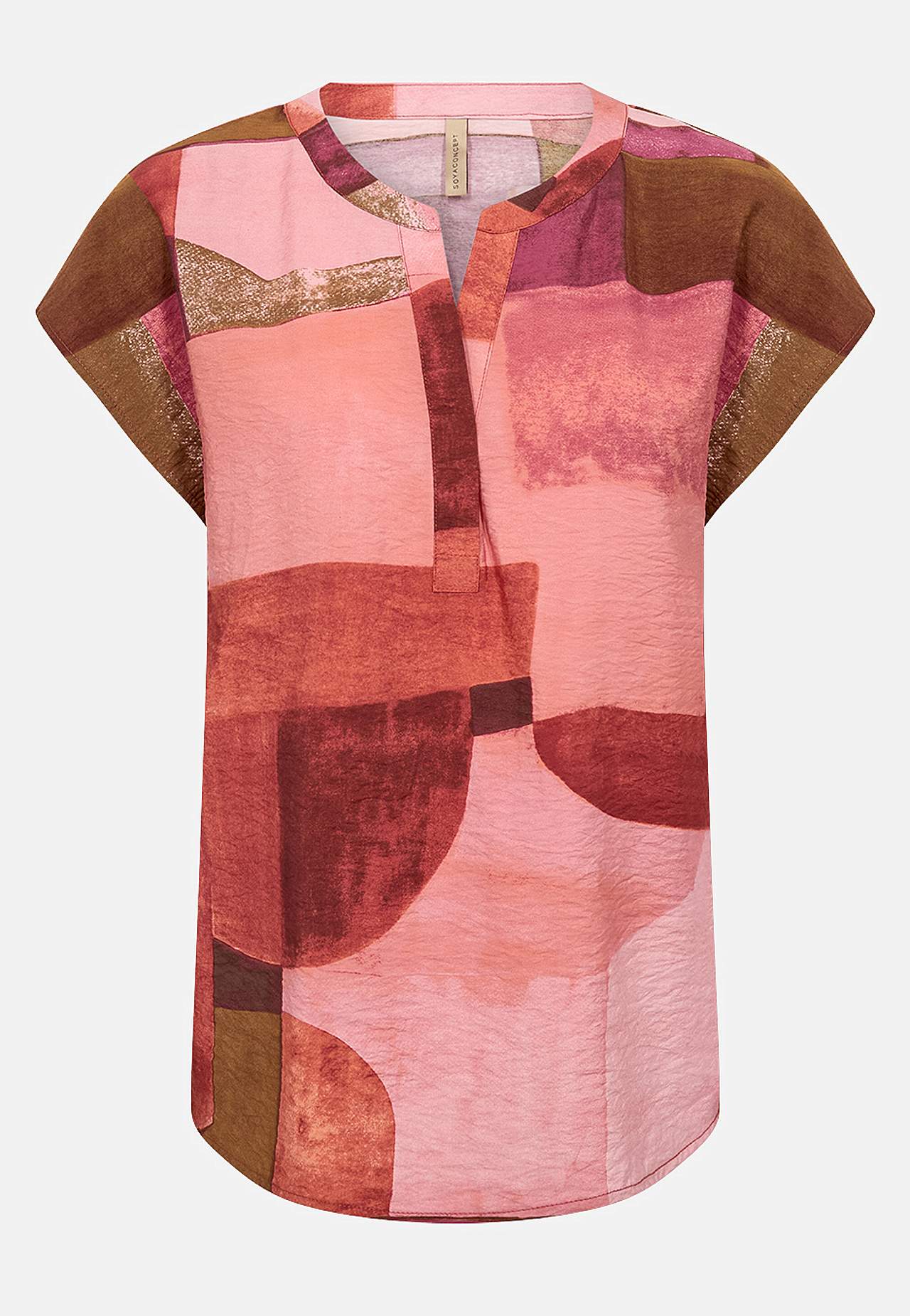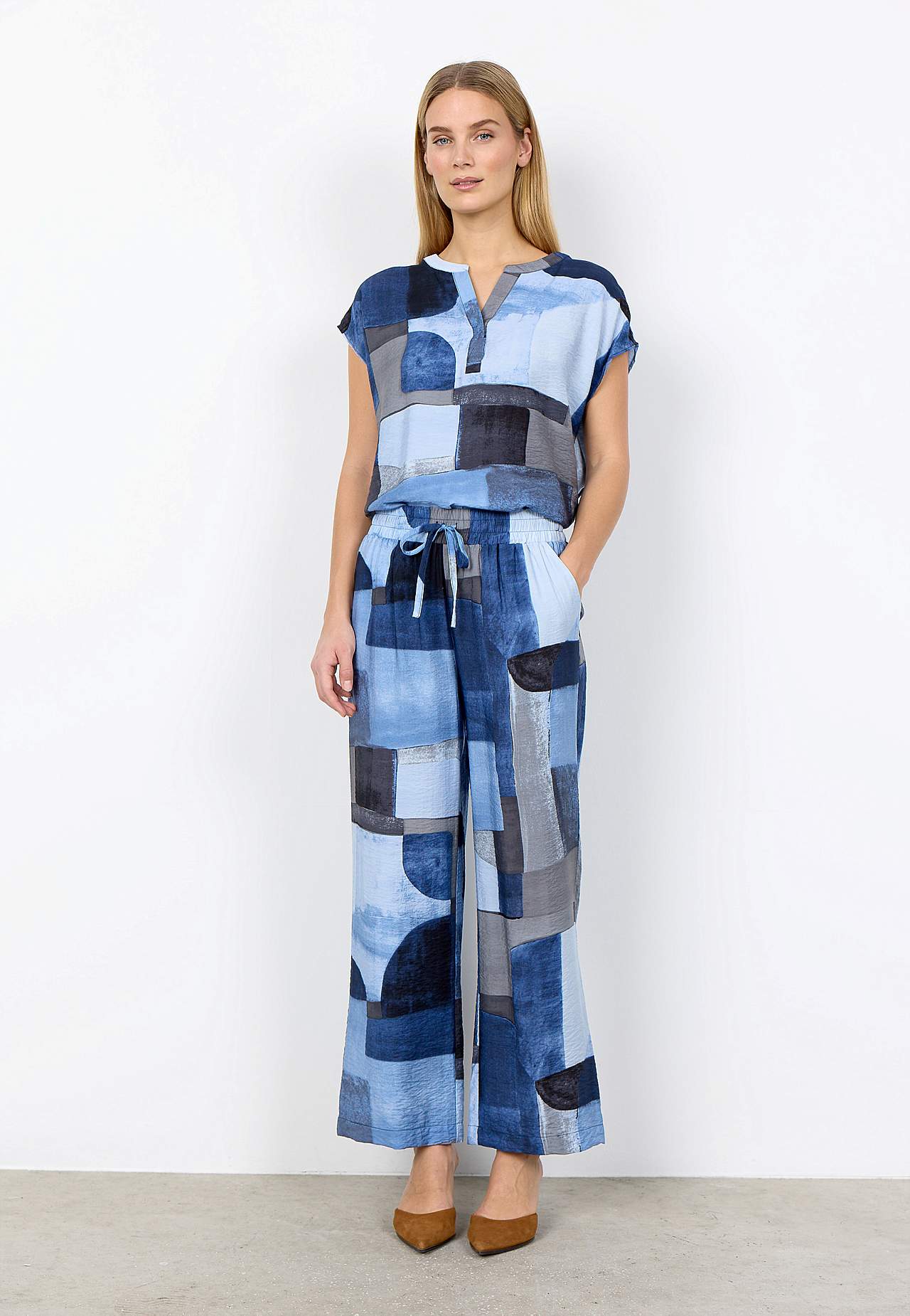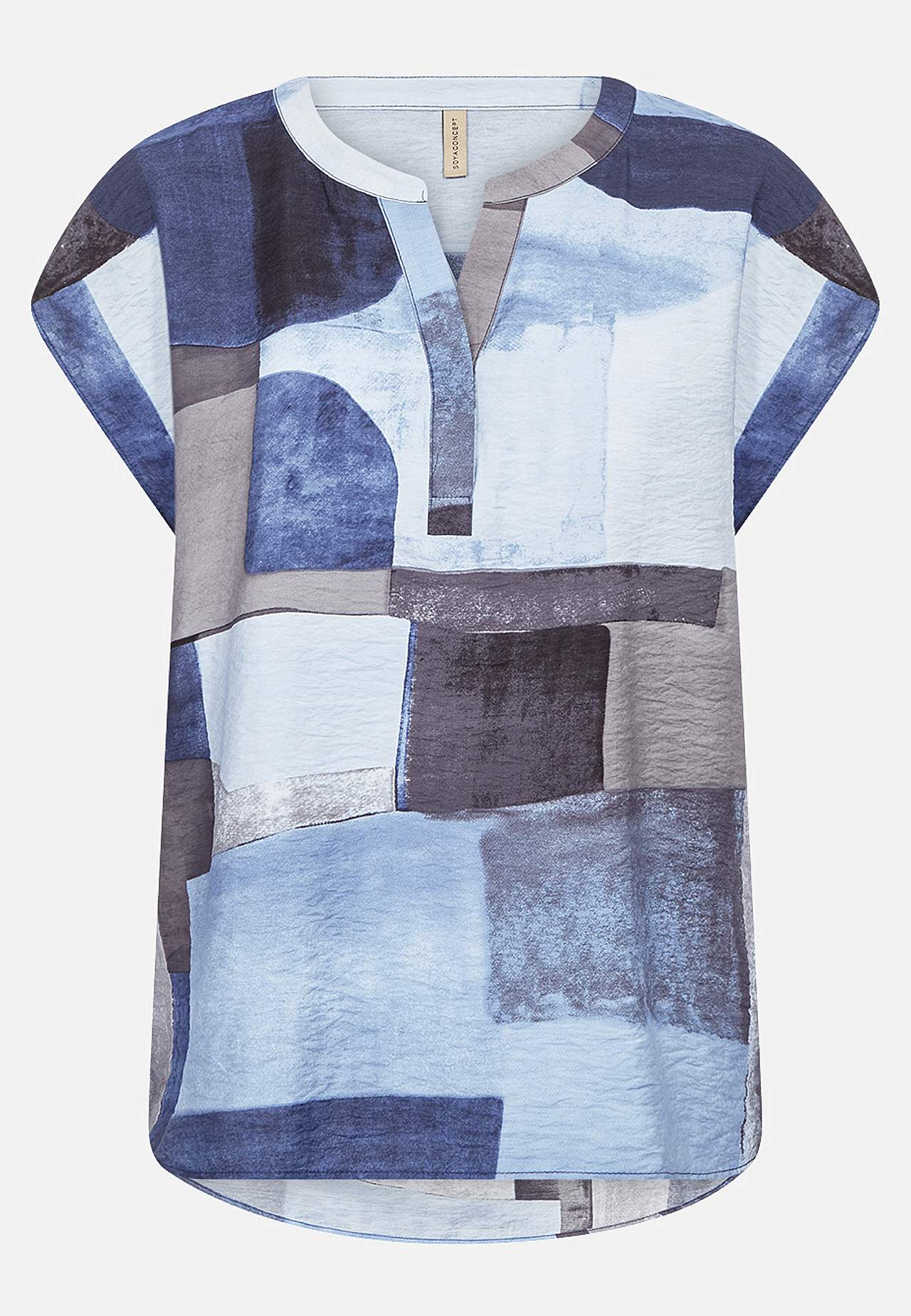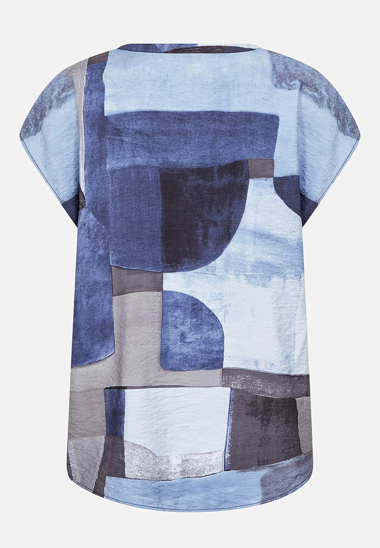 Mönstrad blus i sval, vävd viskos. Lätt krinklat material. Normal passform. V-ringning med knappslå med en dold knapp. Korta holkärmar. Lätt rundad nederkant. Längd från axeln ca 61 cm i storlek S (38).