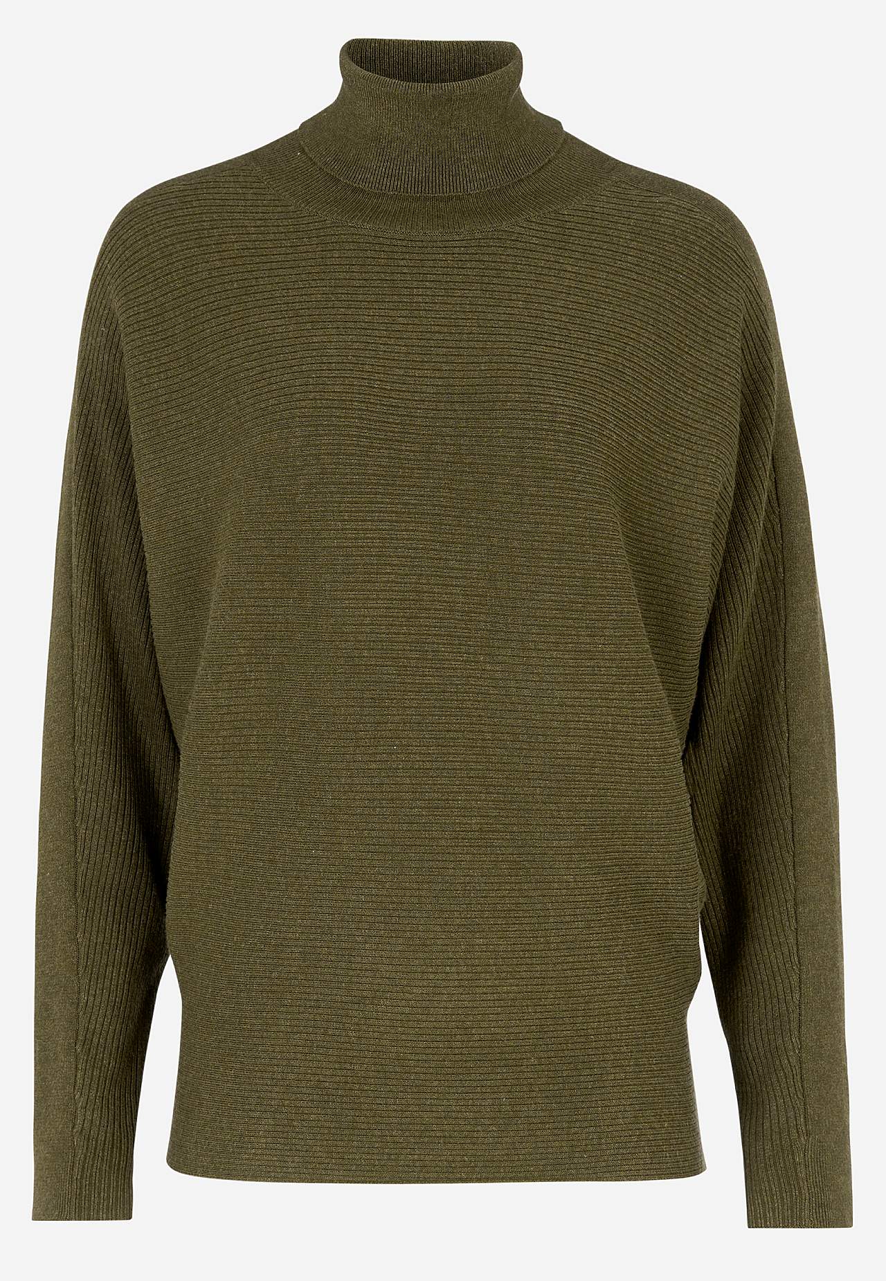 Tröja med horisontell ribbstickning. Normal passform. Mjukt material med lätt lyster. Vikbar polokrage. Mysig pingvinärm. Rak nederkant. Längd från axeln ca 63 cm i storlek S (38).