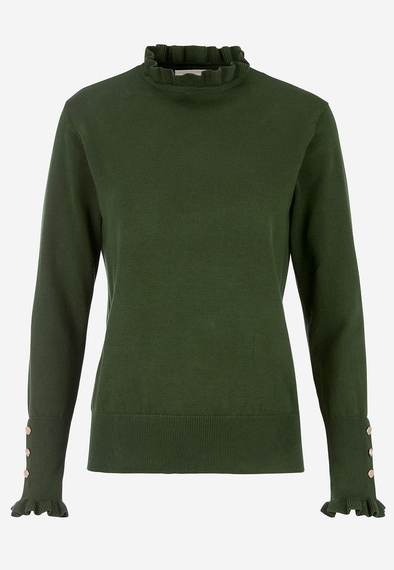 Långärmad tröja med nätt silhuett. Extra breda muddar med dekorativa knappar ger en elegant touch. Passar lika bra till vardags som till fest. Mjuk finstickad tröja med lätt lyster. Smal passform. Rundhalsad med vågig kant. Lång ärm med tre dekorativa knappar i ärmsluten och vågig kant. Ribbstickad nederkant. Längd från axe... Läs mer