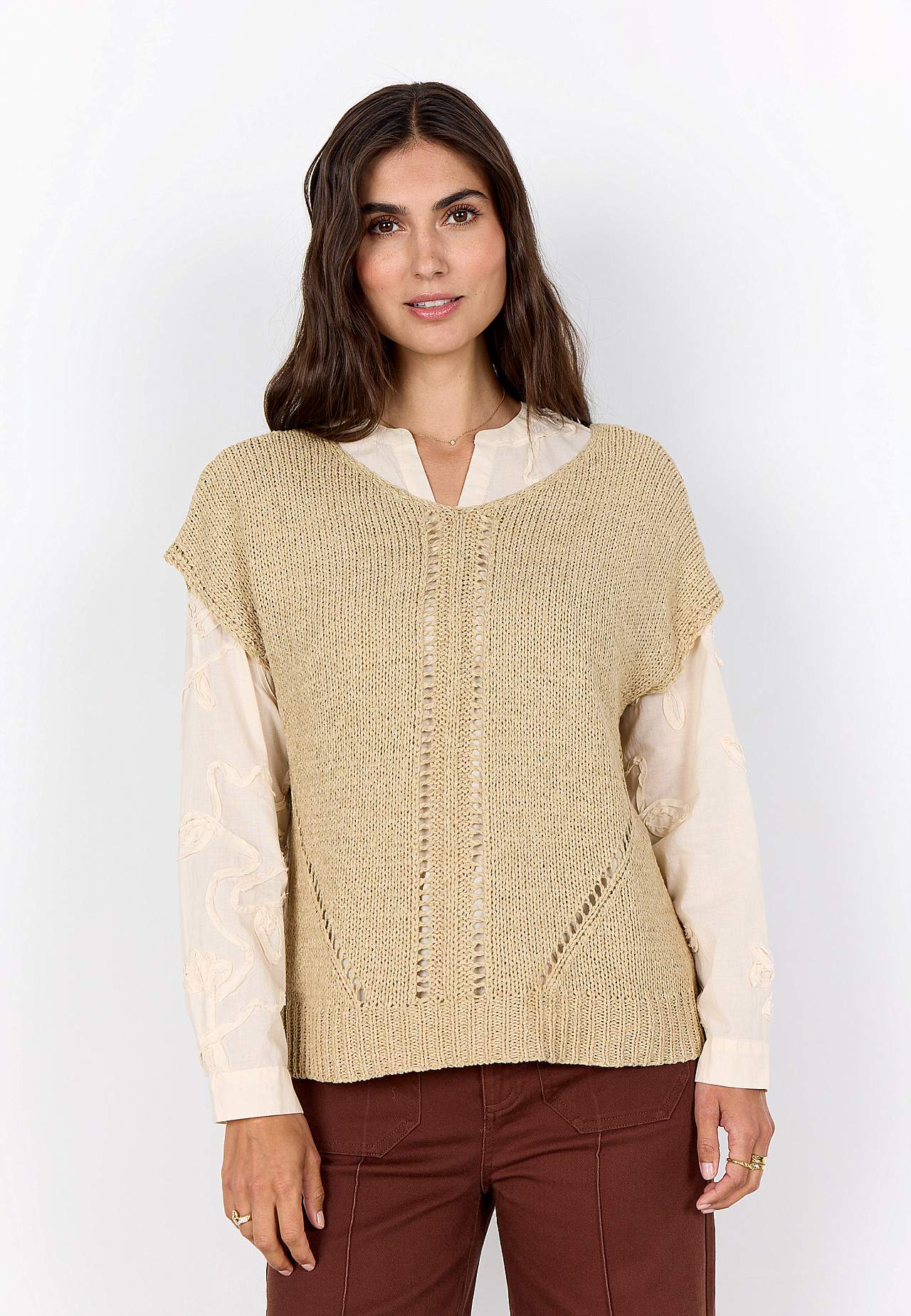 Stickad tröja med hålmönster