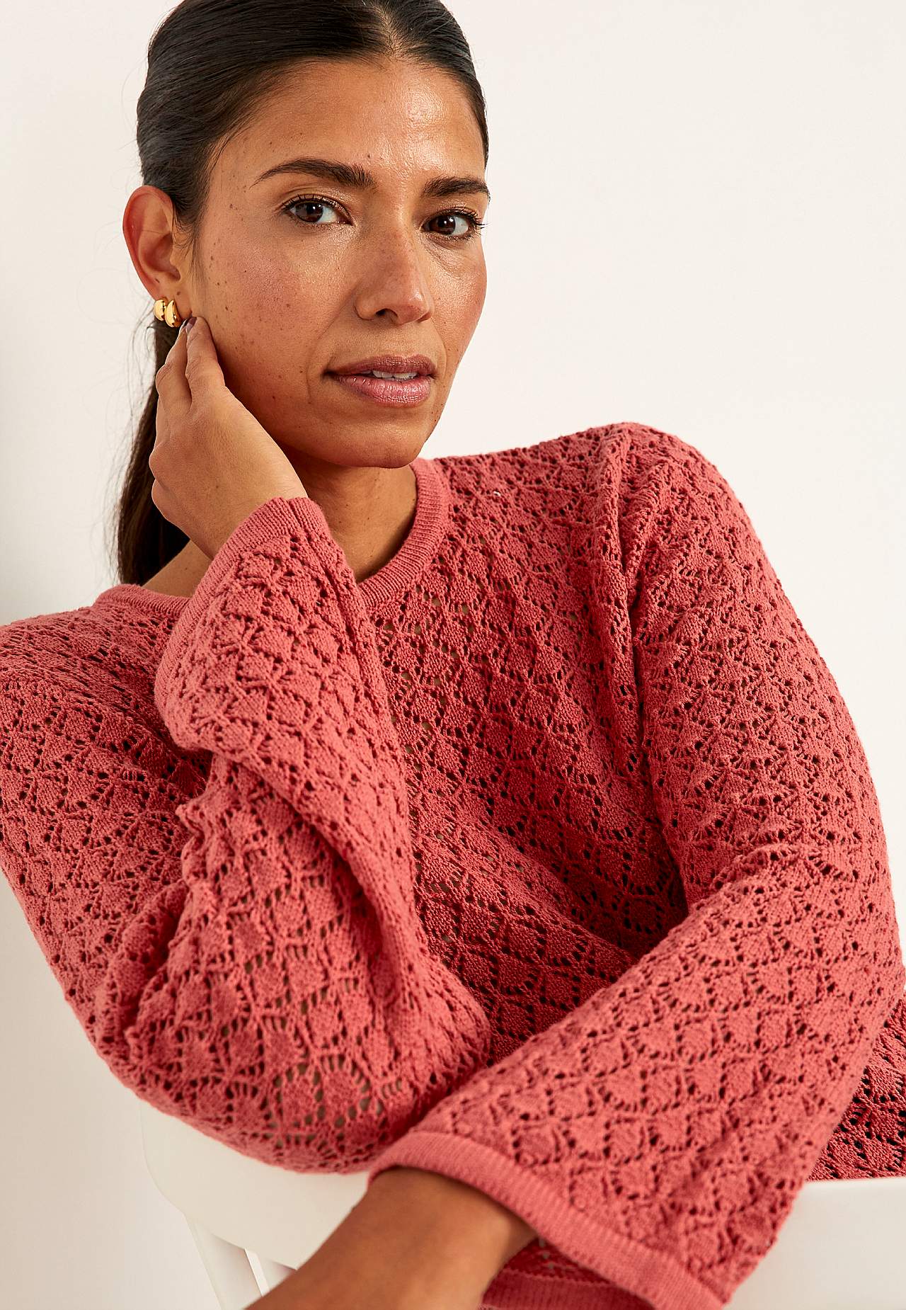 Stickad tröja med hålmönster