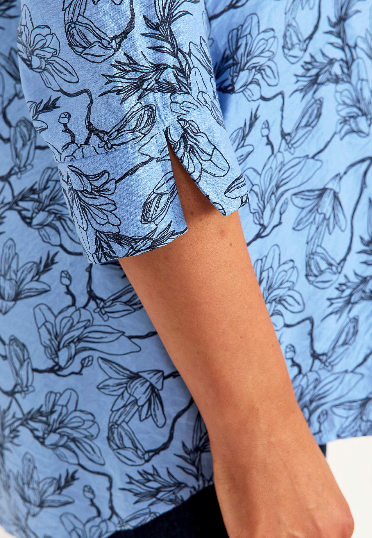 Tunika i viskos med lätt struktur och något blankare yta. Fint fall och sval känsla. Normal, något a-linjeformad passform. Lätt nedhasad axel. Längden följer storleken ca 79-86 cm från axeln.