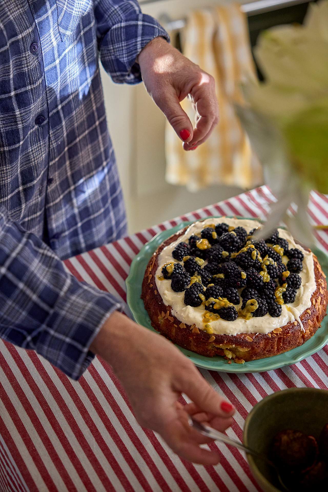 Duk med garnfärgade, smala ränder. Likadant mönster på fram och baksida. Fåll runt om. Finns i två storlekar.