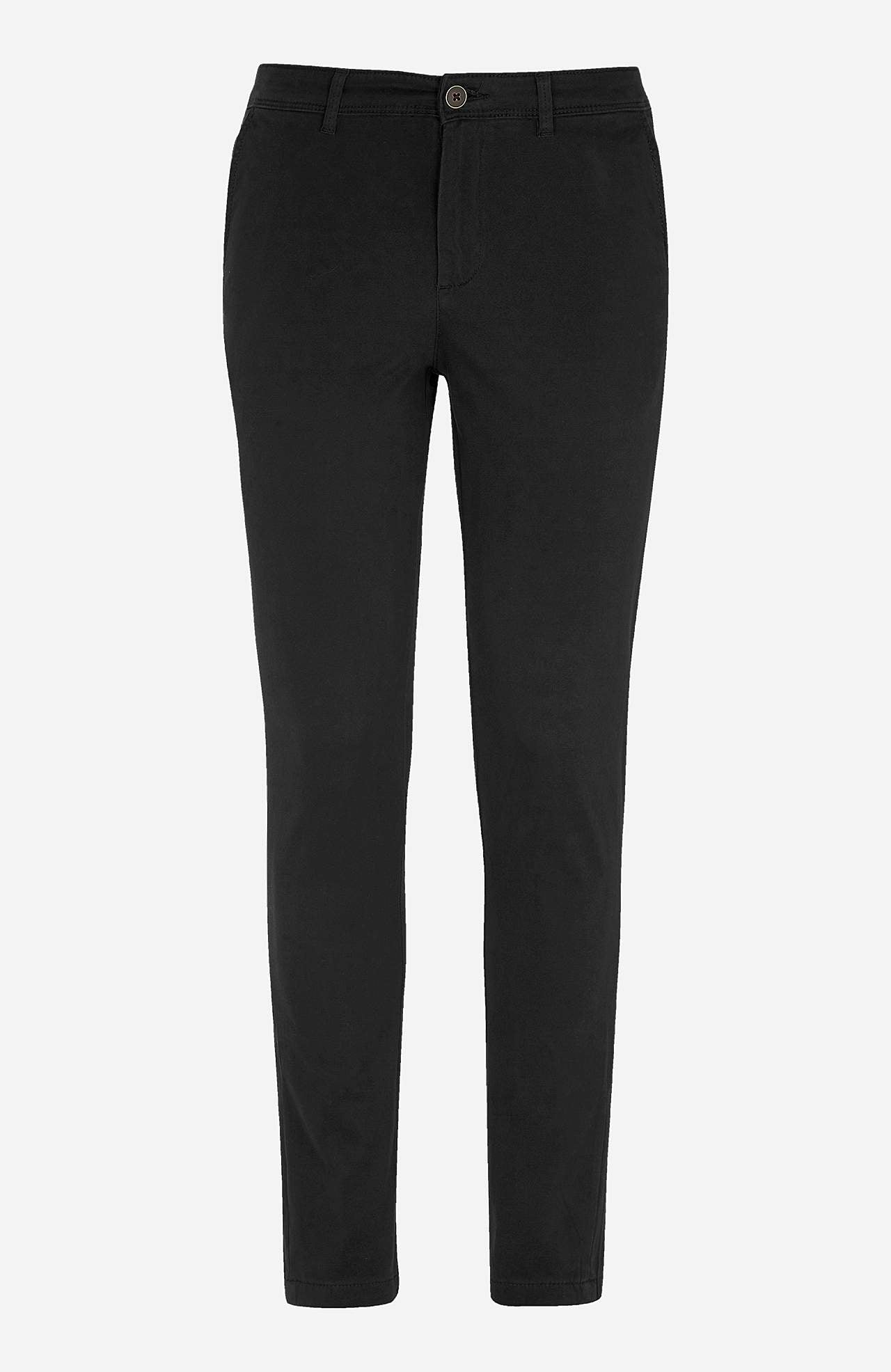 Chinos från Jack & Jones. Klassisk välsittande byxa med en smal, ganska tajt passform. Linningen har hällor och knapp. Dragkedjegylf. Sidfickor och bakfickor. Grenhöjd ca 26,5 cm. Längd innersöm ca 79 cm i storlek 30/32. Byxan säljs i tumstorlekar.