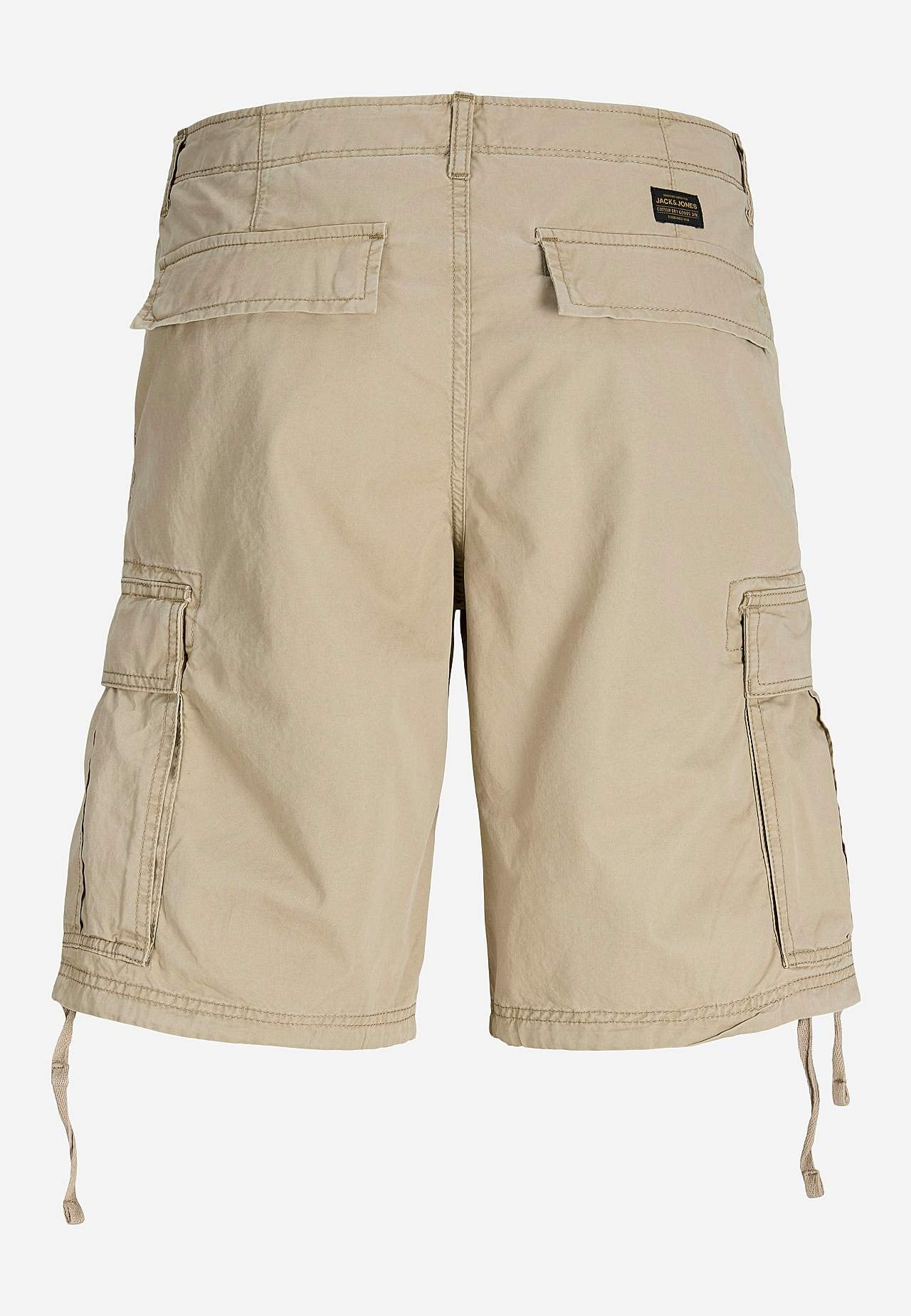 Vävda shorts i bomullskvalitet. Normal midja med dragkedjegylf och hällor. Sidofickor. Benfickor med lock. Infällda bakfickor med lock och tryckknappsstängning. Knytbar dragsko nertill. Innerbenslängd ca 28 cm i storlek M.