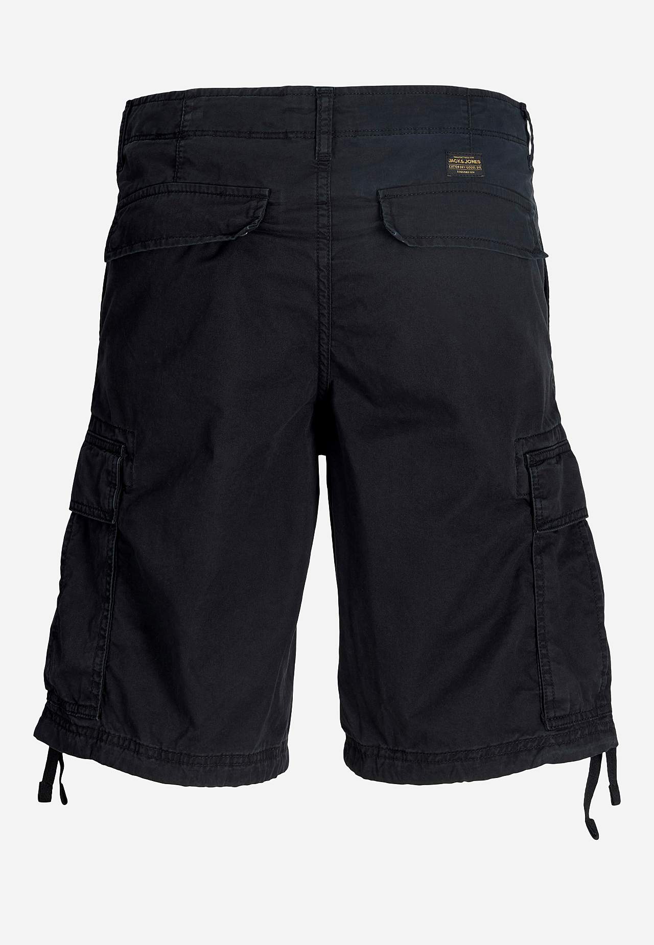 Vävda shorts i bomullskvalitet. Normal midja med dragkedjegylf och hällor. Sidofickor. Benfickor med lock. Infällda bakfickor med lock och tryckknappsstängning. Knytbar dragsko nertill. Innerbenslängd ca 28 cm i storlek 46.
