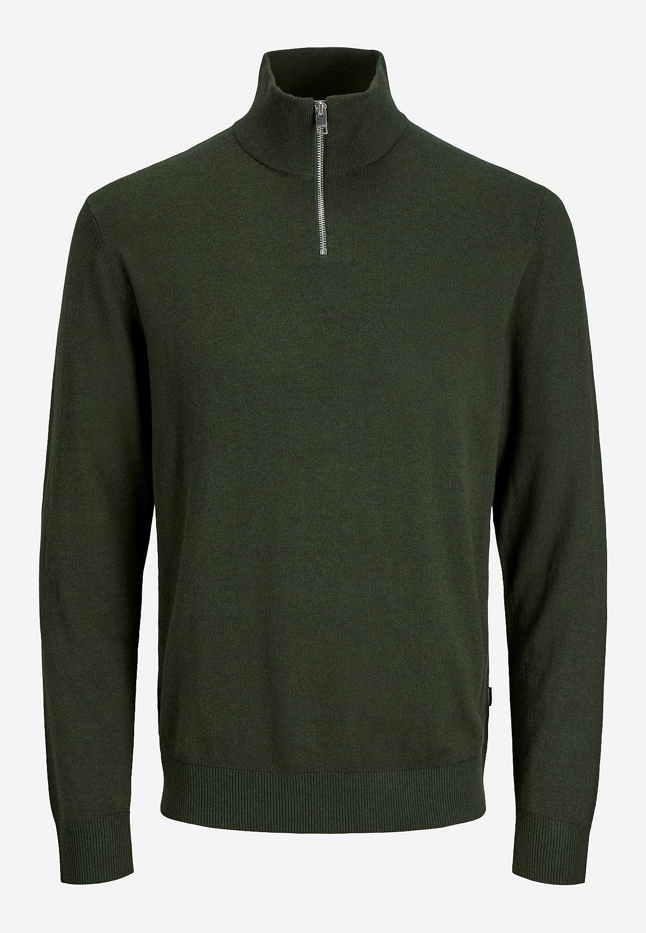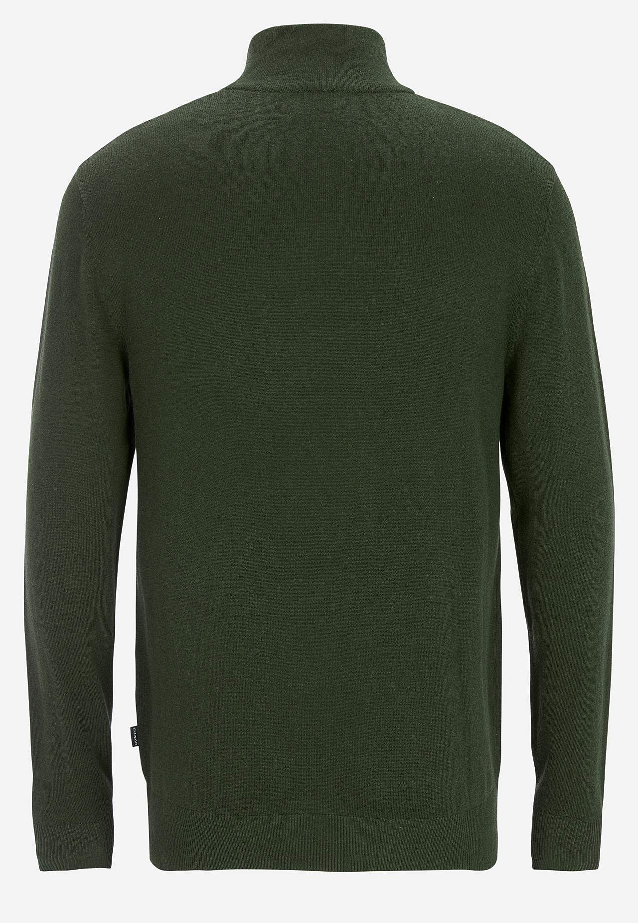 Finstickad långärmad tröja. Normal passform. Krage med dragkedja. Långa ärmar med ribbstickade muddar i ärmsluten. Rak nederkant med ribbstickad mudd. Längd från axeln ca 75 cm i storlek S.