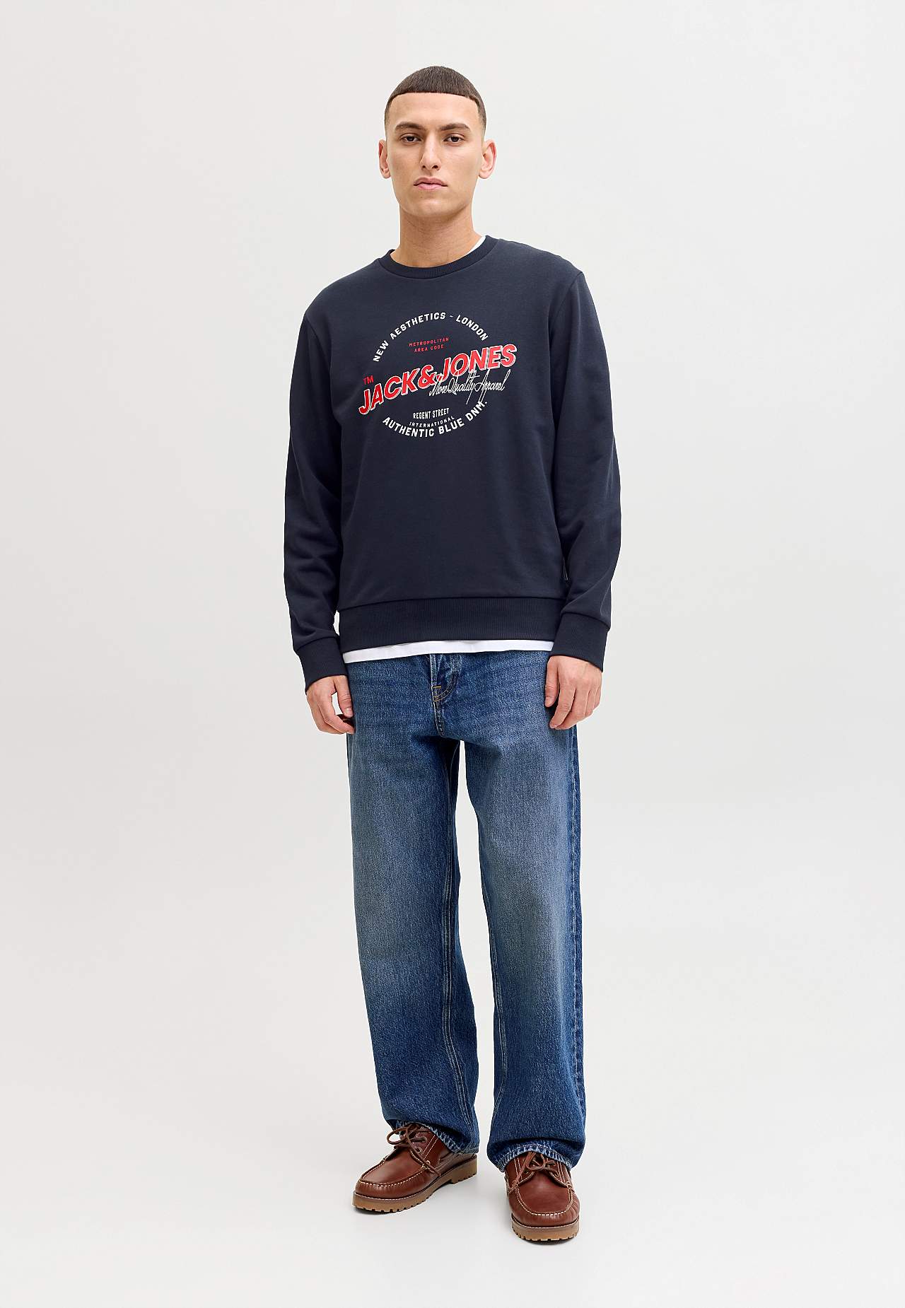 Sweatshirt med mjuk, borstad insida. Ledig passform. Rundad hals med ribbmudd. Tryck på bröstet. Långa ärmar med ribbmudd i ärmsluten. Ribbmudd i nederkanten. Längd från axeln ca 66 cm i storlek M.