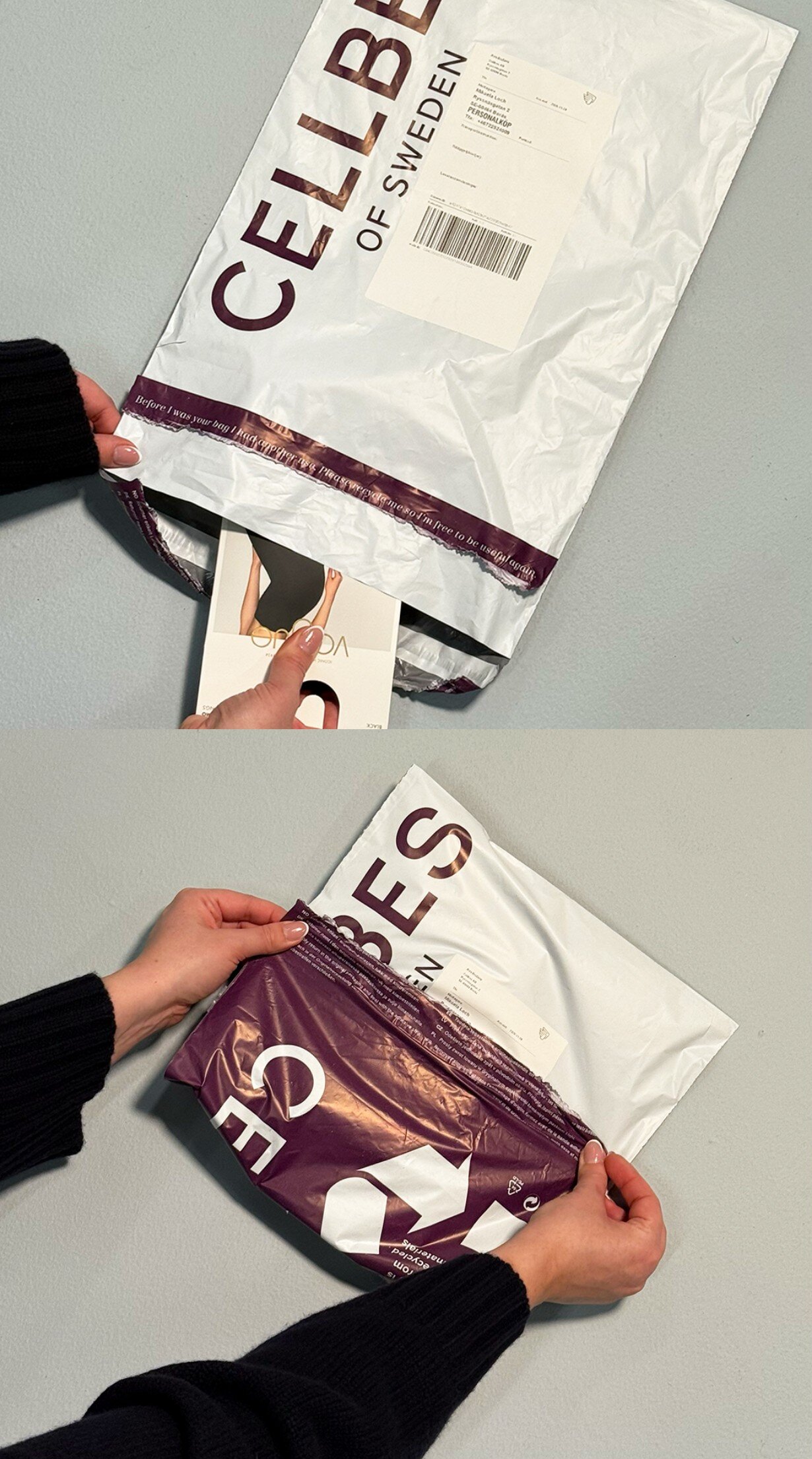 Packa ner det du ska returnera, gärna i originalförpackningen och påsen som produkten kom i. Produkten ska vara i nyskick med lapparna kvar. Förslut med klisterremsan på påsen.