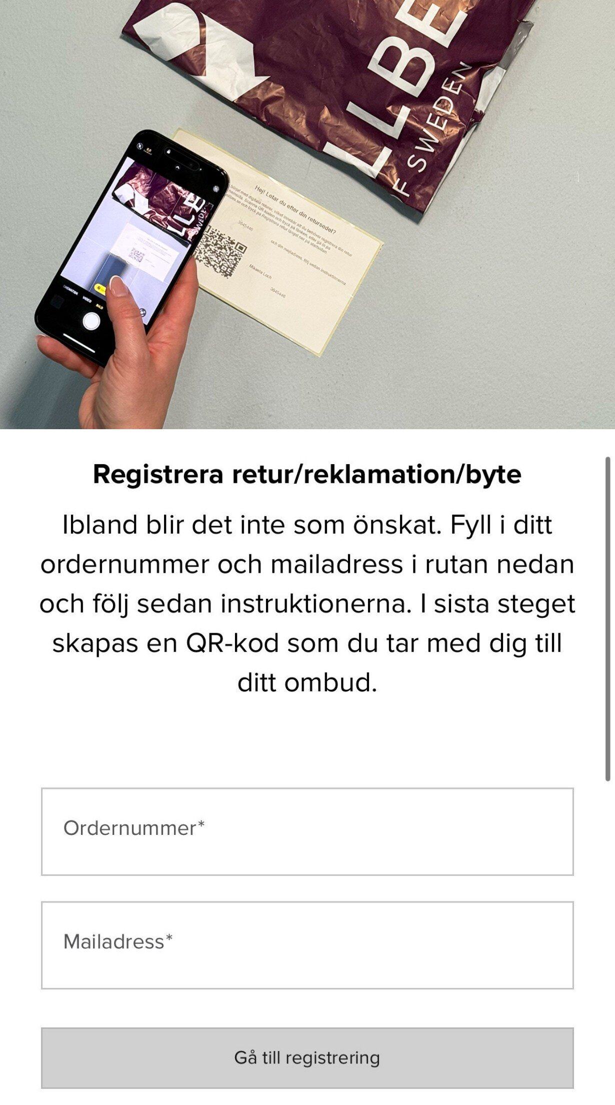 Här kan du registrera din retur (länk öppnas i ny flik).