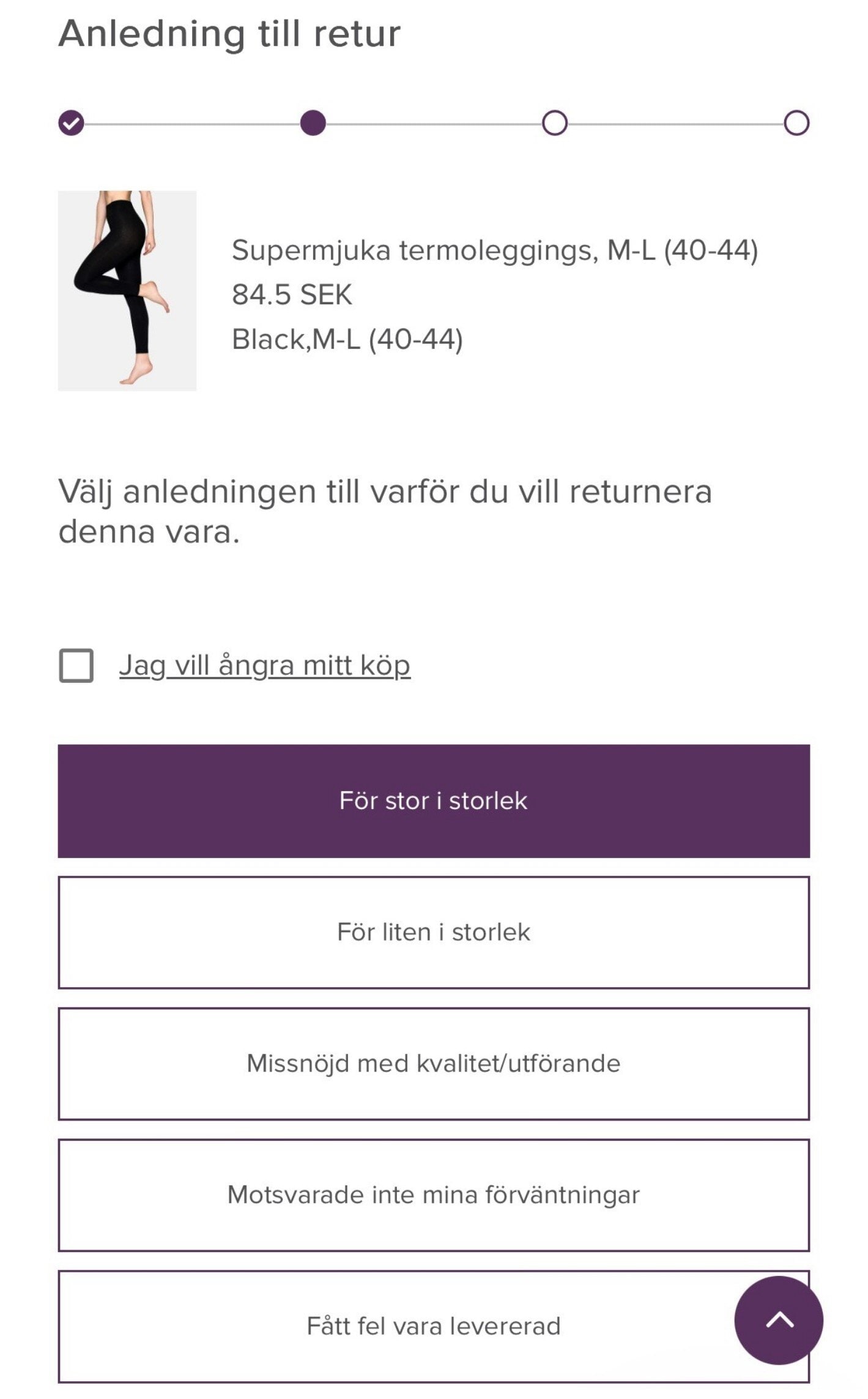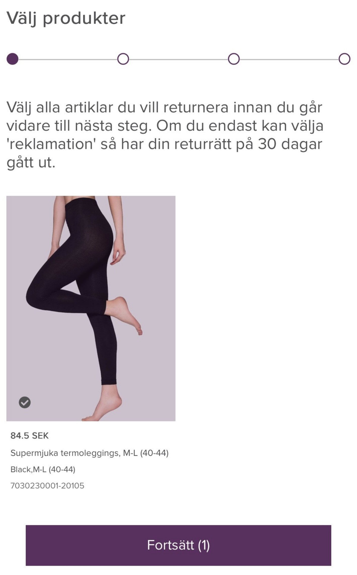 Välj vilka produkter du ska returnera och tryck på Fortsätt.