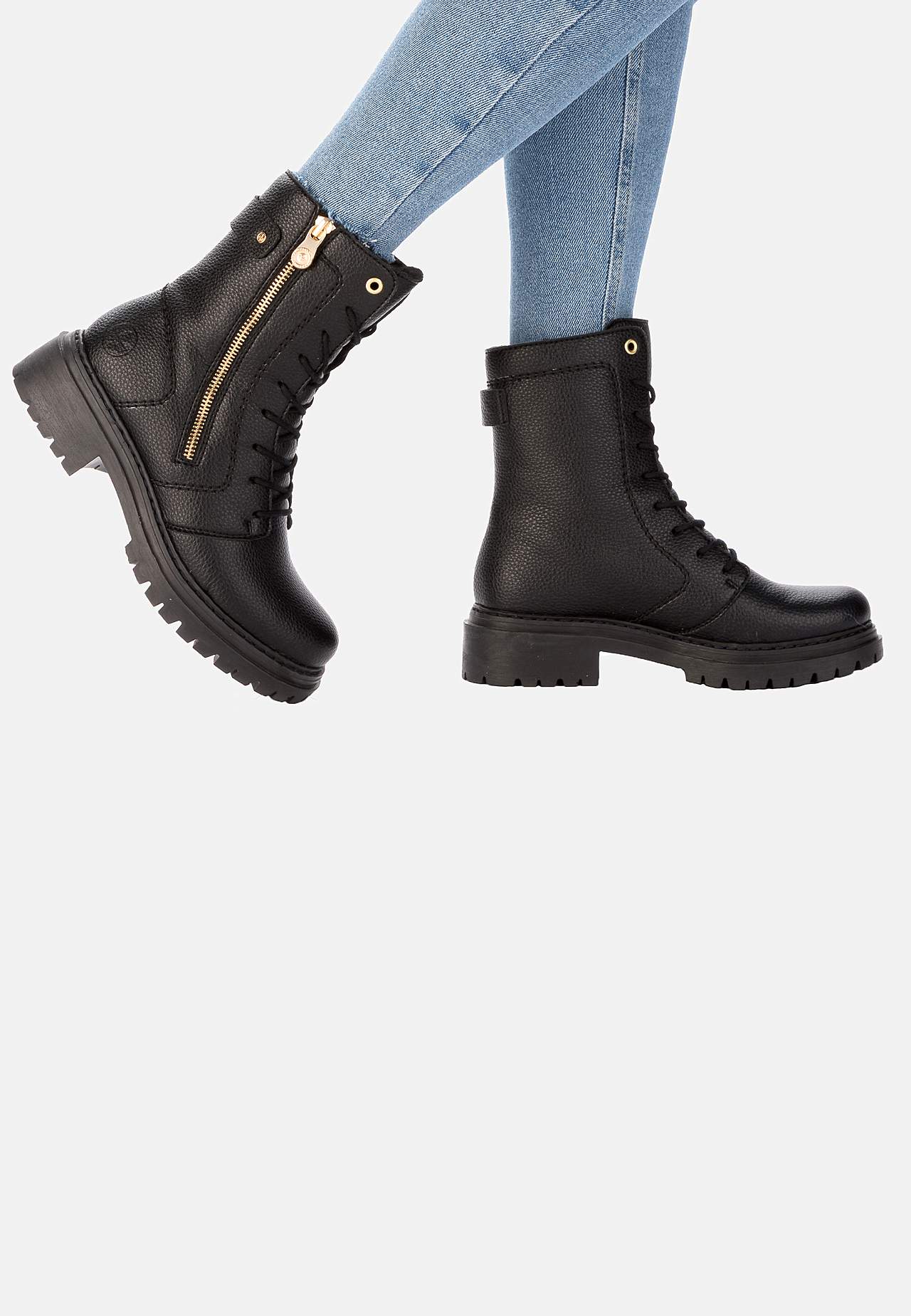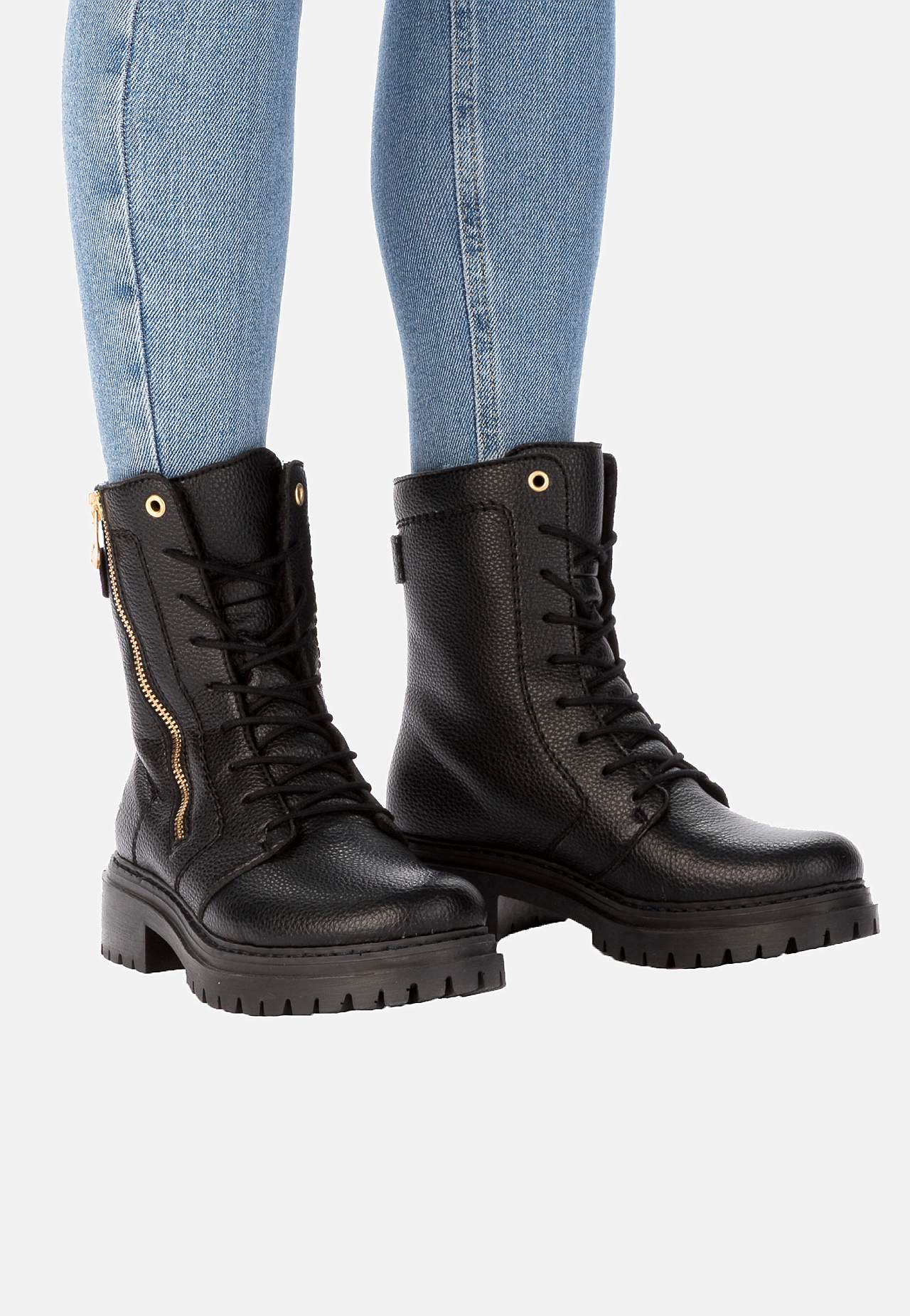 Varmfodrad känga. Guldfärgad dragkedja på fotens utsida för enkel av-/påtagning. Reglerbar skaftvidd med snörning. Värmande innerfoder i teddyfleece. Filtad, mjuk innersula. Robust yttersula med bra grepp. Ovansida i syntet. Insida i textil. Innersula i textil. Yttersula i syntet.