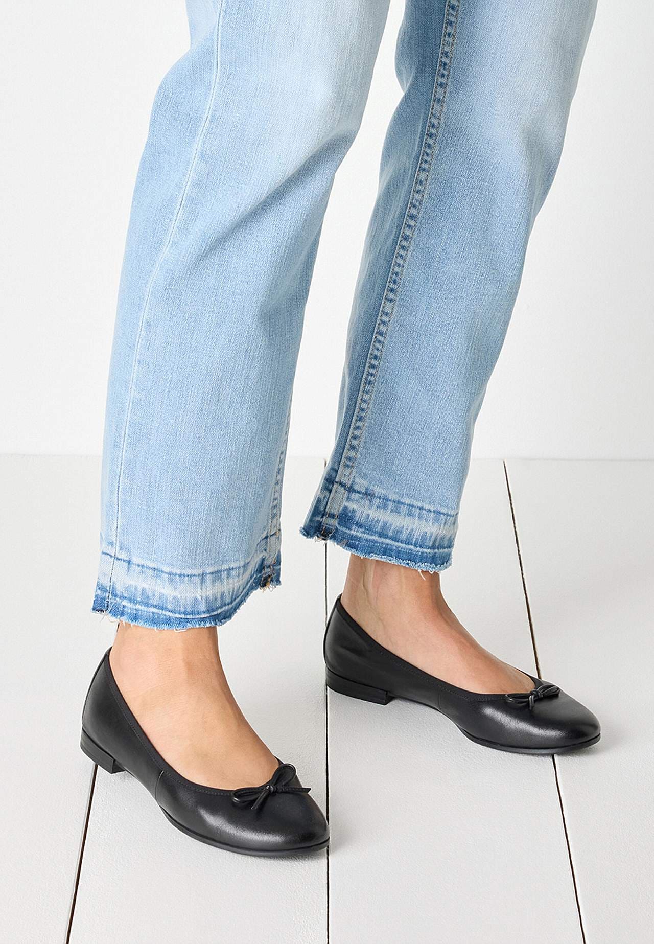 Skinnballerina med låg klack. Liten rosettdetalj på ovansidan. Mjuk, lätt vadderad, komfortabel innersula. Touch-It:. Ovansida i skinn. Insida i textil. Innersula i skinn. Yttersula i syntet. Touch-It funktionen gör så att den mjuka fotbädden konstant svarar på kroppens egen vikt och följer fotens form.