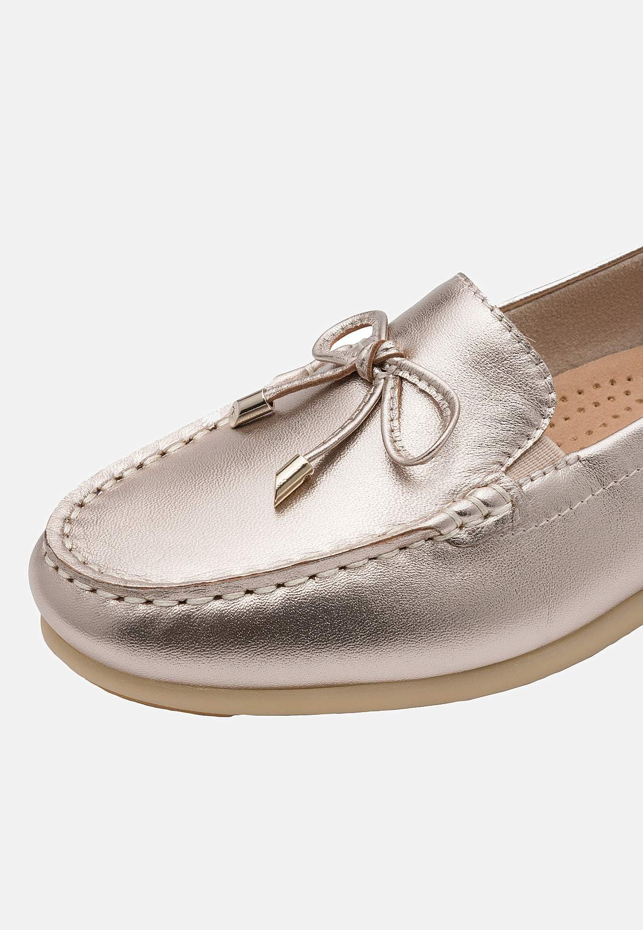 Loafer i mjukt skinn med prydnadsrosett. Slip on-modell med resårkilar som gör den extra lätt att ta på och av. Sportig modell. Dekorativ, grov söm framtill. Hälgrepp med vaddering. Mjuk insida. Uttagbar, mjuk innersula i skinn. Yttersula i gummi perfekt för ett bättre grepp. Ovansida i skinn. Insida i skinn och syntet. Inn... Läs mer