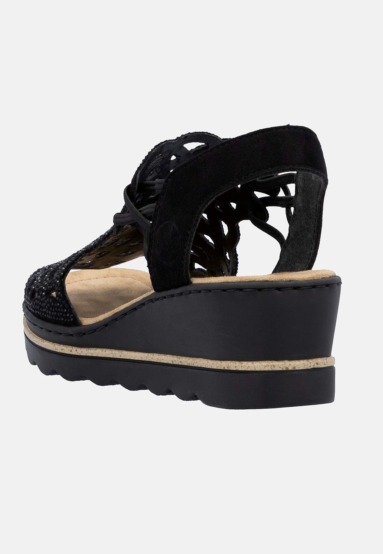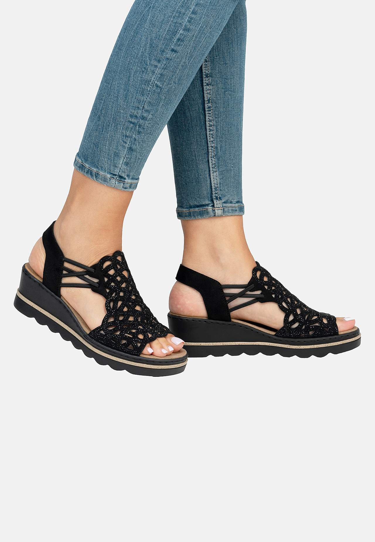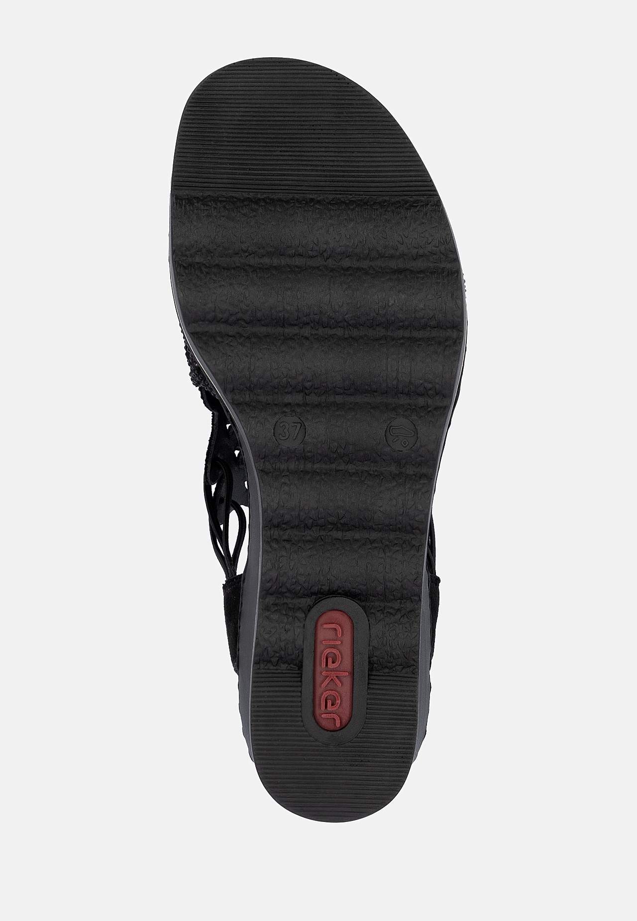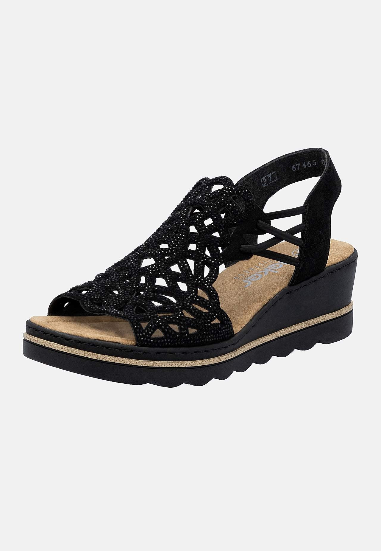 Sandalett med vackra strassdetaljer. Smala, elastiska band som gör den extra lätt att ta på och av. Rundad tå. Logo-detalj på utsidan. Bekväm innersula. Strukturerad yttersula med bra grepp. Passar lika bra till vardags som till fest. Rieker Antistress: Se nedan. Ovansida i textil. Insida i syntet och textil. Innersula i sy... Läs mer