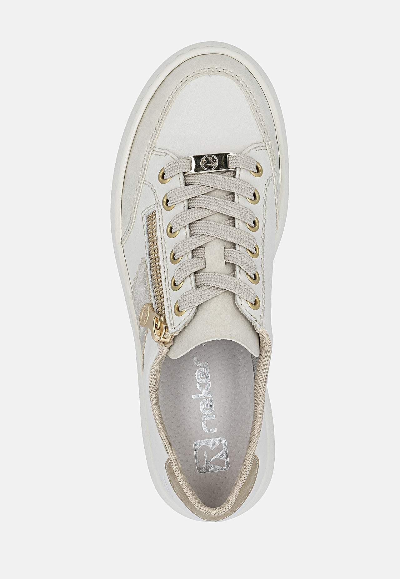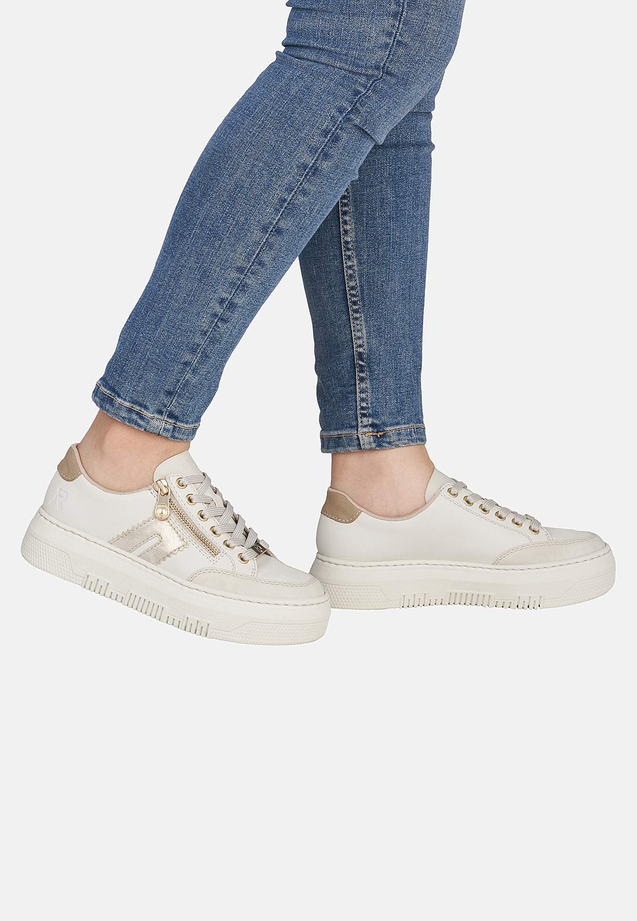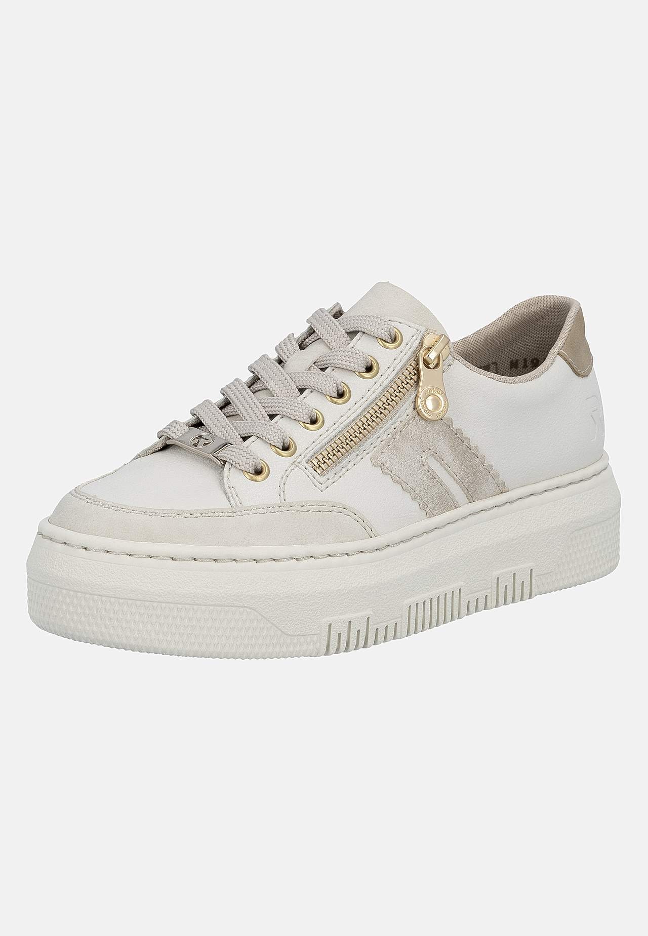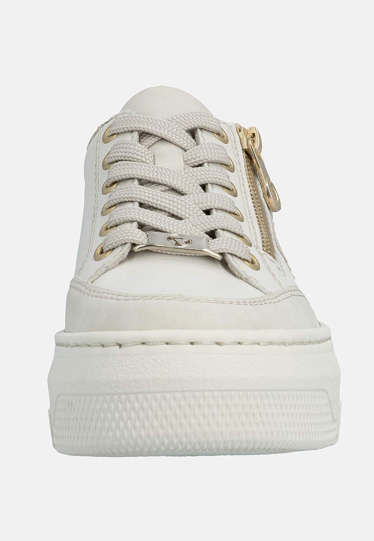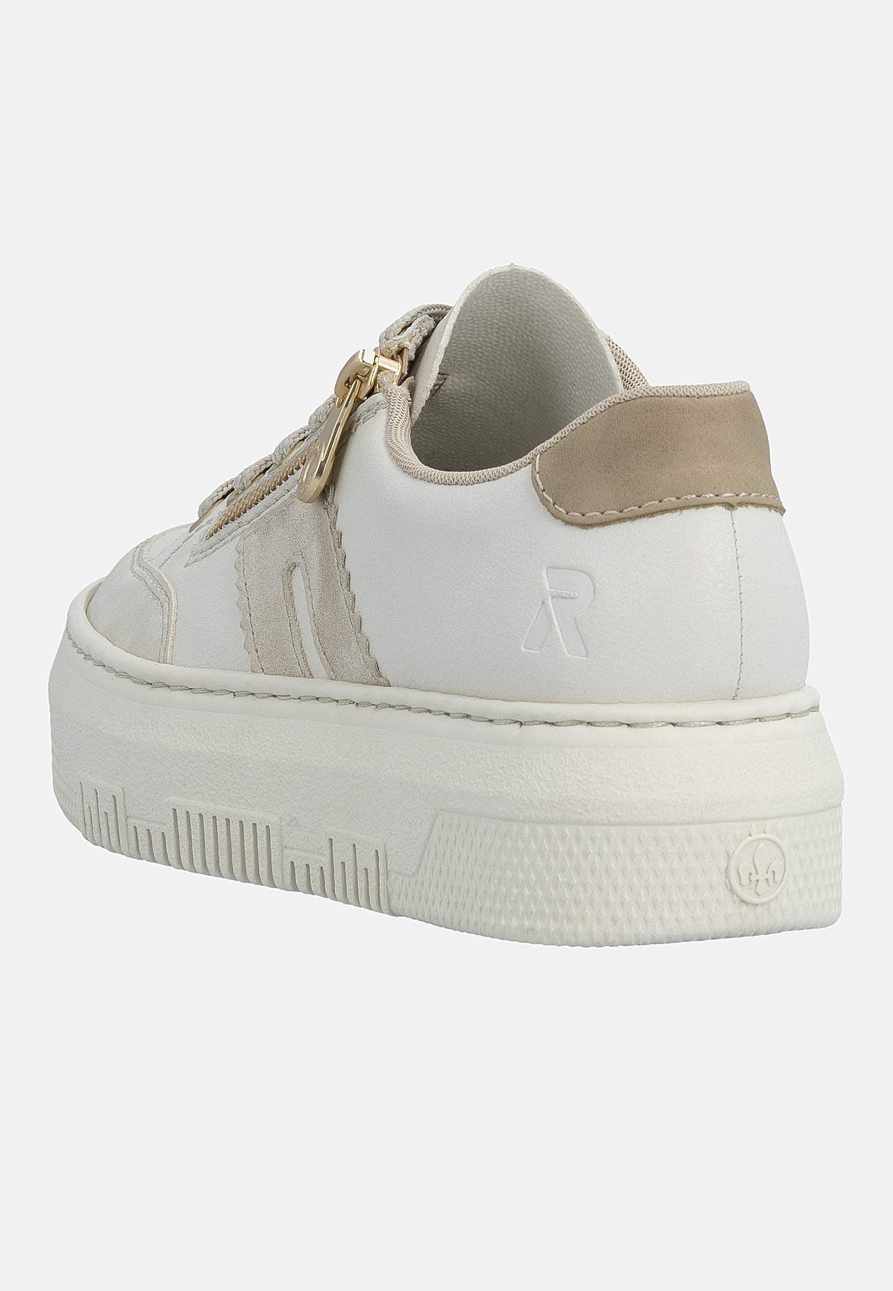 Lätt sneaker i mjukt skinn med snörning och lite högre sula. Dragkedja på fotens utsida för enkel av-/påtagning. Dekorativ detalj baktill och på sidan. Stansad logga på fotens utsida. Extra mjuk, bekväm innersula. Gummisula med bra grepp. Ovansida i skinn och syntet. Insida i textil. Innersula i skinn. Yttersula i syntet.