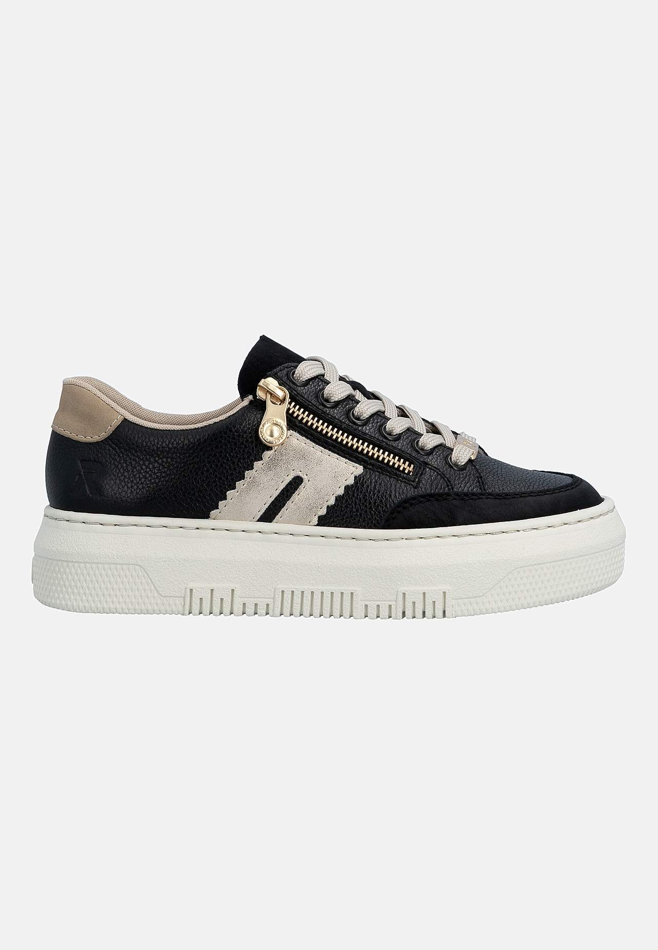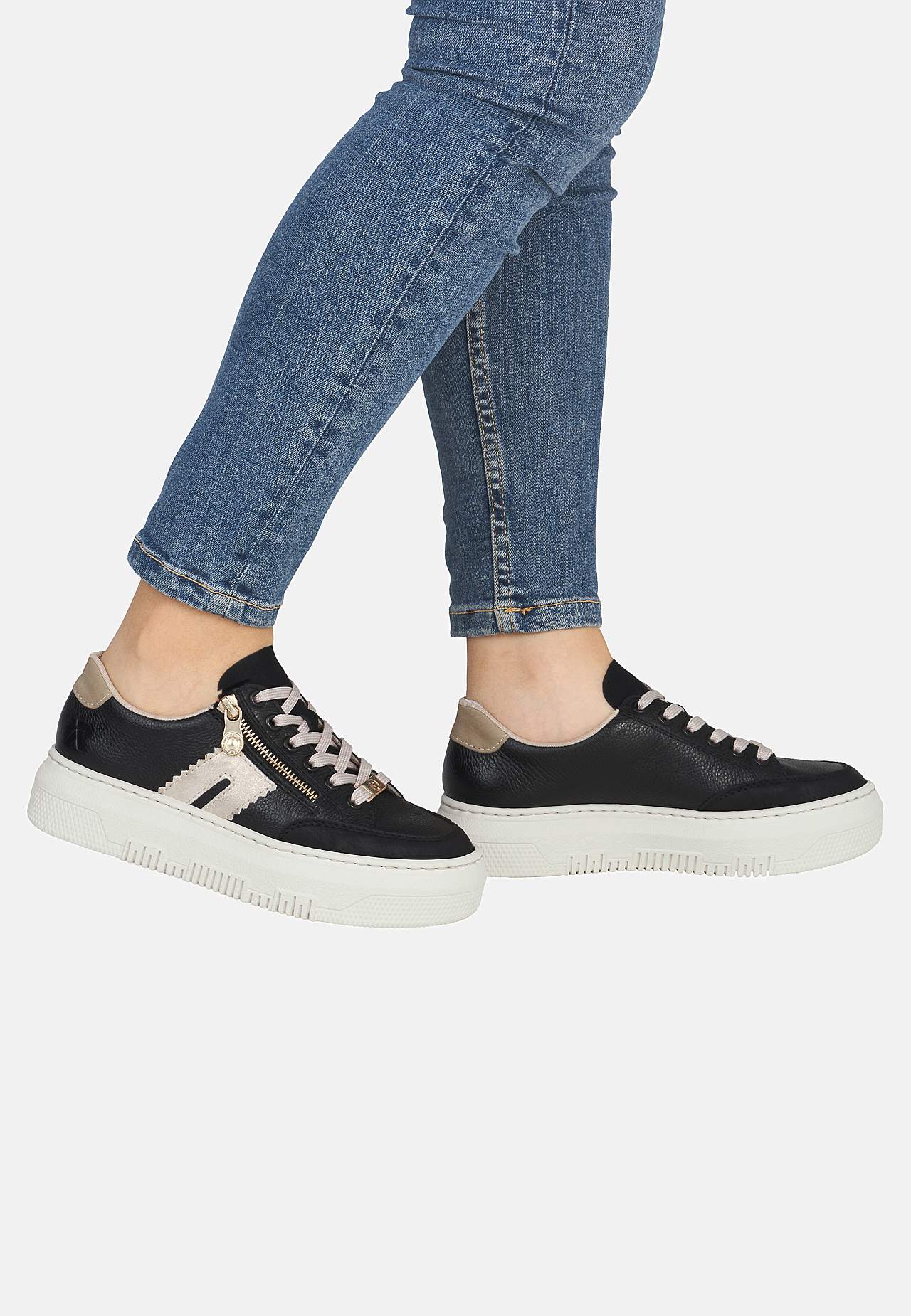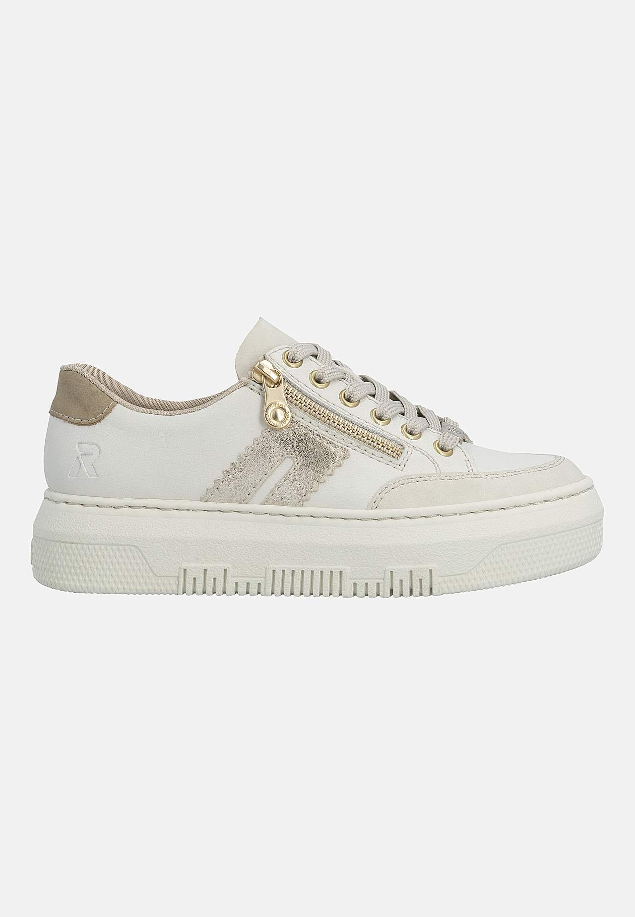 Lätt sneaker i mjukt skinn med snörning och lite högre sula. Dragkedja på fotens utsida för enkel av-/påtagning. Dekorativ detalj baktill och på sidan. Stansad logga på fotens utsida. Extra mjuk, bekväm innersula. Gummisula med bra grepp. Ovansida i skinn och syntet. Insida i textil. Innersula i skinn. Yttersula i syntet.