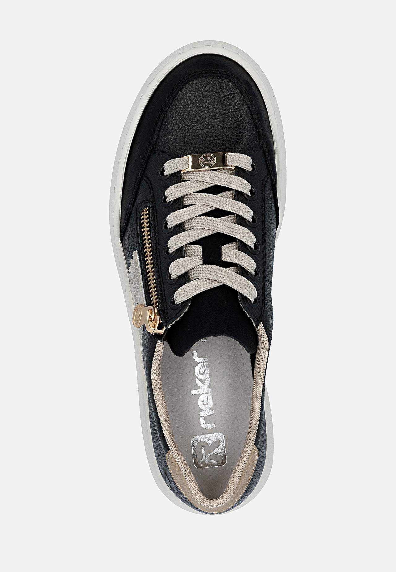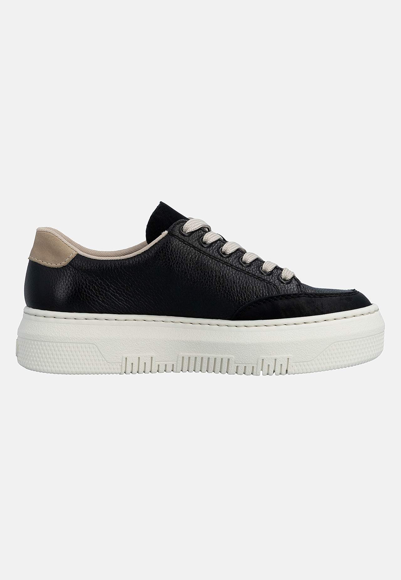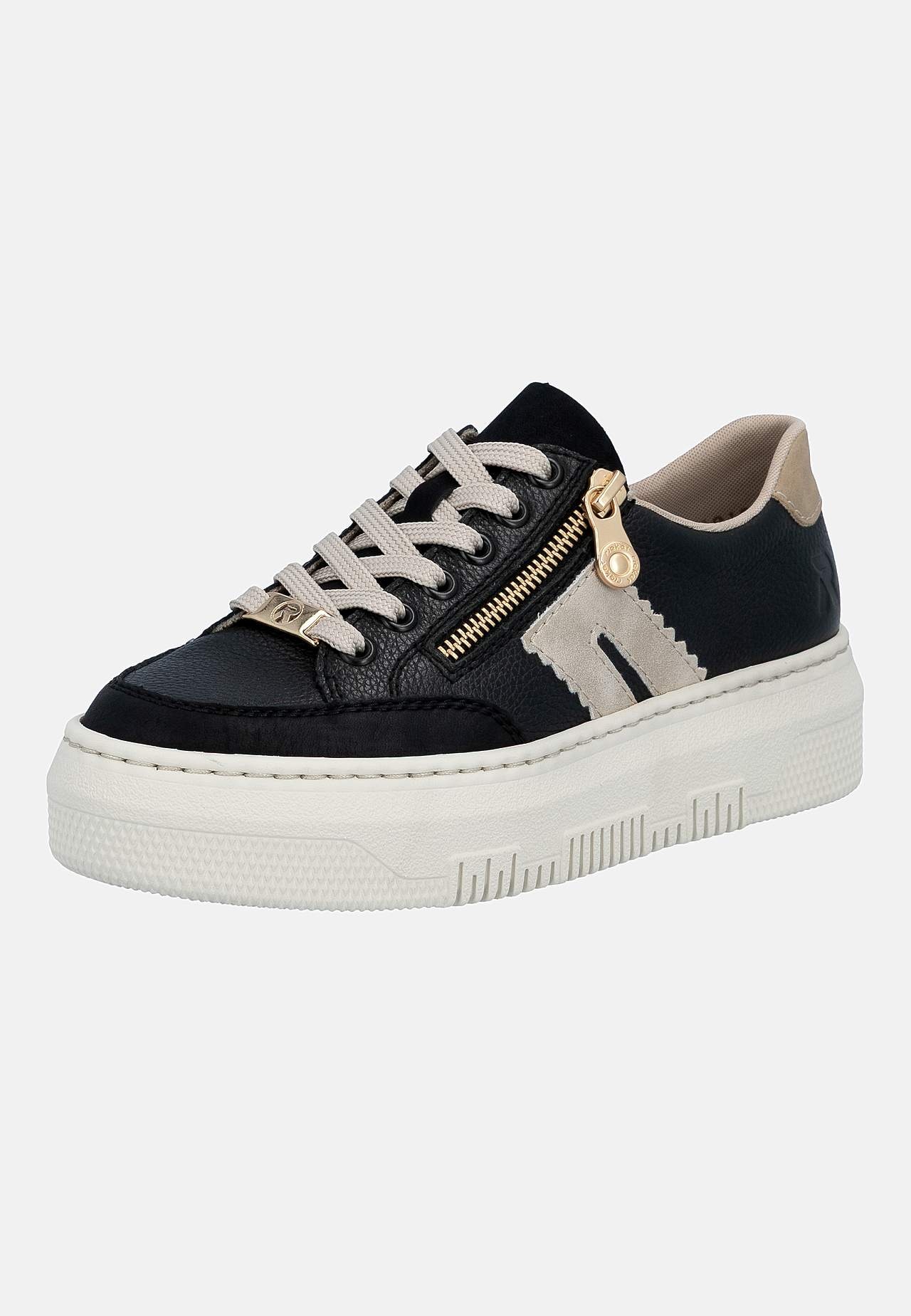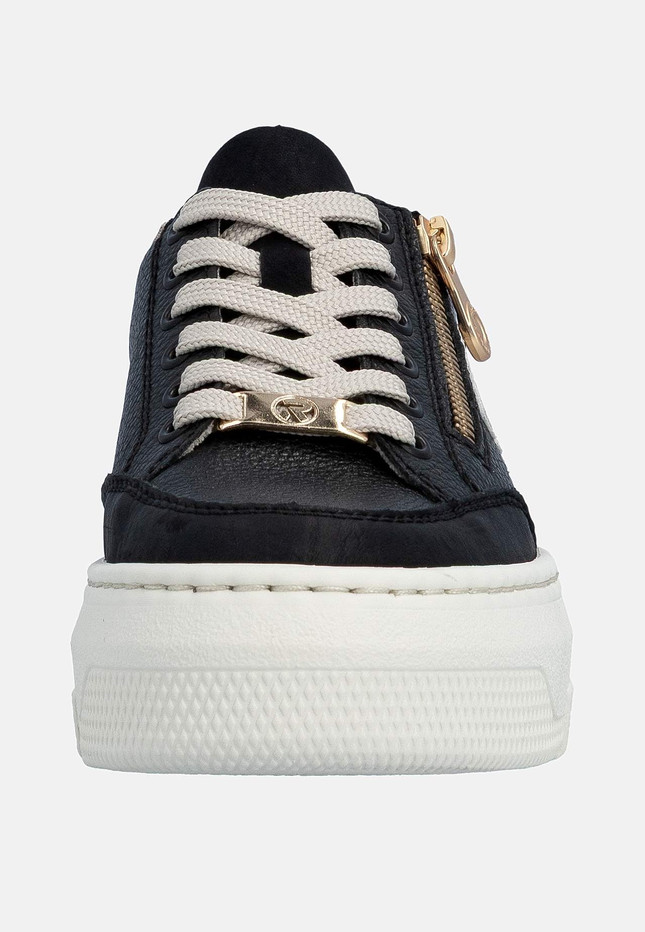 Lätt sneaker i mjukt skinn med snörning och lite högre sula. Dragkedja på fotens utsida för enkel av-/påtagning. Dekorativ detalj baktill och på sidan. Stansad logga på fotens utsida. Extra mjuk, bekväm innersula. Gummisula med bra grepp. Ovansida i skinn och syntet. Insida i textil. Innersula i skinn. Yttersula i syntet.