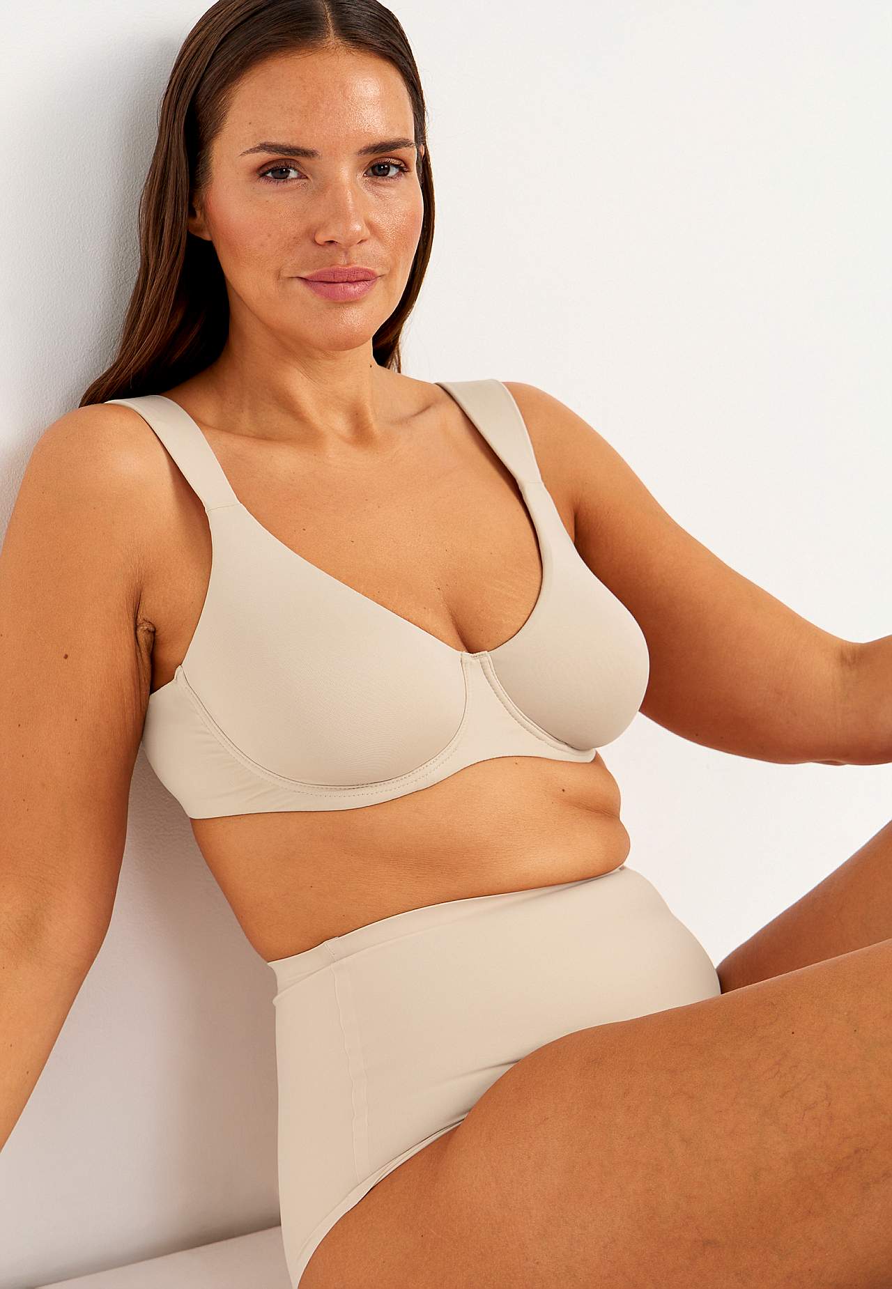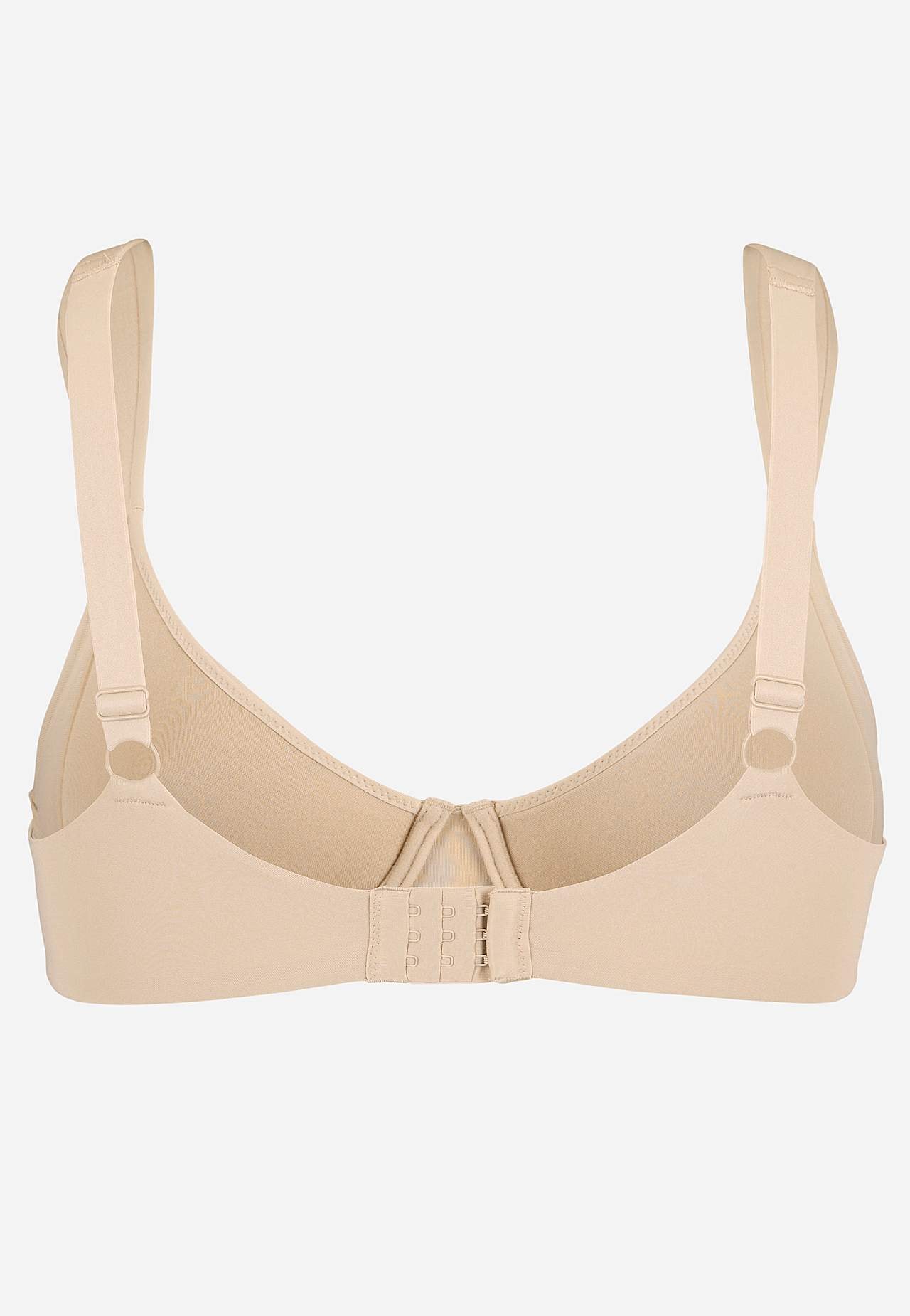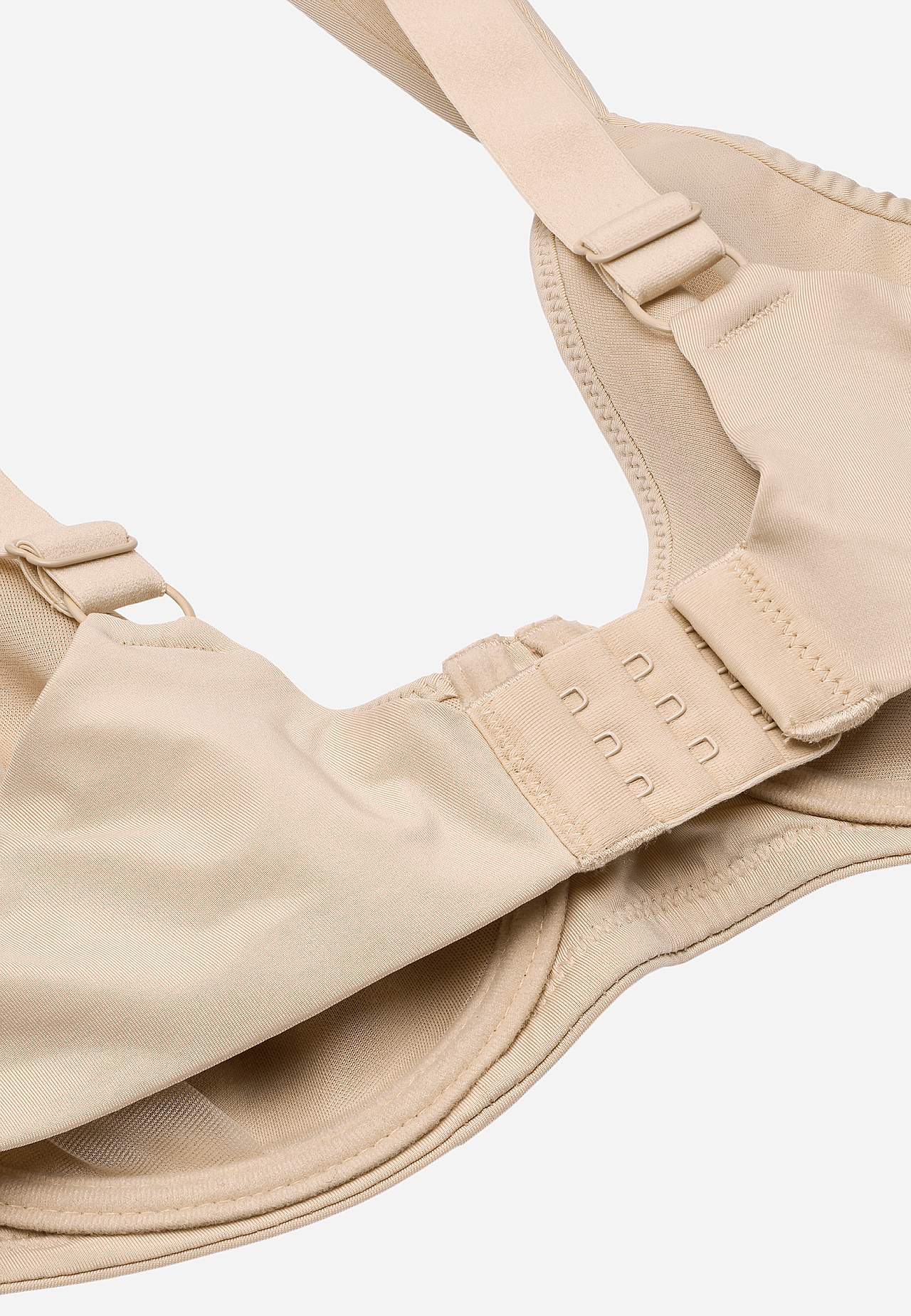 Mjuk, skön bygel-bh med formsydda, ovadderade kupor. Stabiliserande meshtyg inuti kupans ytterkant. Breda sidor som bidrar med stabilitet och bekvämlighet. Tvåradig hysk- och hakknäppning bak, treradig i större storlekar.