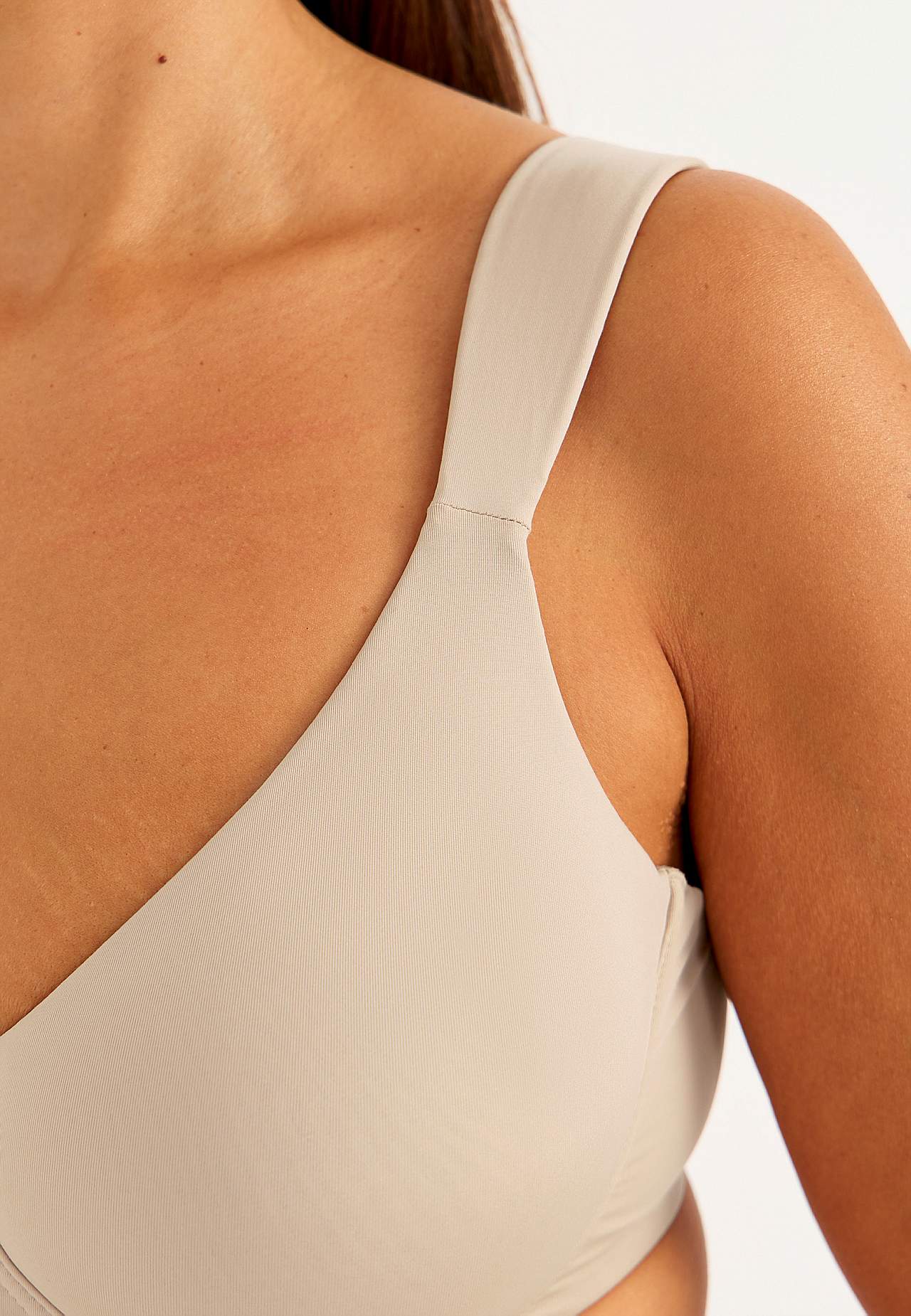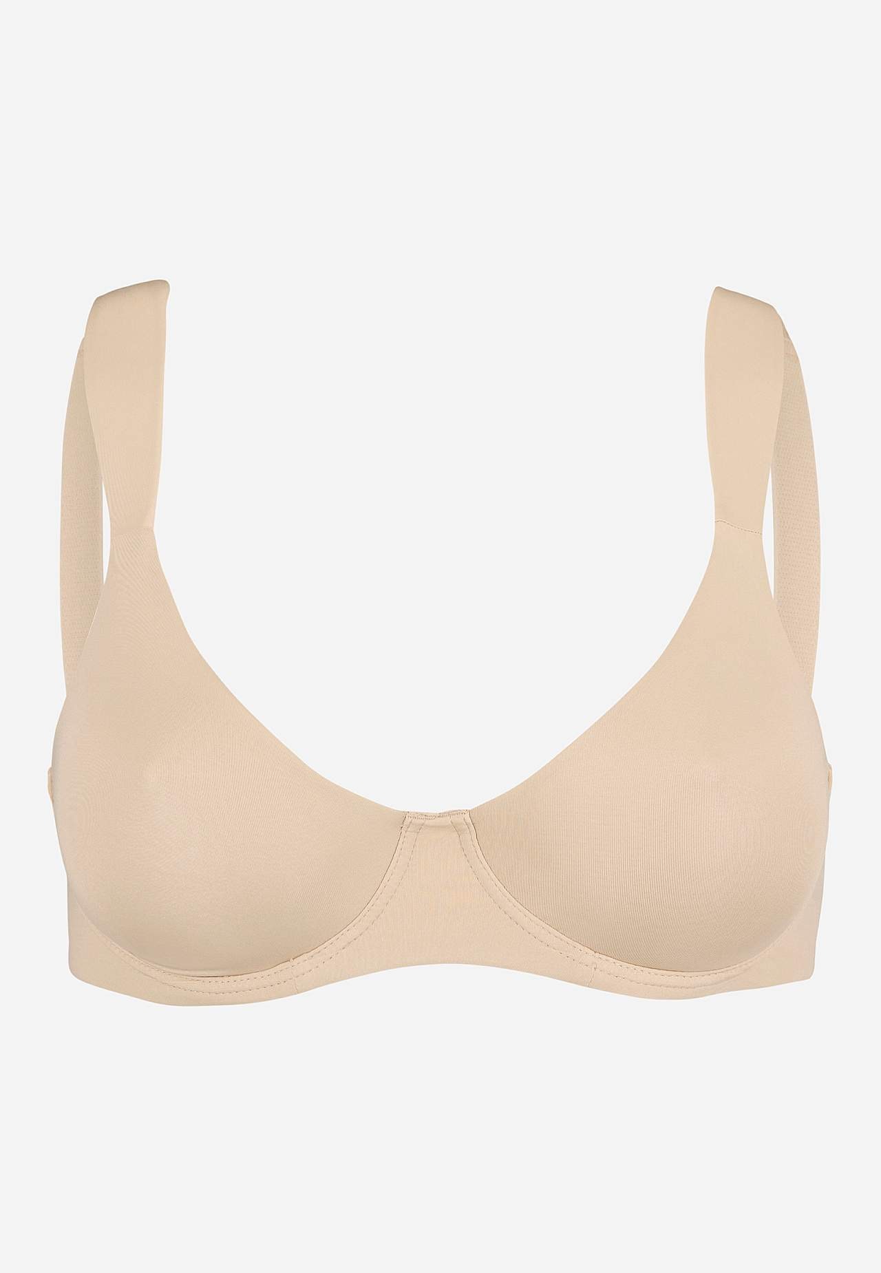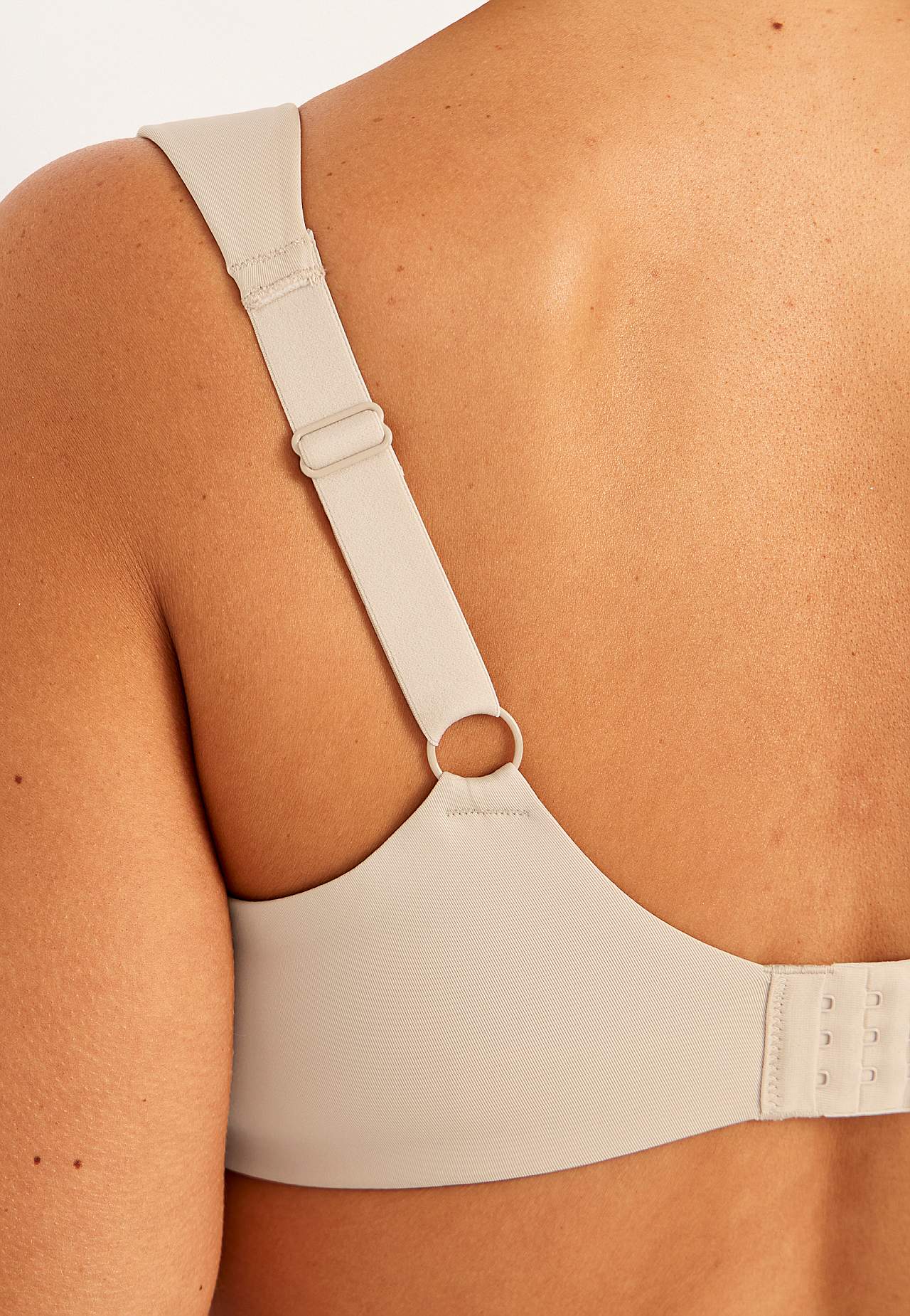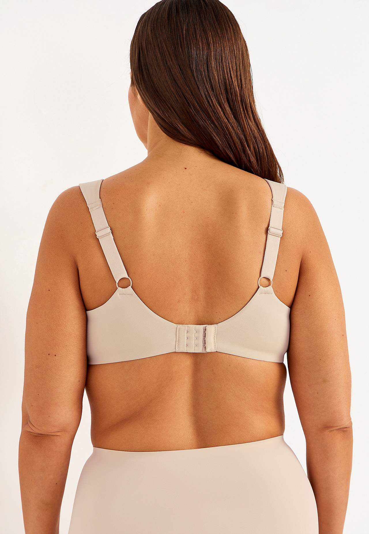 Mjuk, skön bygel-bh med formsydda, ovadderade kupor. Stabiliserande meshtyg inuti kupans ytterkant. Breda sidor som bidrar med stabilitet och bekvämlighet. Tvåradig hysk- och hakknäppning bak, treradig i större storlekar.