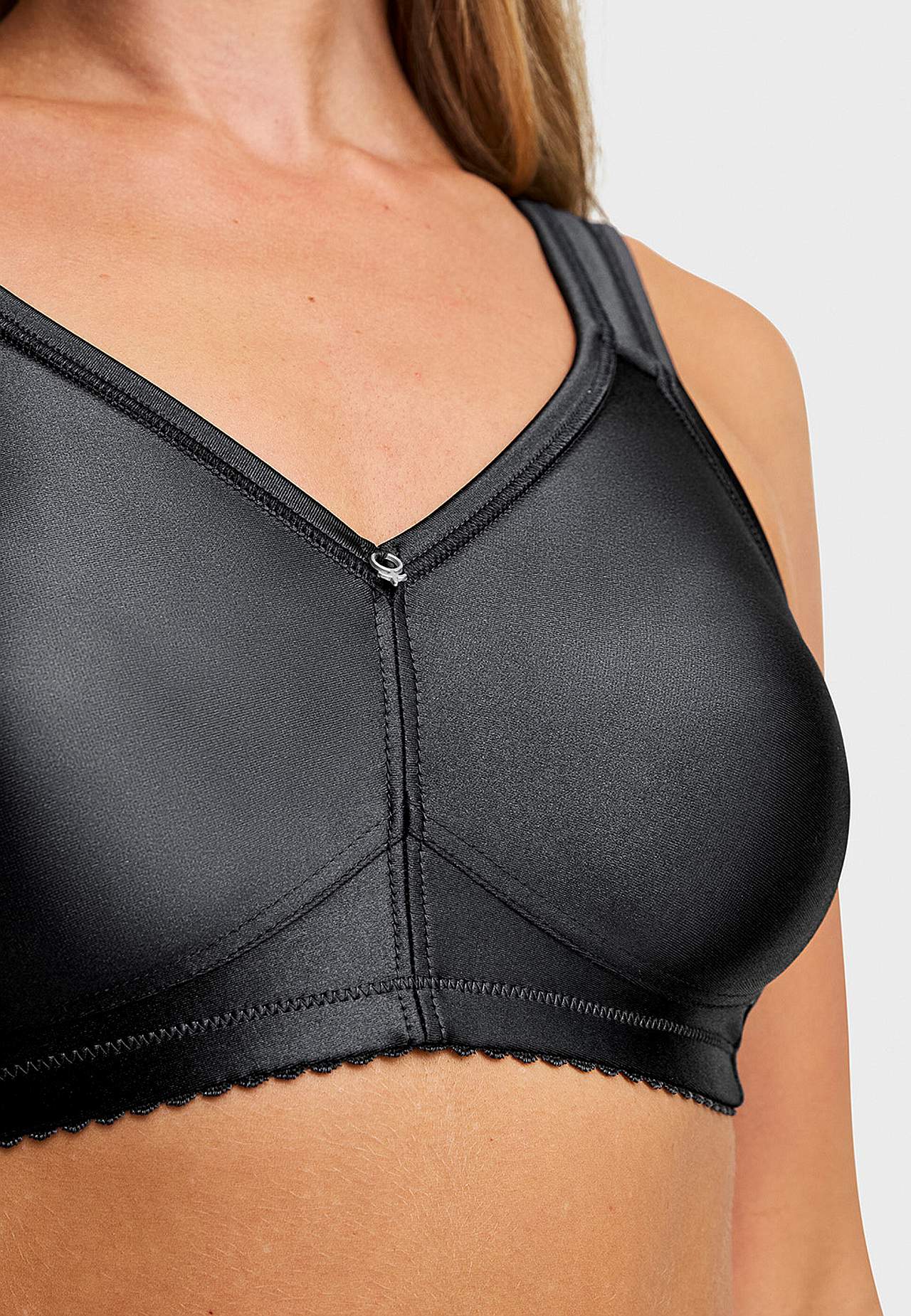 Elegant, mjuk, bygellös bh. Blank slät yta och formpressade kupor ger en naturlig siluett som låter kläderna falla fint över bysten. Breda, vadderade, reglerbara axelband för att ge maximal komfort och avlasta axlarna. Mjuka kanter vid armhålan ger stöd utan att skava och bred resår med mjuk insida gör att bh:n sitter bekvä... Läs mer