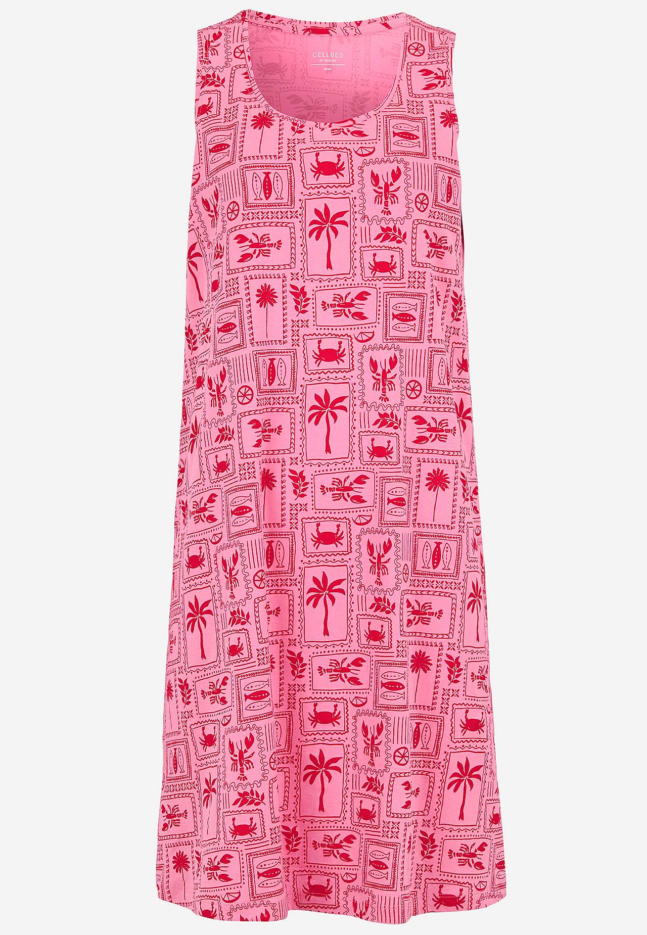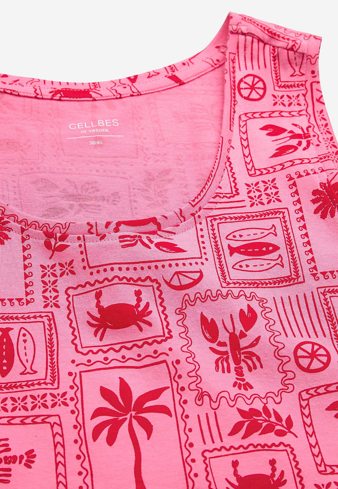 Kort, mönstrat nattlinne i mjuk ekologisk bomull. Ledig passform. Rundhalsad. Ärmlös modell. Rak nederkant med slits i sidorna. Längden följer storleken ca 94-101 cm från axeln bak.