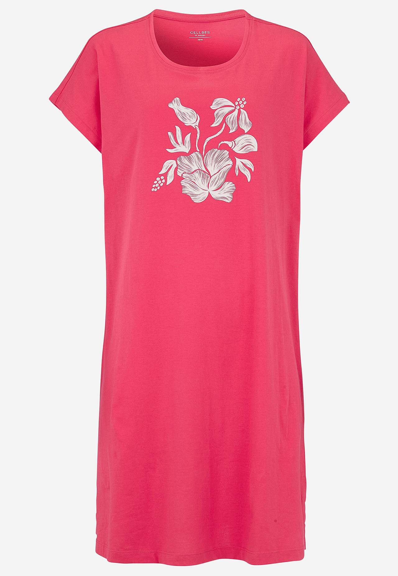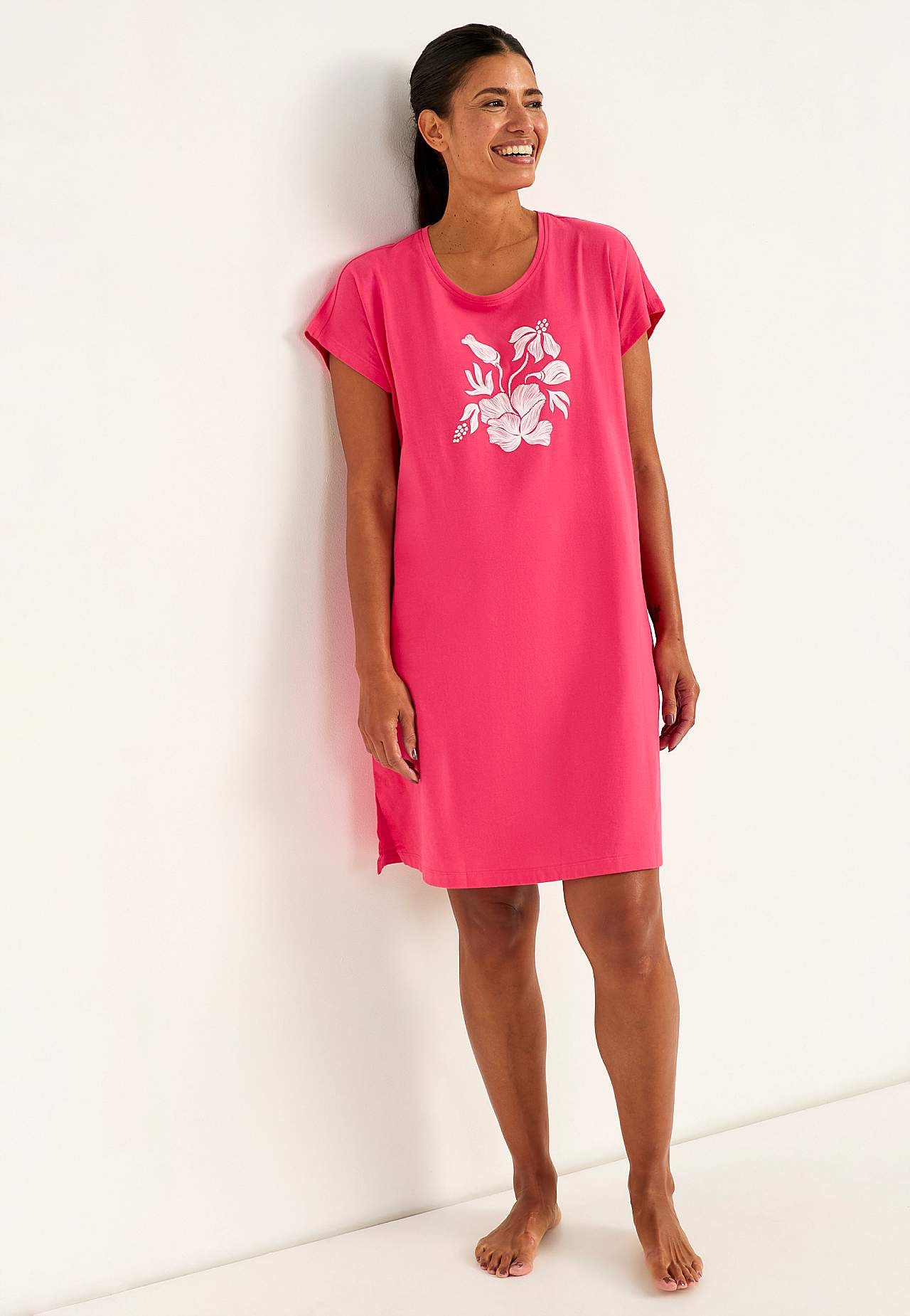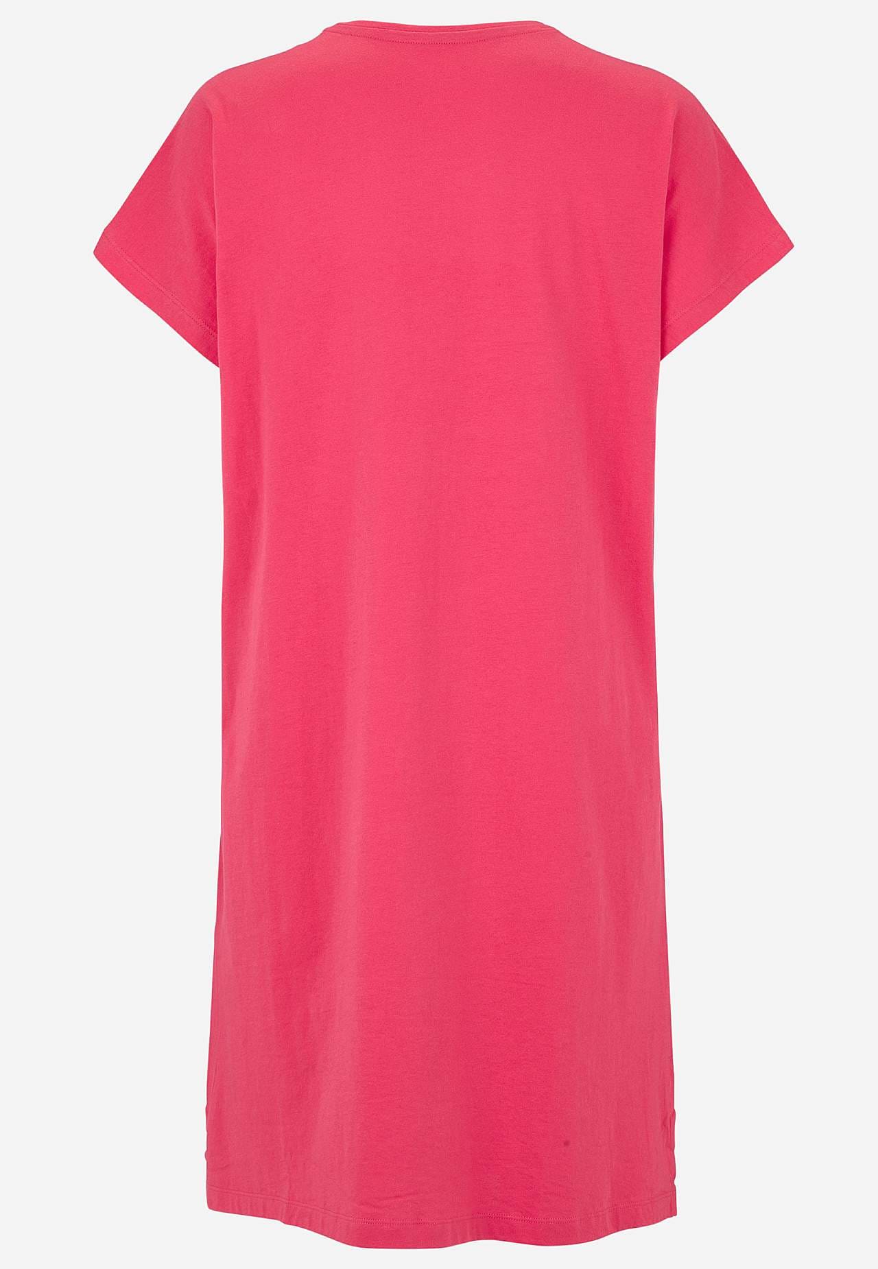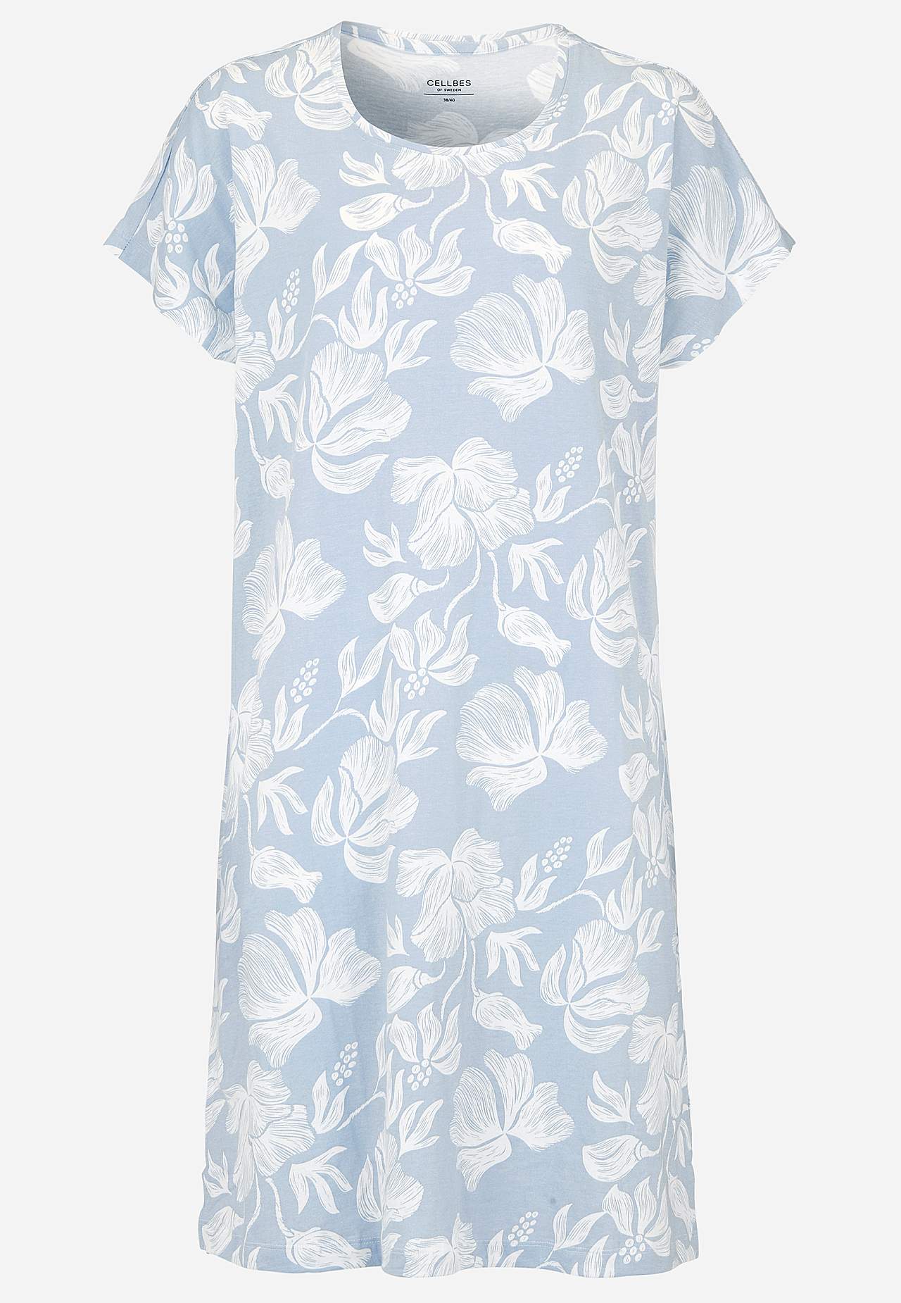 Kort nattlinne i mjuk ekologisk bomull. Ledig, rak passform. Rund halsringning. Korta holkärmar. Rak nederkant med slits i sidorna. Längden följer storleken ca 95-105 cm från axeln bak.